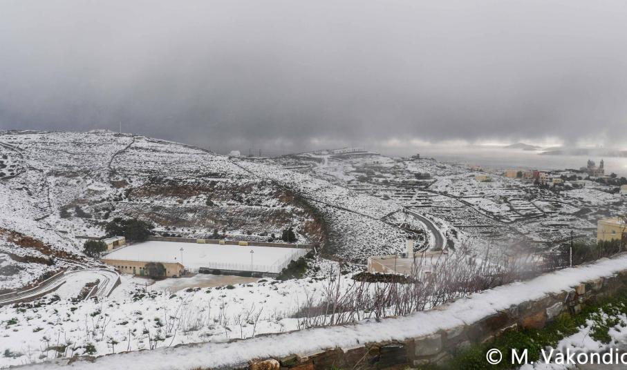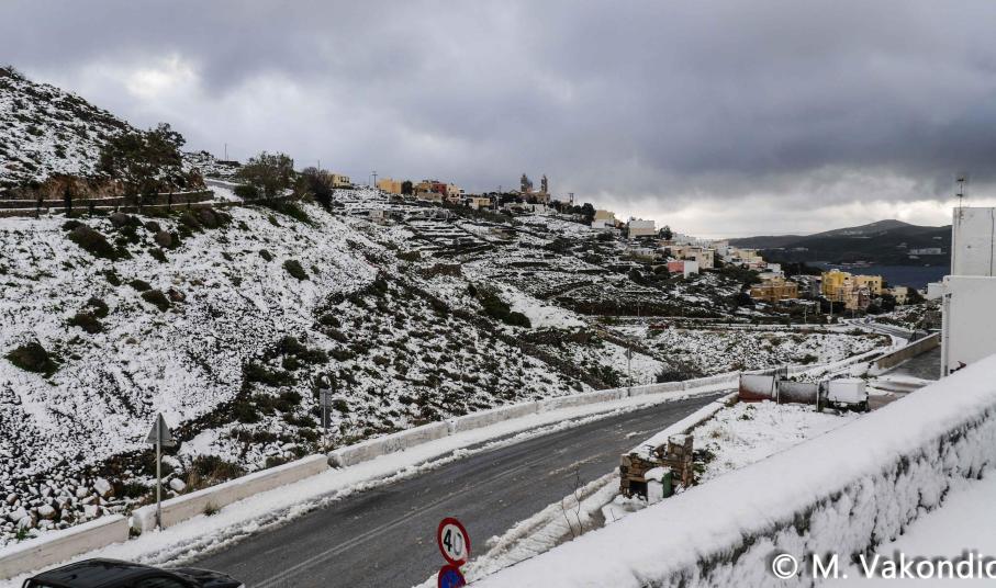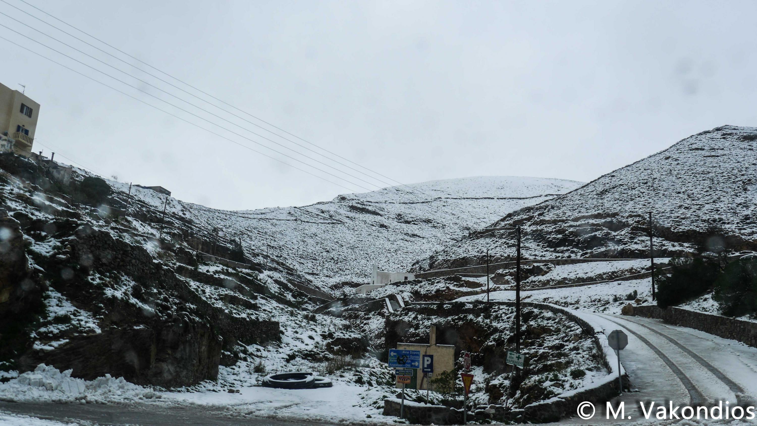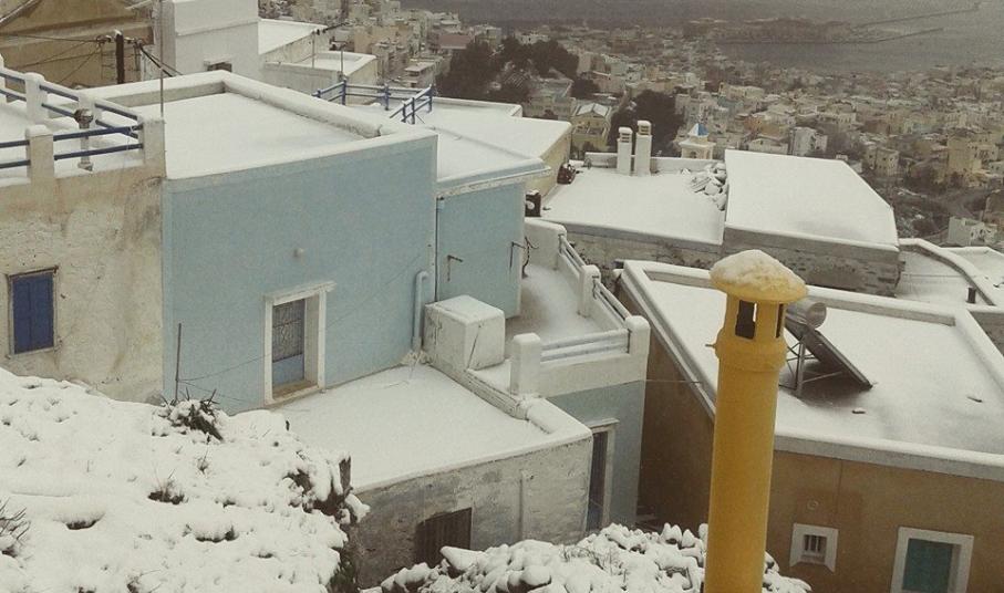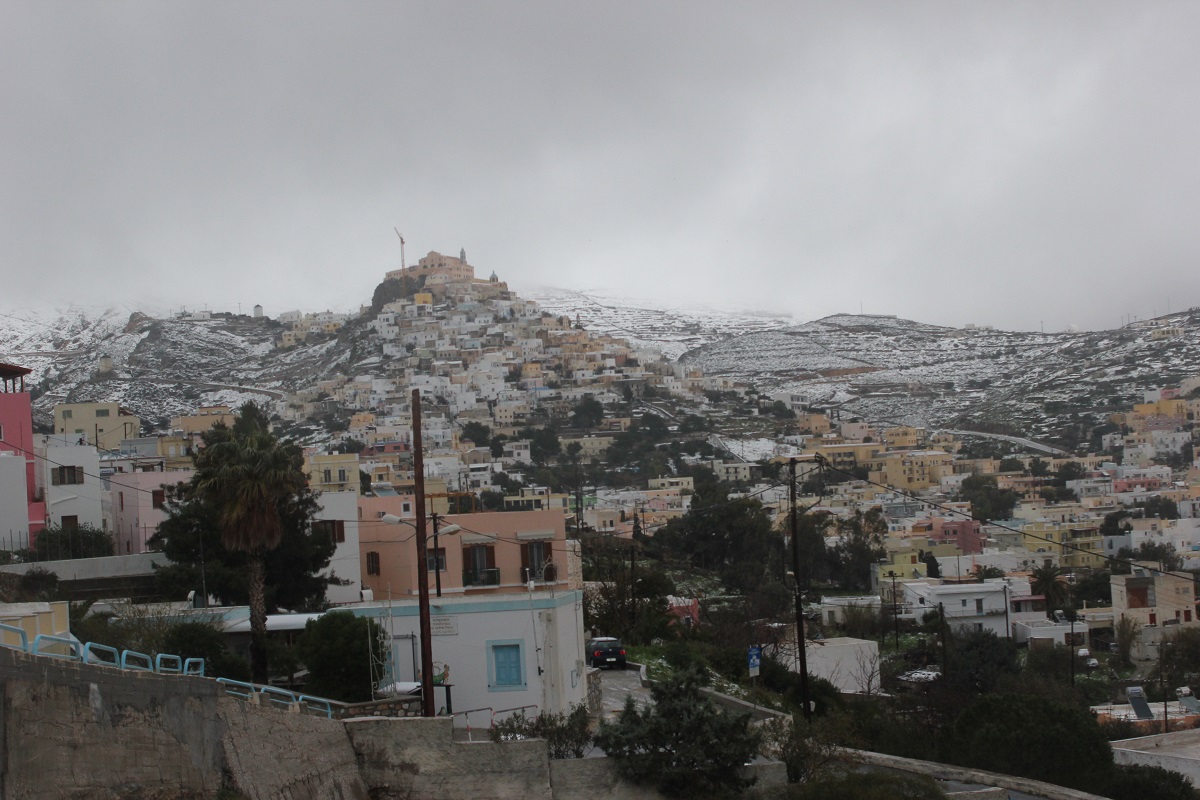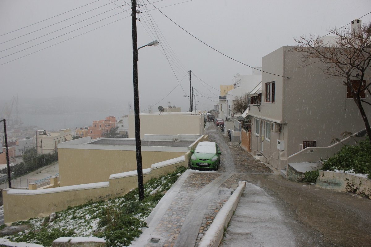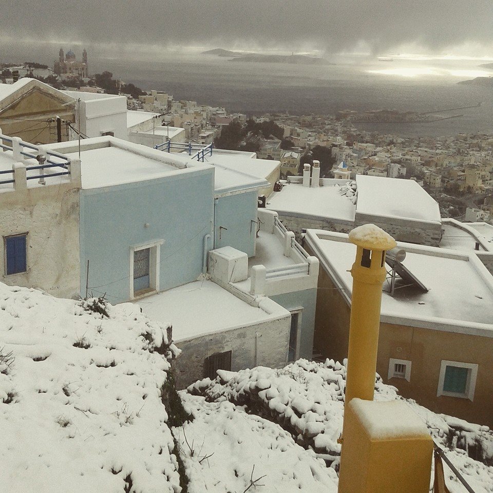 “Χιόνια στο καμπαναριό, που Χριστούγεννα σημαίνουν” τραγουδήσαμε πριν από λίγες ημέρες, χωρίς να γνωρίζουμε ότι τα νησιά μας και ειδικότερα, η Σύρος θα “ντυθούν στα λευκά” αμέσως μετά το πέρας των εορτών.