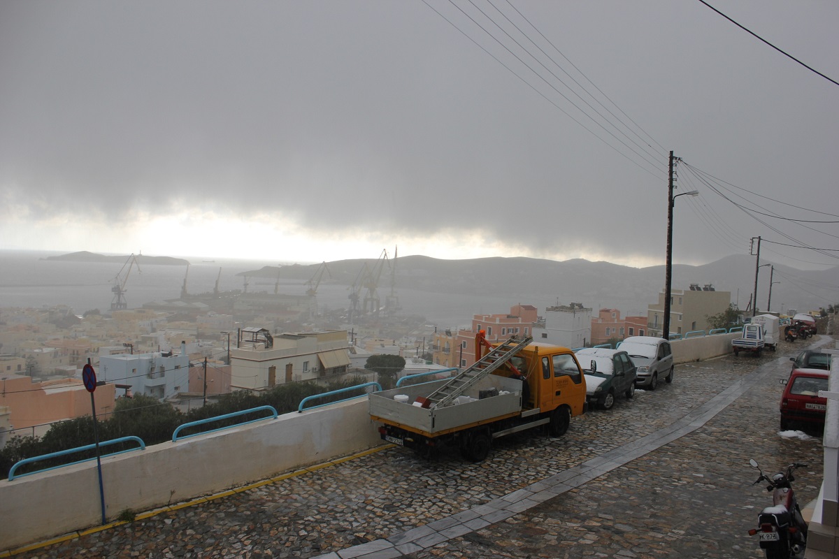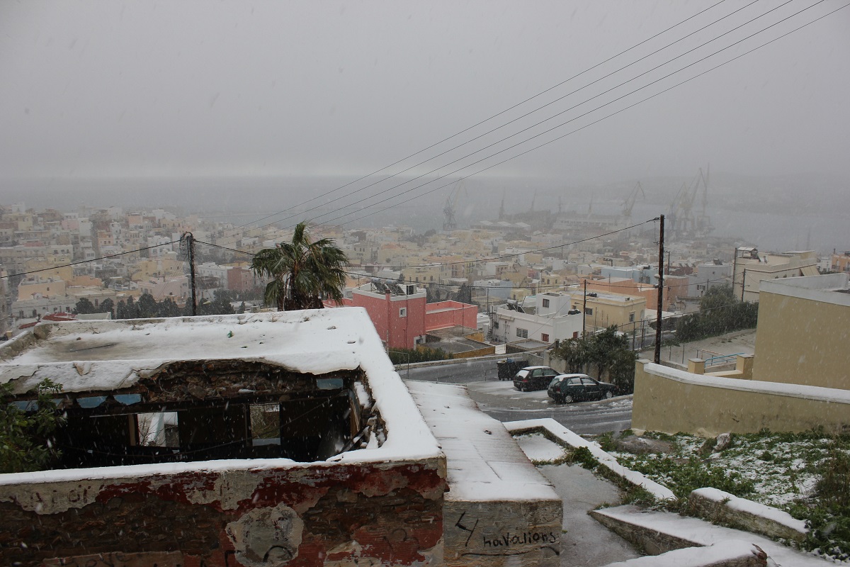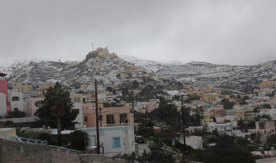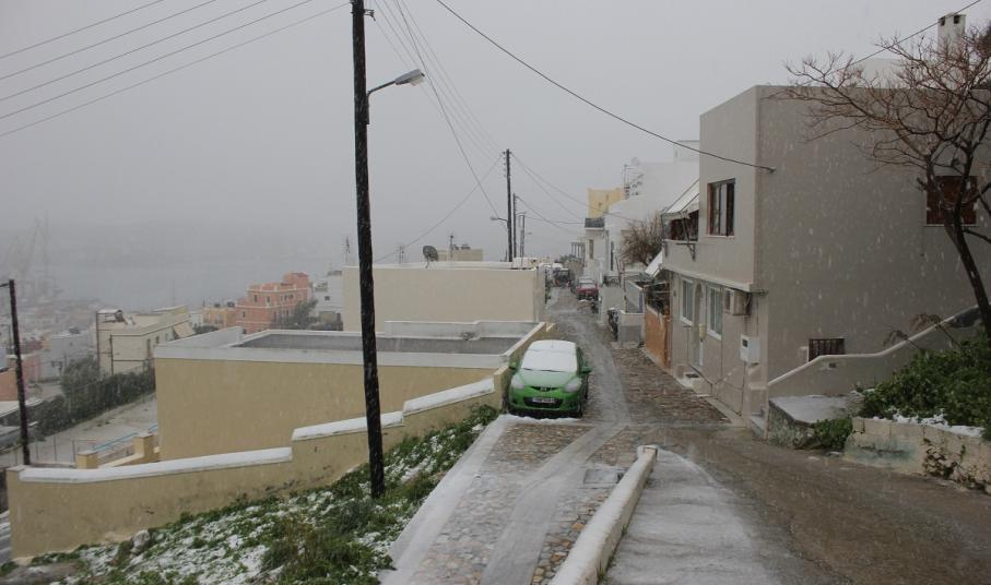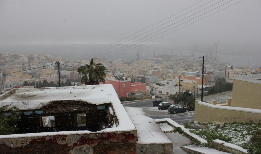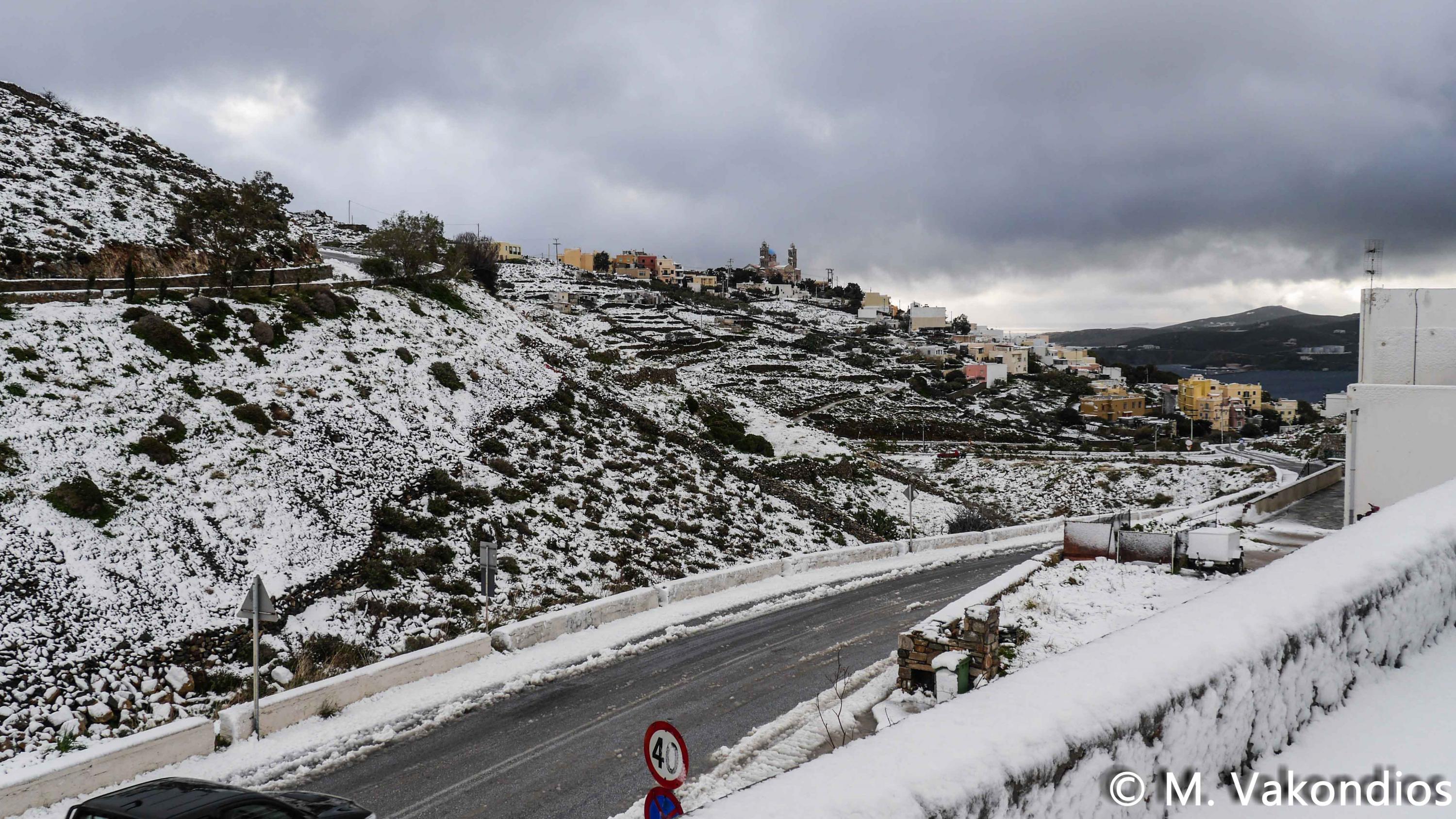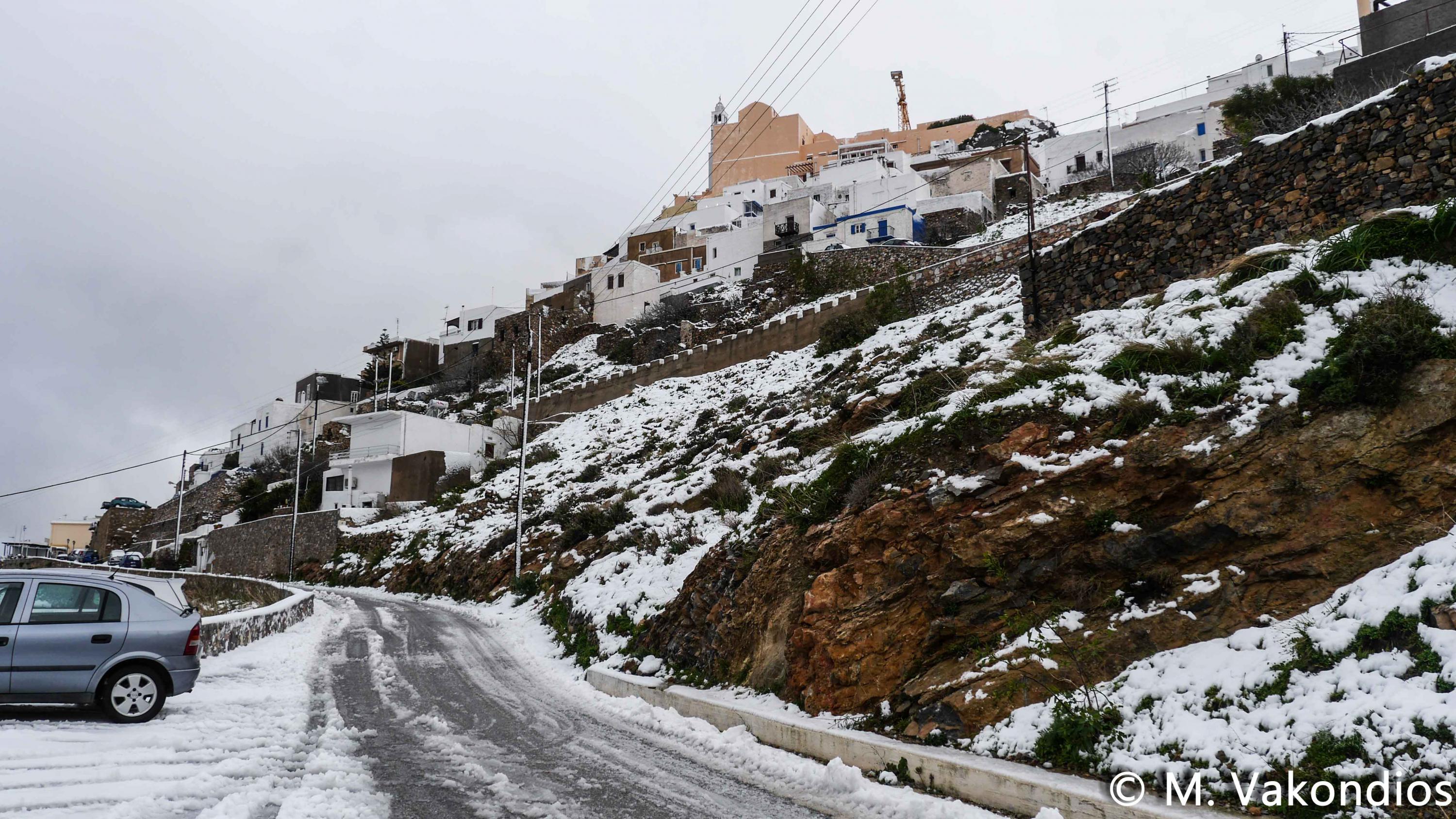 “Χιόνια στο καμπαναριό, που Χριστούγεννα σημαίνουν” τραγουδήσαμε πριν από λίγες ημέρες, χωρίς να γνωρίζουμε ότι τα νησιά μας και ειδικότερα, η Σύρος θα “ντυθούν στα λευκά” αμέσως μετά το πέρας των εορτών.