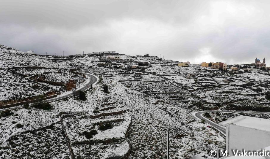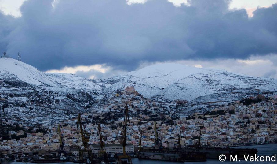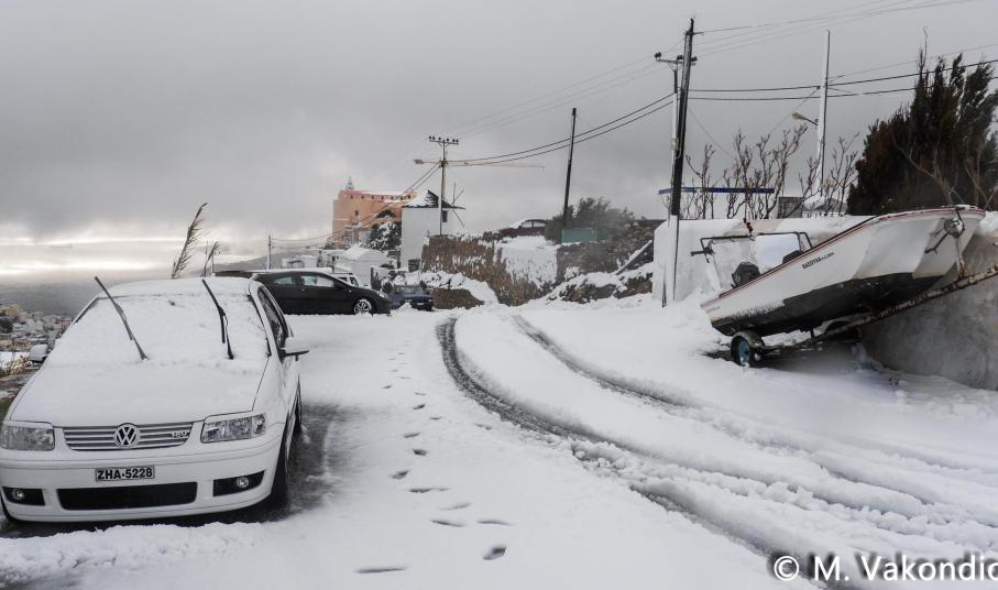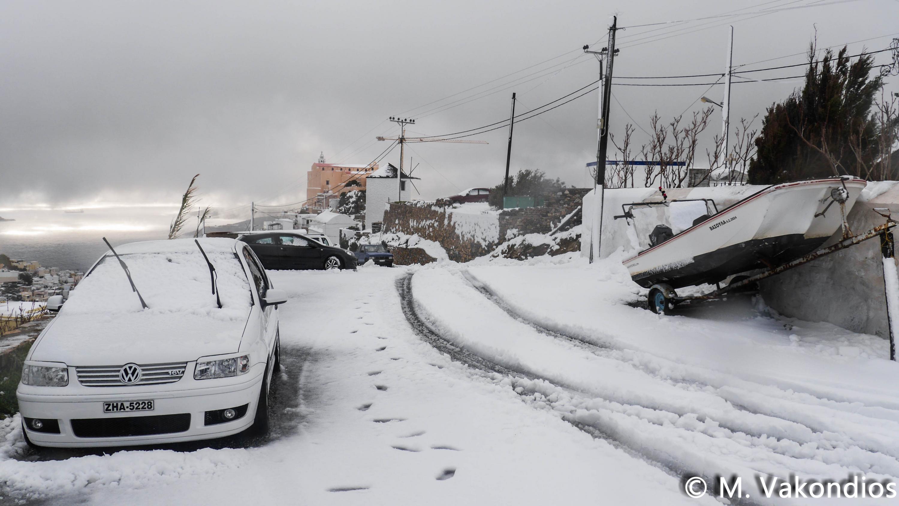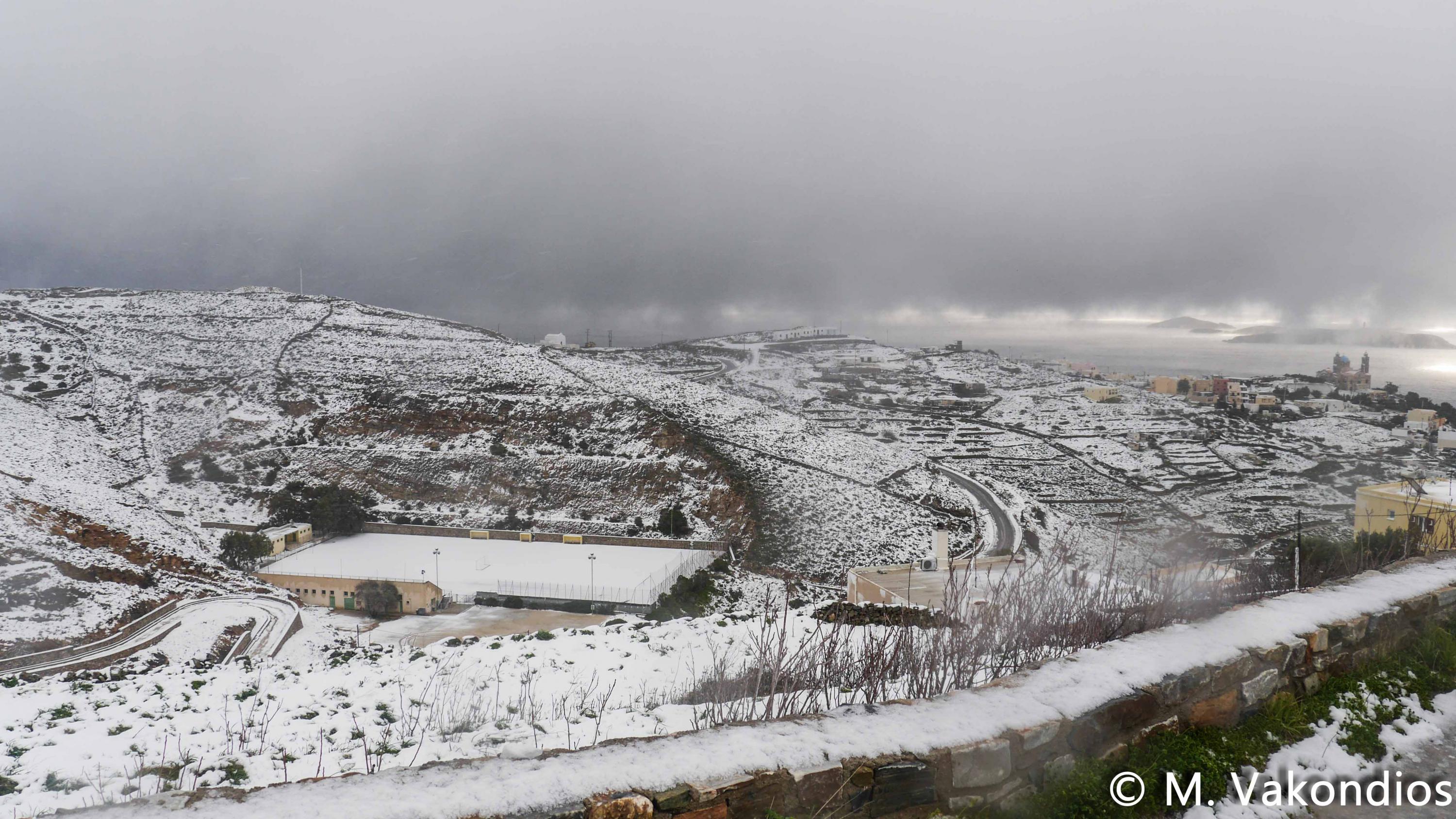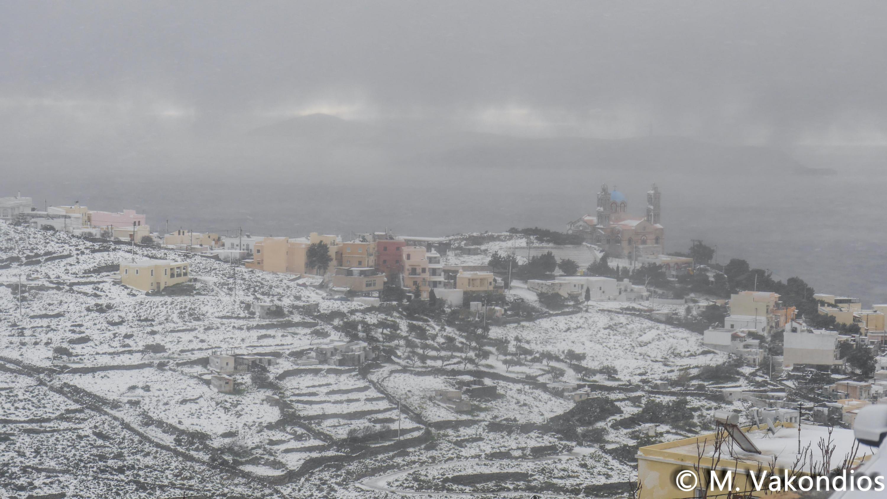 “Χιόνια στο καμπαναριό, που Χριστούγεννα σημαίνουν” τραγουδήσαμε πριν από λίγες ημέρες, χωρίς να γνωρίζουμε ότι τα νησιά μας και ειδικότερα, η Σύρος θα “ντυθούν στα λευκά” αμέσως μετά το πέρας των εορτών.