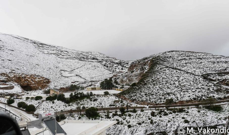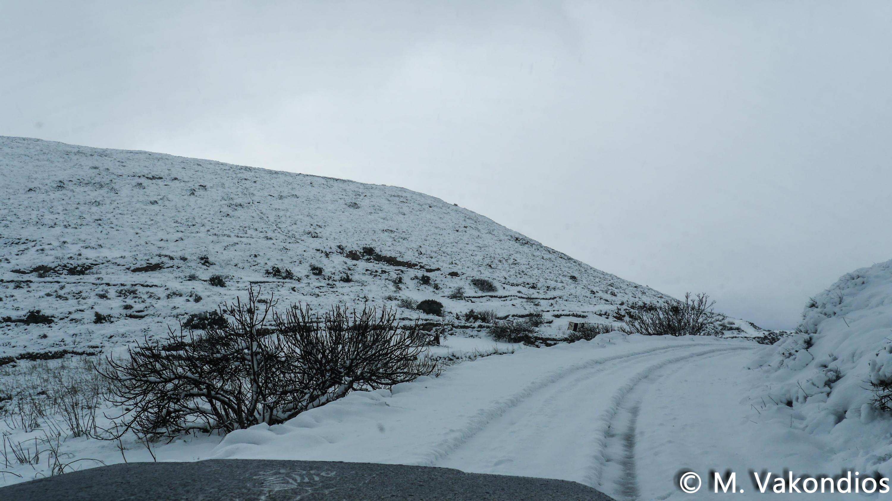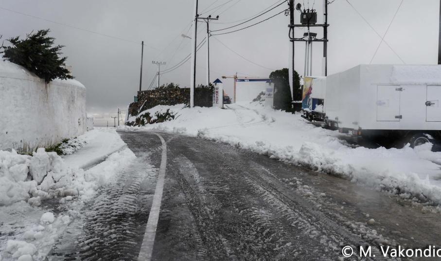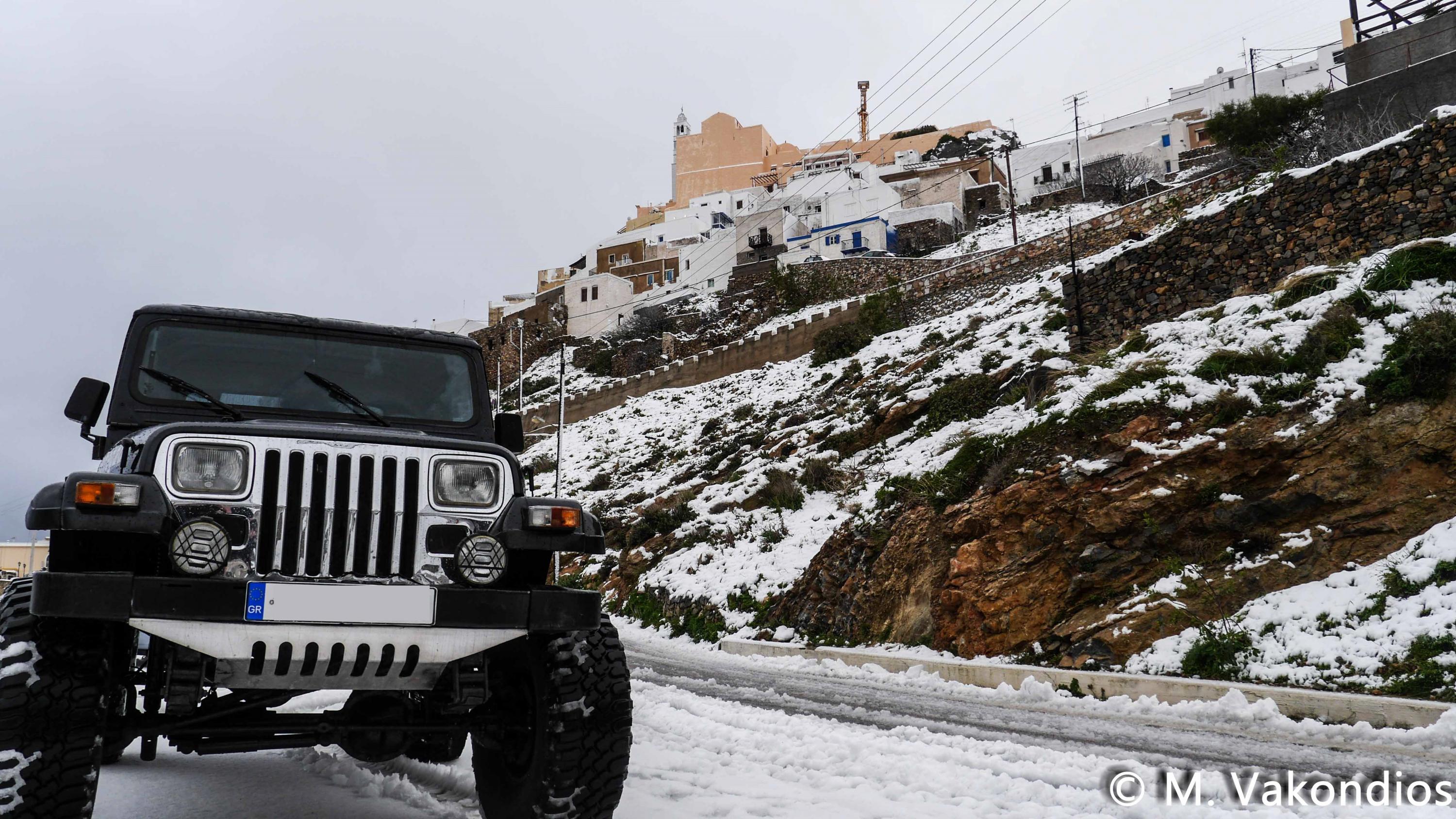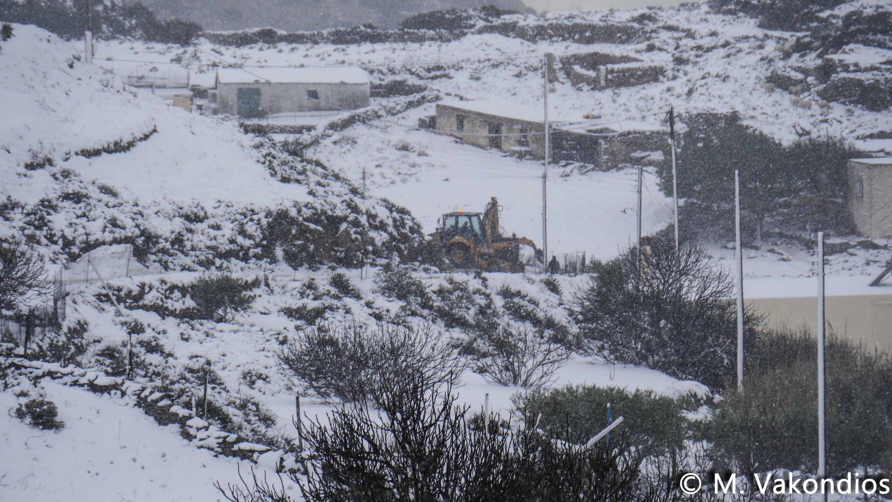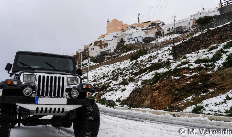Ευχαριστούμε το φίλο της εφημερίδας Μάνο Σίμο, για τη βοήθειά του, προκειμένου να βιντεοσκοπήσουμε τα χιονισμένα τοπία του νησιού μας. Οι σημερινές συνθήκες, απαιτούσαν ειδικό όχημα, για τις μετακινήσεις, όπως αυτό με το οποίο μετέφερε τους ρεπόρτερ μας ο Μανος!
