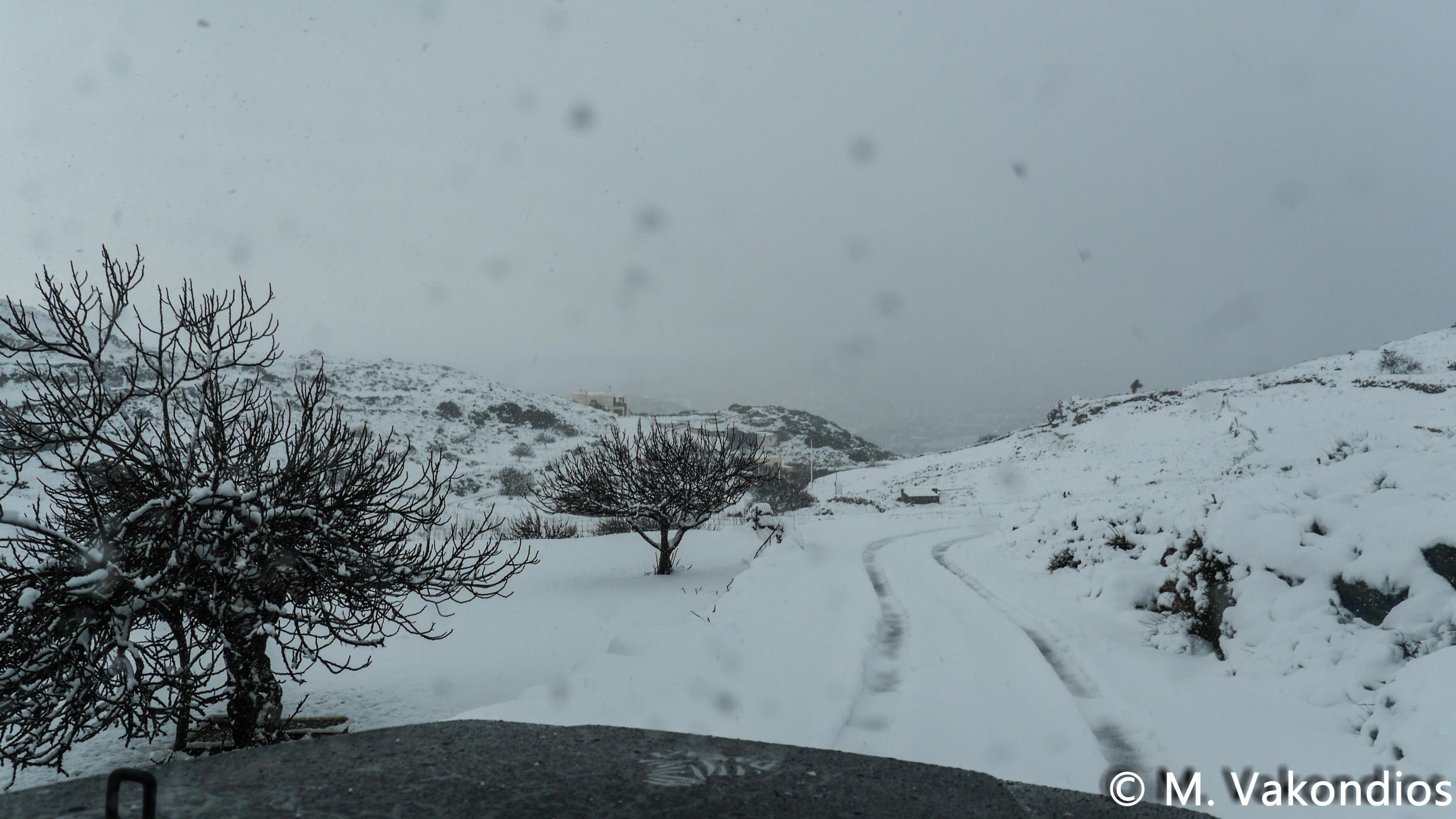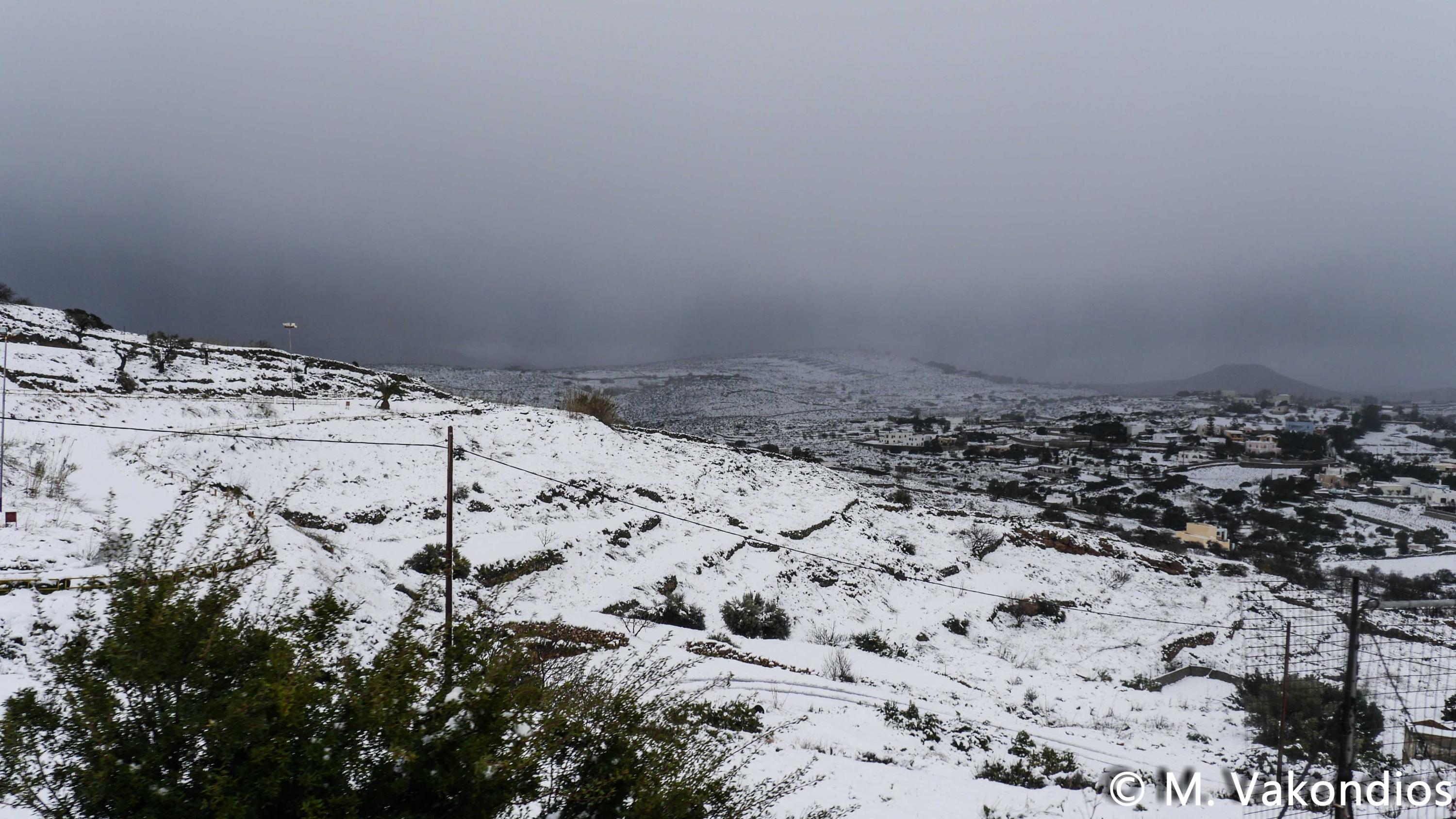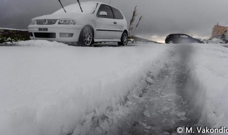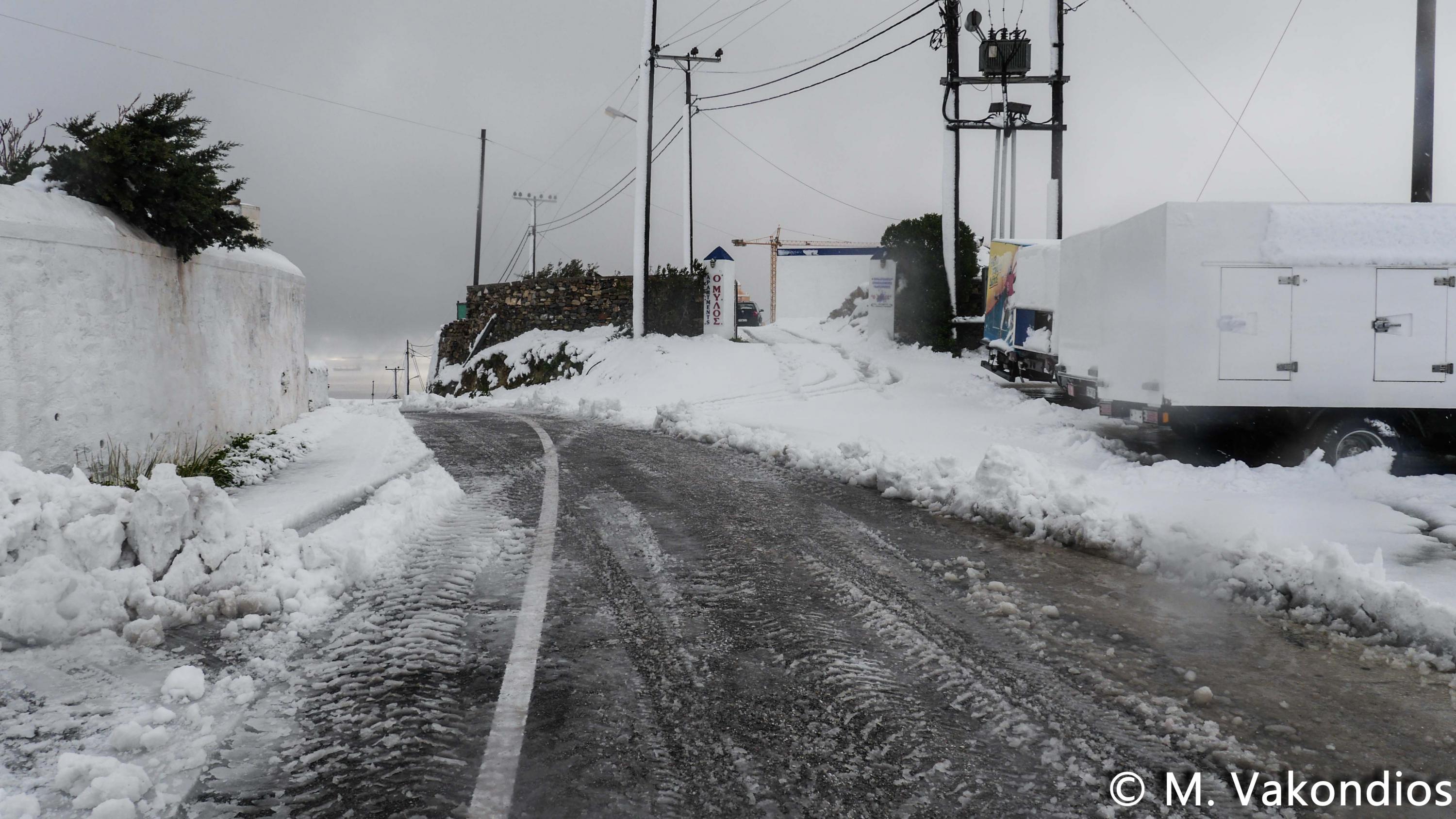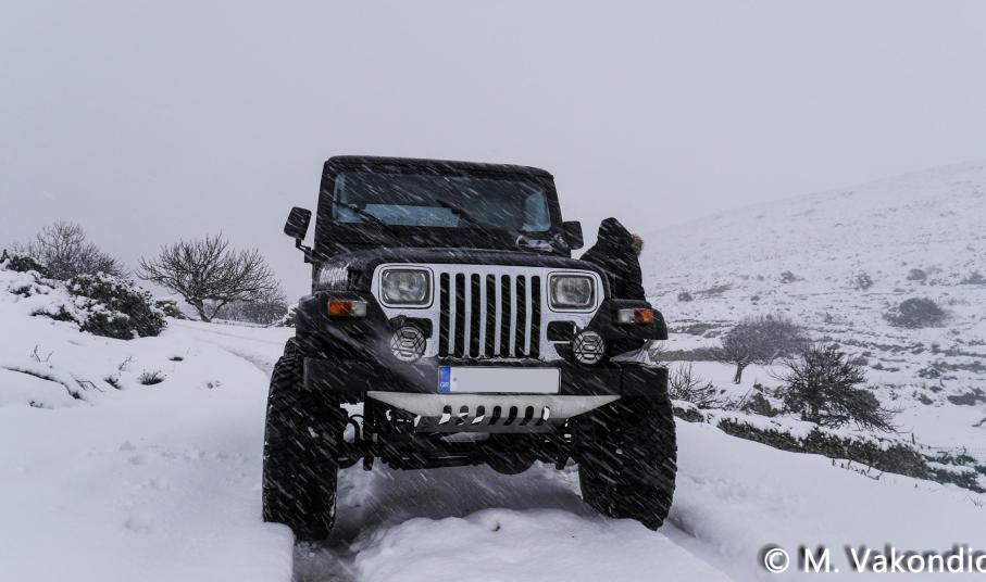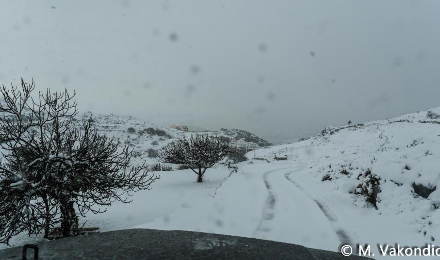 Ευχαριστούμε το φίλο της εφημερίδας Μάνο Σίμο, για τη βοήθειά του, προκειμένου να βιντεοσκοπήσουμε τα χιονισμένα τοπία του νησιού μας. Οι σημερινές συνθήκες, απαιτούσαν ειδικό όχημα, για τις μετακινήσεις, όπως αυτό με το οποίο μετέφερε τους ρεπόρτερ μας ο Μανος!
