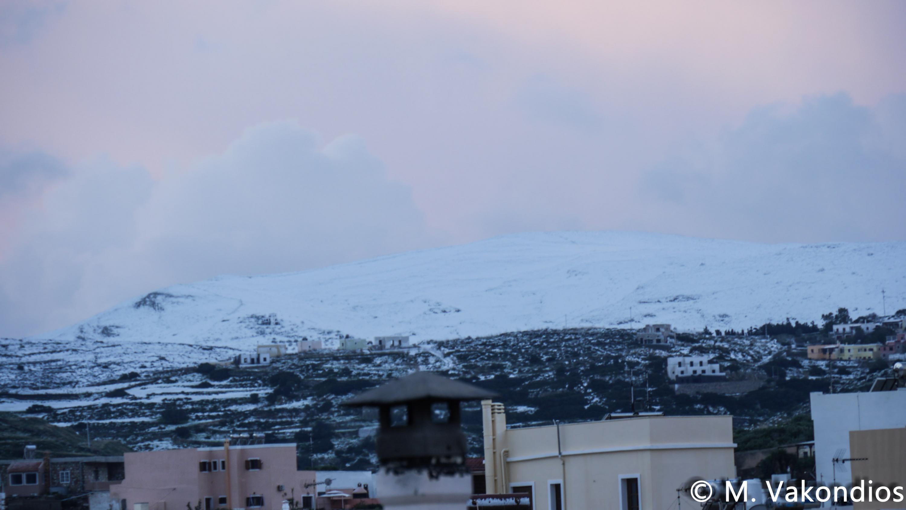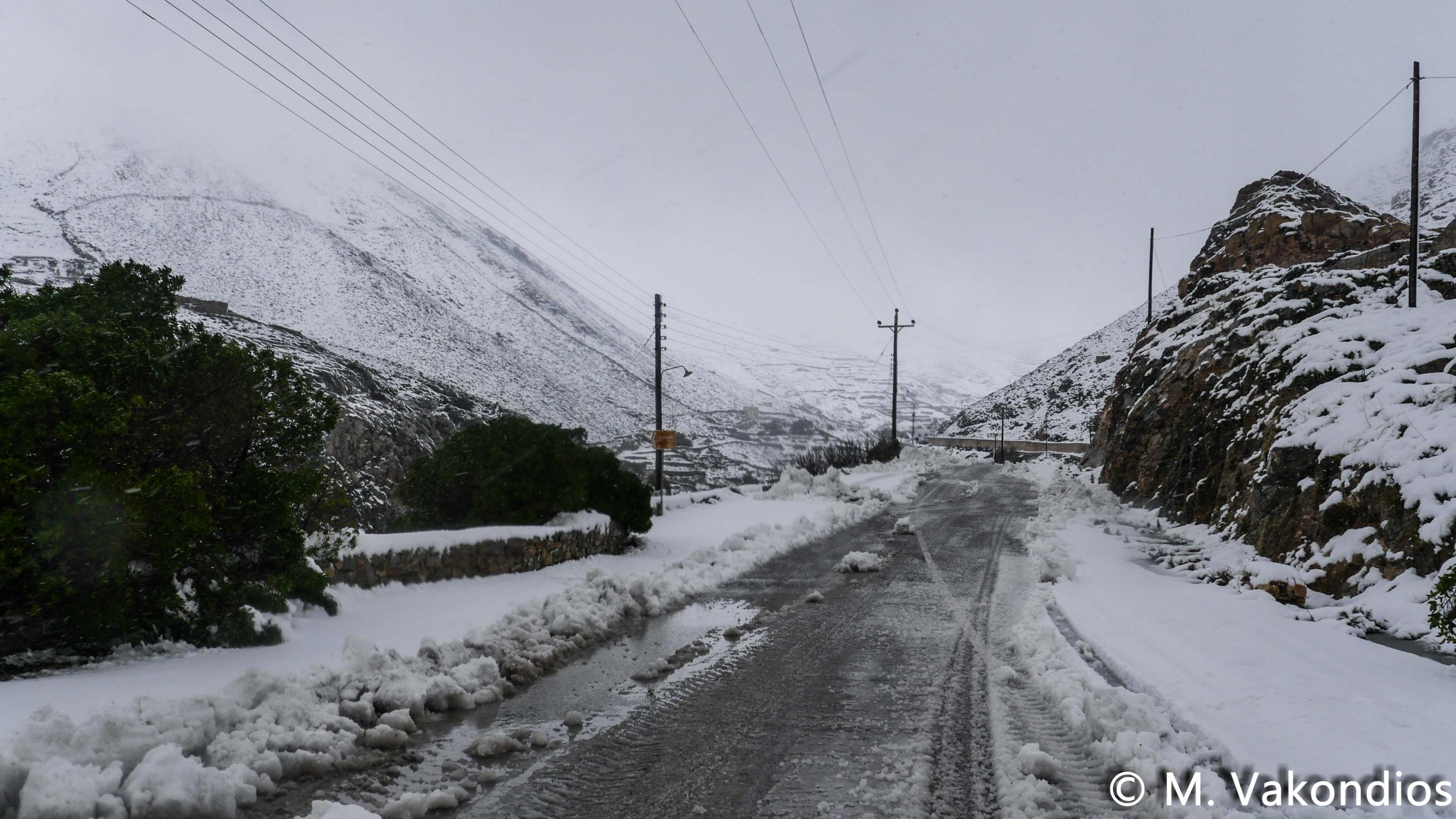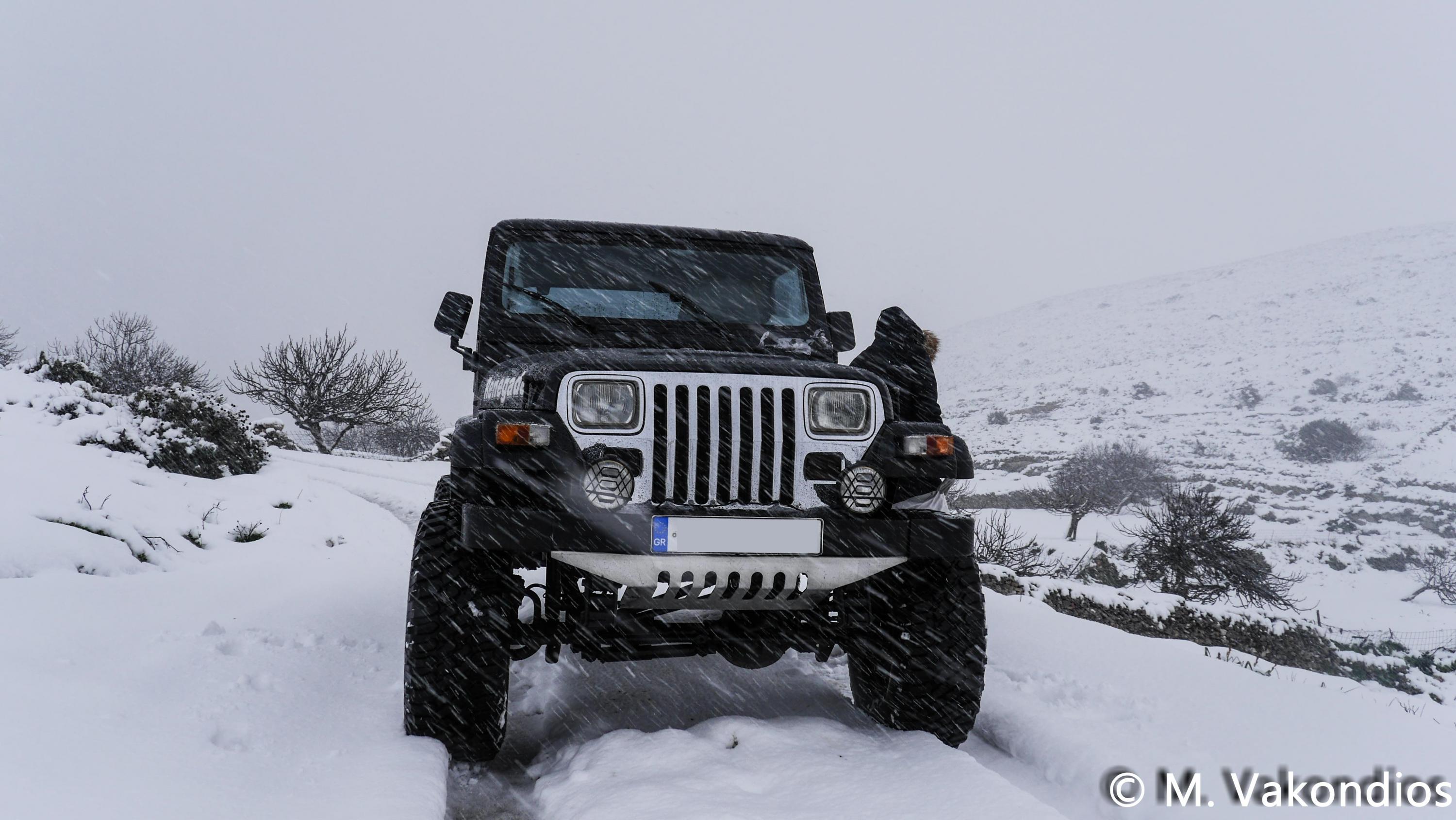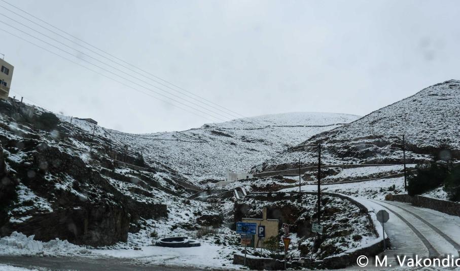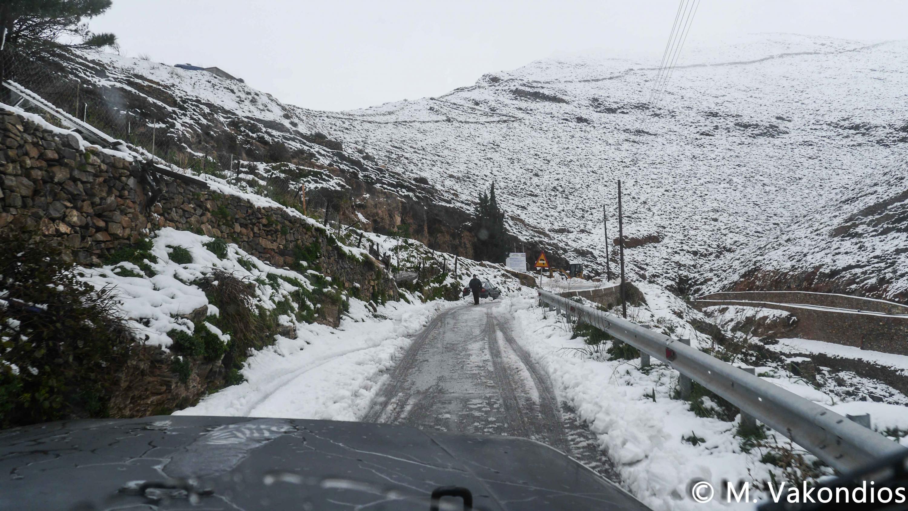 Ευχαριστούμε το φίλο της εφημερίδας Μάνο Σίμο, για τη βοήθειά του, προκειμένου να βιντεοσκοπήσουμε τα χιονισμένα τοπία του νησιού μας. Οι σημερινές συνθήκες, απαιτούσαν ειδικό όχημα, για τις μετακινήσεις, όπως αυτό με το οποίο μετέφερε τους ρεπόρτερ μας ο Μανος!