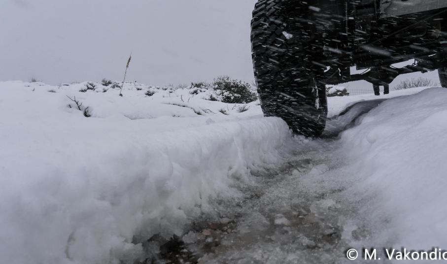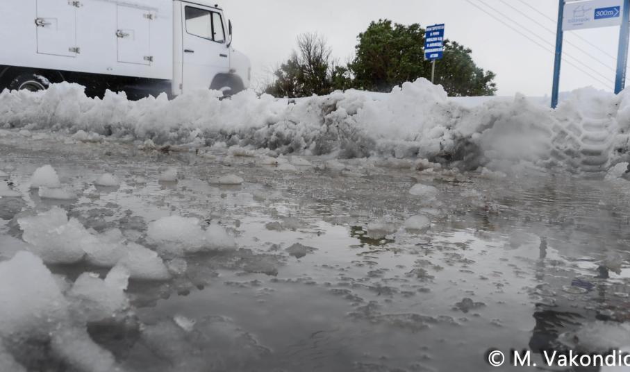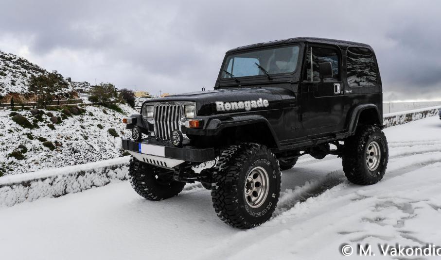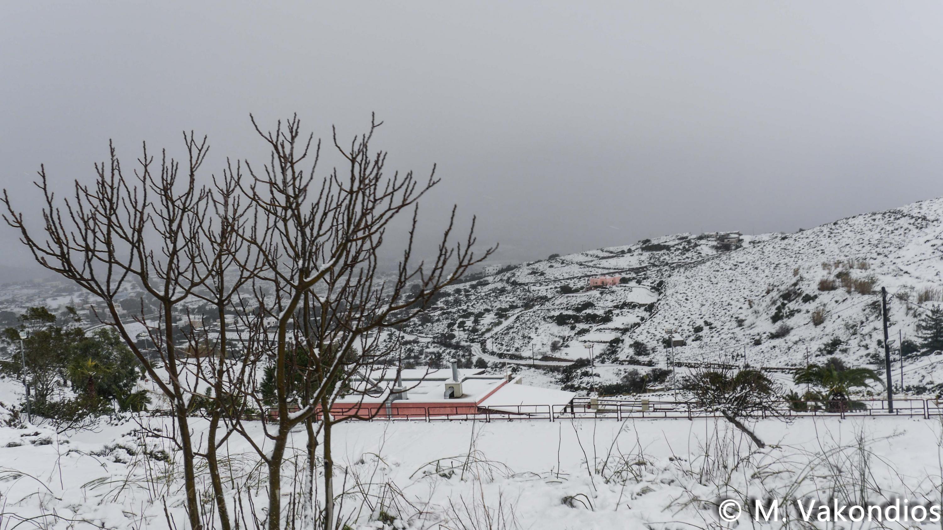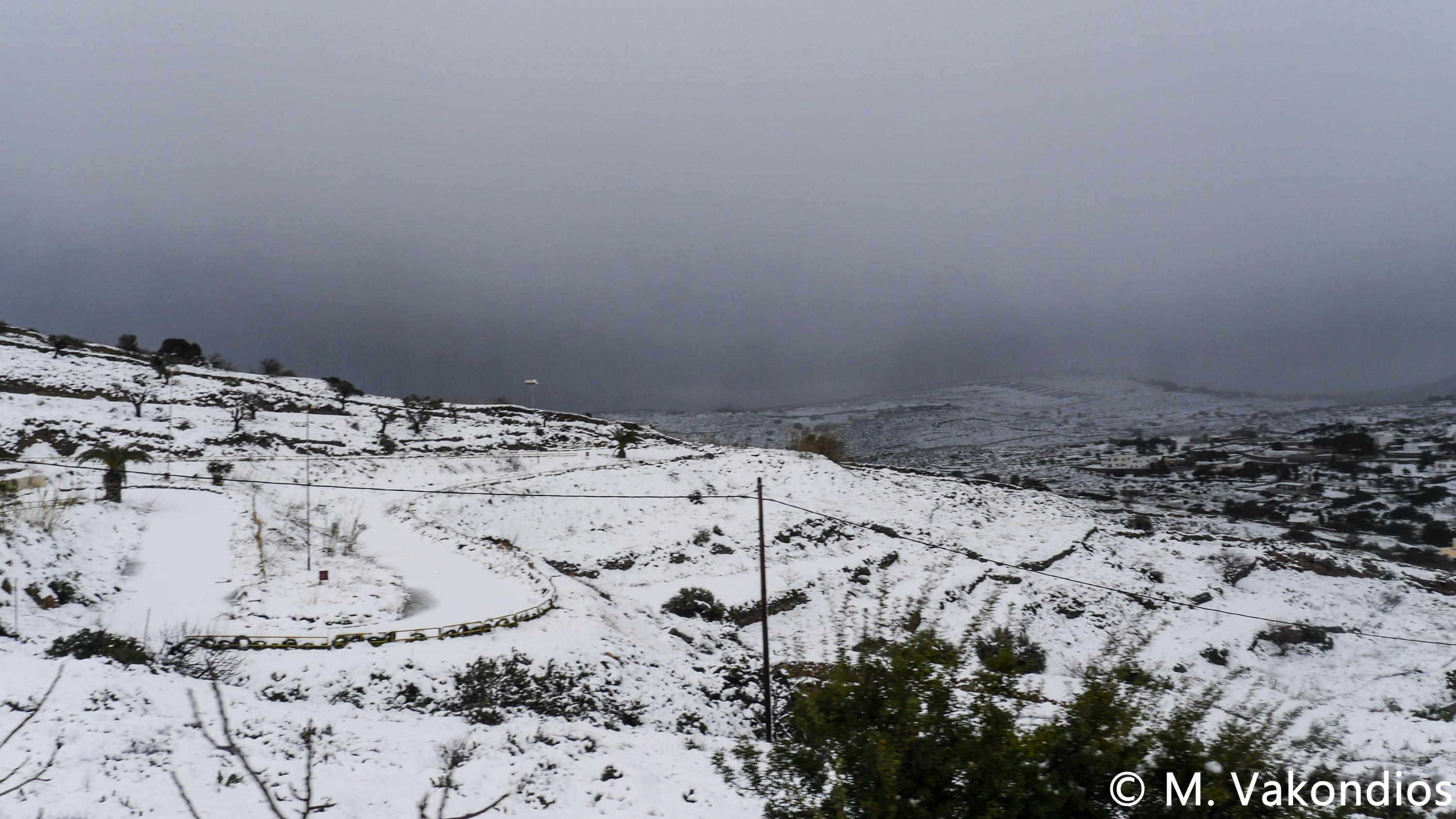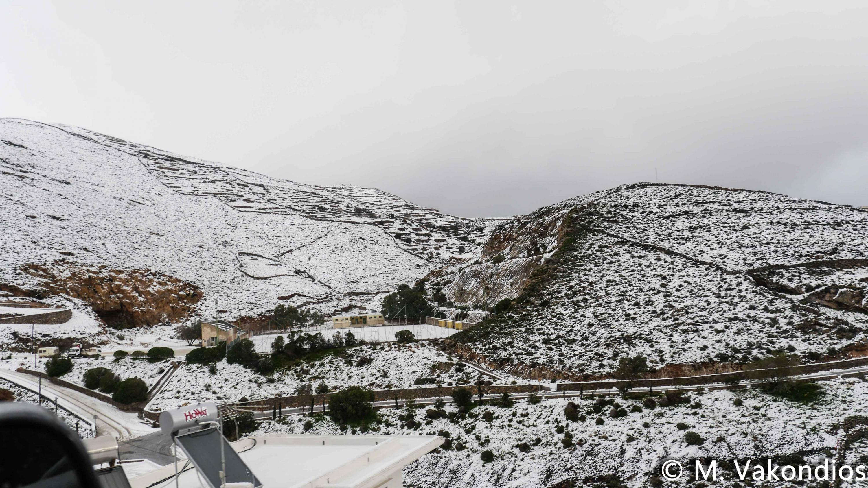 Ευχαριστούμε το φίλο της εφημερίδας Μάνο Σίμο, για τη βοήθειά του, προκειμένου να βιντεοσκοπήσουμε τα χιονισμένα τοπία του νησιού μας. Οι σημερινές συνθήκες, απαιτούσαν ειδικό όχημα, για τις μετακινήσεις, όπως αυτό με το οποίο μετέφερε τους ρεπόρτερ μας ο Μανος!