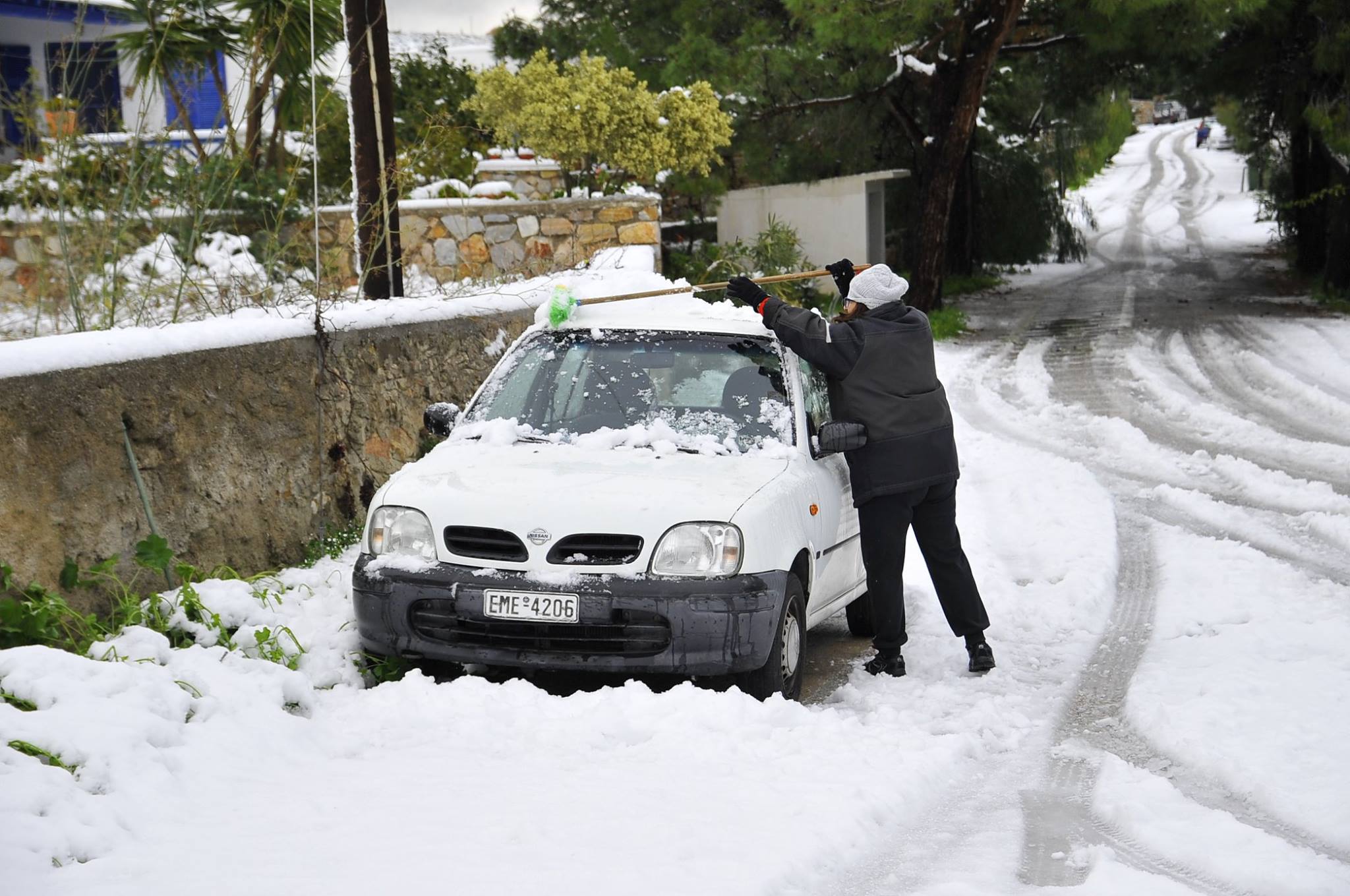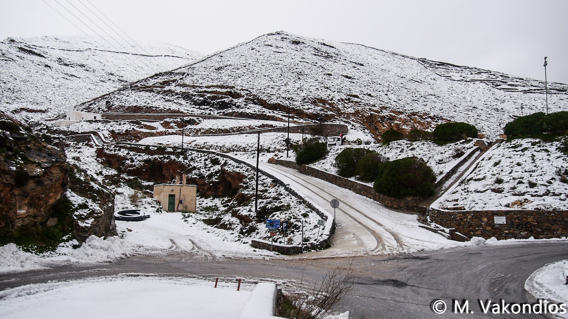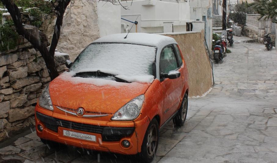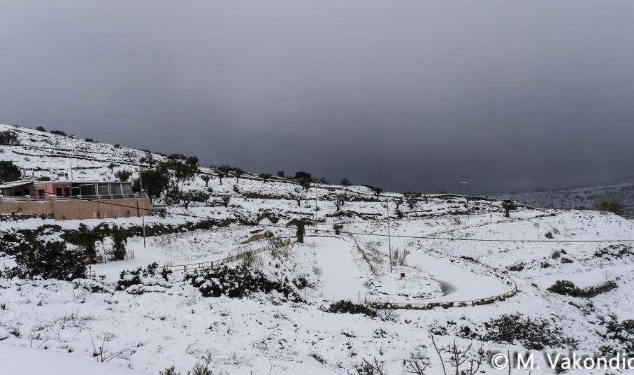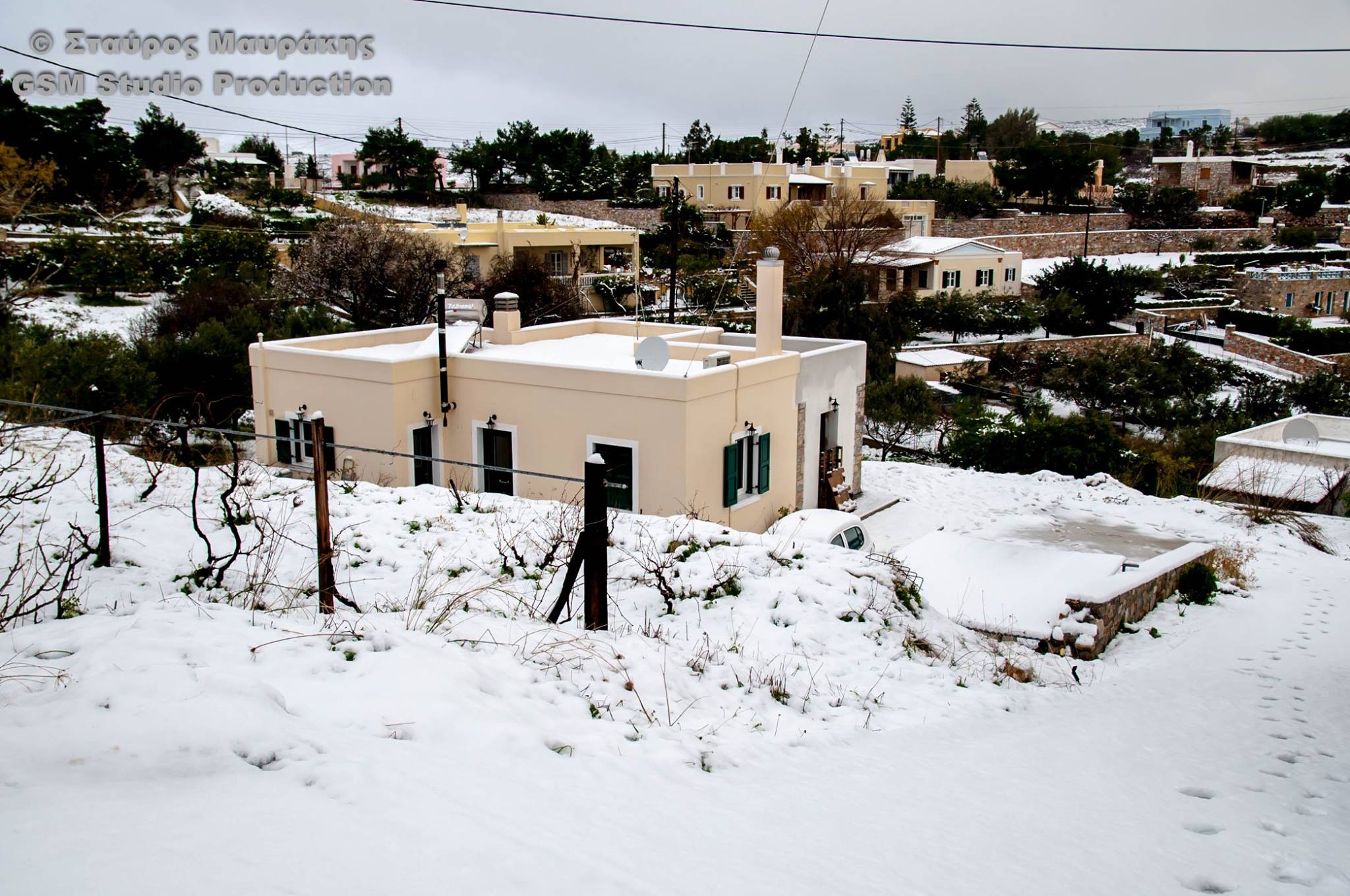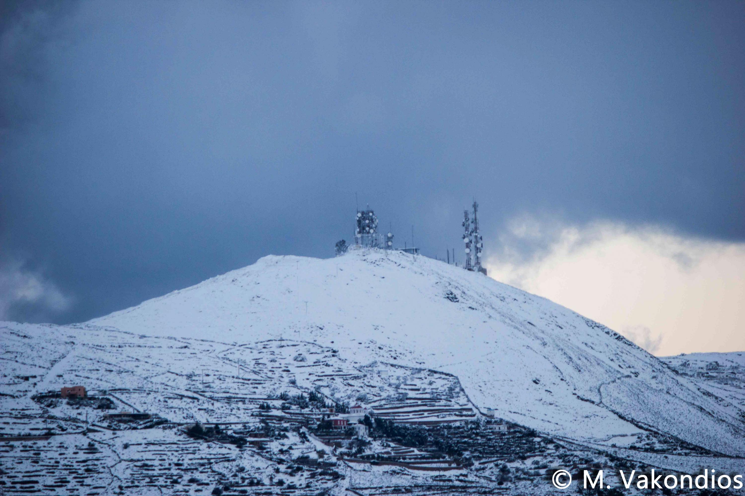 Ευχαριστούμε το φίλο της εφημερίδας Μάνο Σίμο, για τη βοήθειά του, προκειμένου να βιντεοσκοπήσουμε τα χιονισμένα τοπία του νησιού μας. Οι σημερινές συνθήκες, απαιτούσαν ειδικό όχημα, για τις μετακινήσεις, όπως αυτό με το οποίο μετέφερε τους ρεπόρτερ μας ο Μανος!
