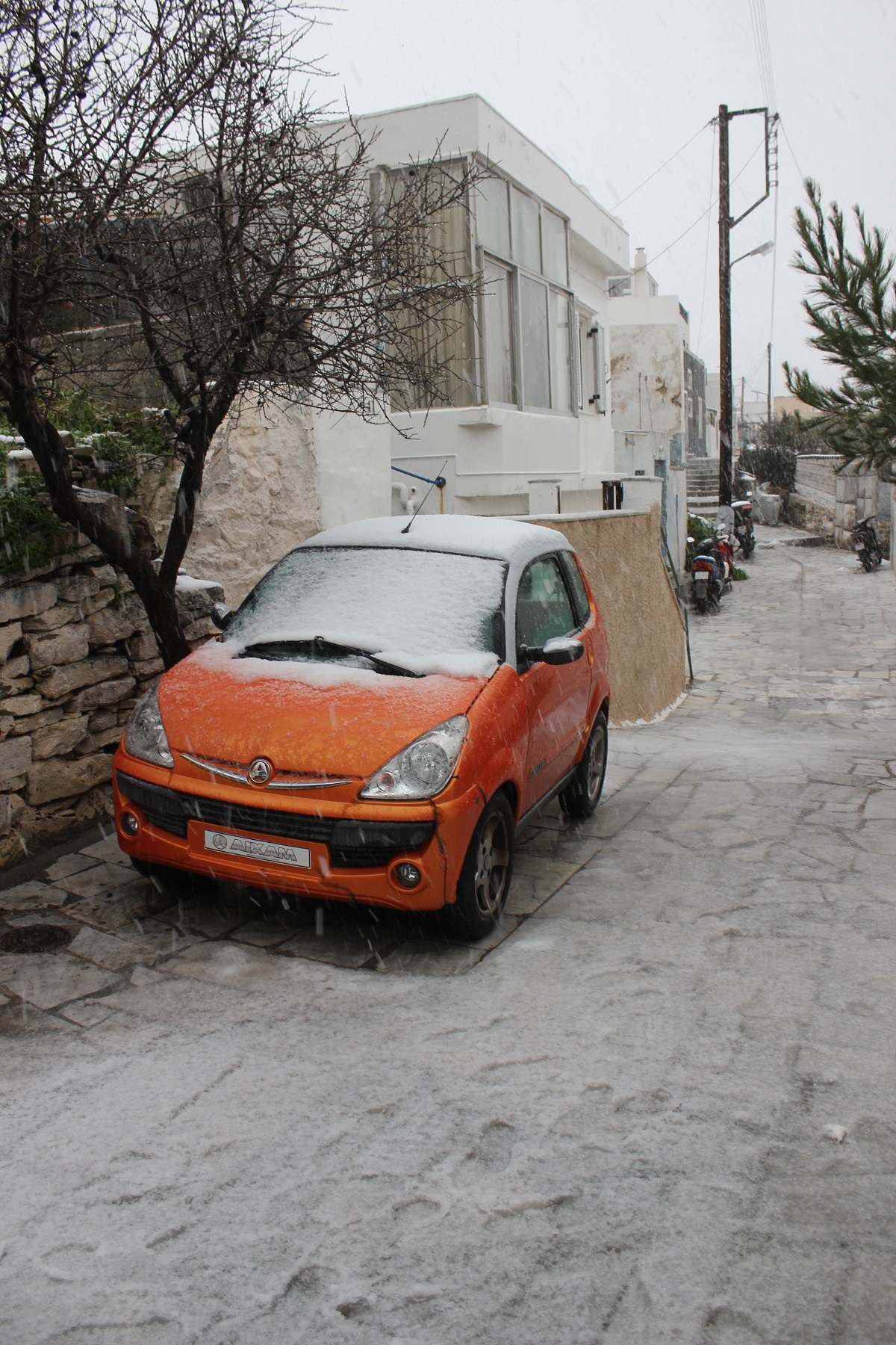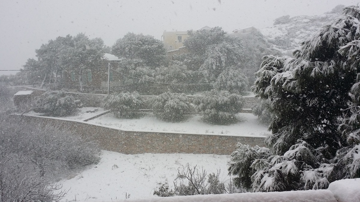 Μετά την έντονη χιονόπτωση της χθεσινής νύχτας, η οποία συνεχίζεται και σήμερα, ενισχύοντας τη διάθεση για χουχούλιασμα στο σπίτι, με ζεστά ρούχα και ροφήματα, τόσο οι γειτονιές της Ερμούπολης, όσο και οι πιο βόρειες περιοχές του νησιού έχουν αλλάξει χρώμα και ξαναζωντανεύουν μνήμες από το 2008.