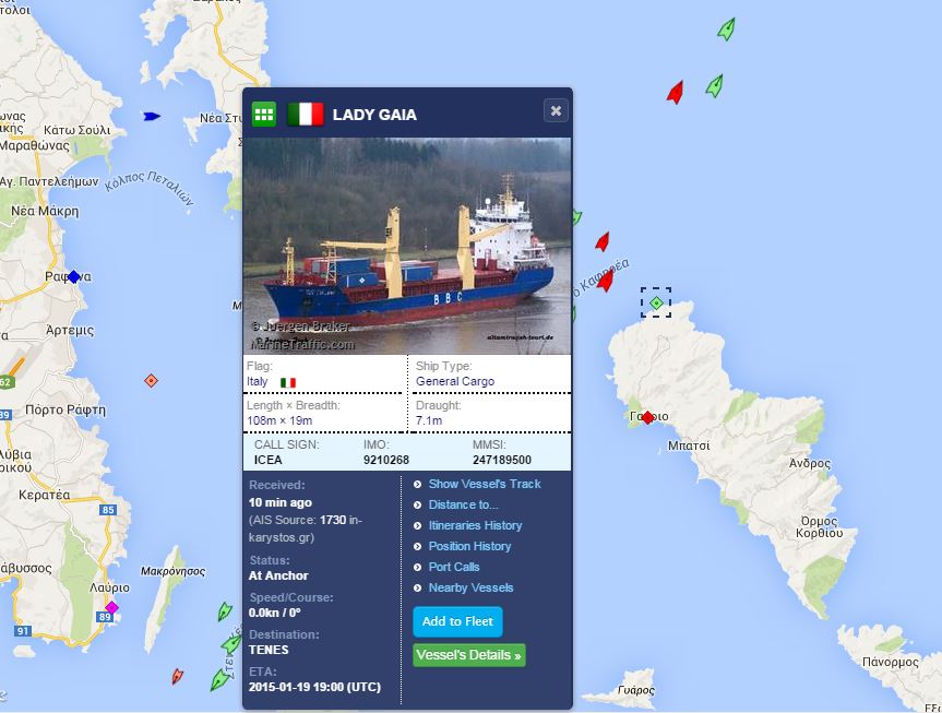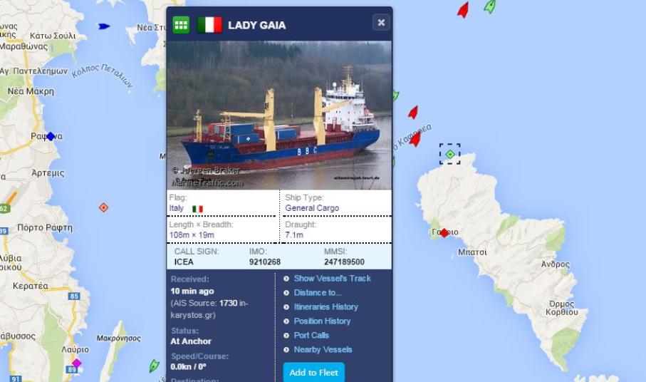 Ακυβέρνητο πλέει αυτή την ώρα το φορτηγό πλοίο “Lady Gaia” στη θαλάσσια περιοχή βόρεια της Άνδρου.
