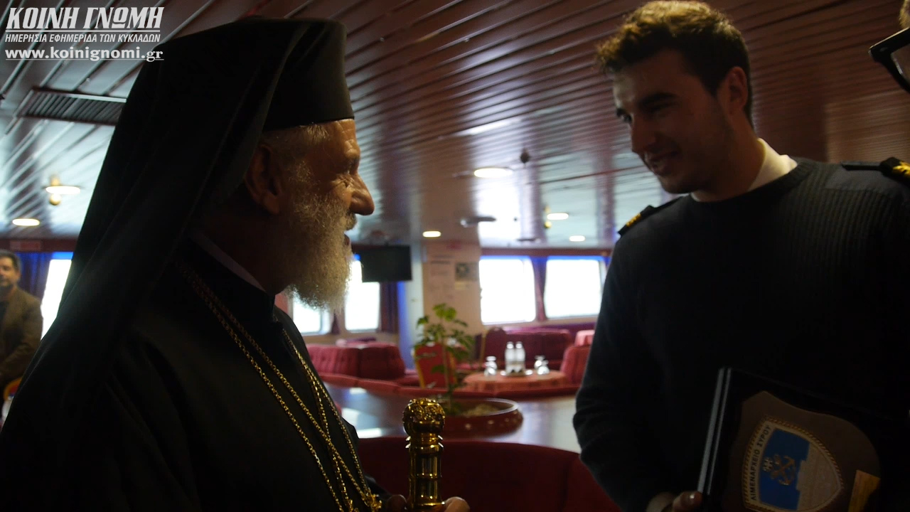 Δεδομένου, ότι στην πρώτη προσέγγισή του στο λιμάνι της Σύρου, την πρώτη ημέρα του 2016, το πλοίο έπρεπε να αναχωρήσει άμεσα, η βράβευση πραγματοποιήθηκε σήμερα.