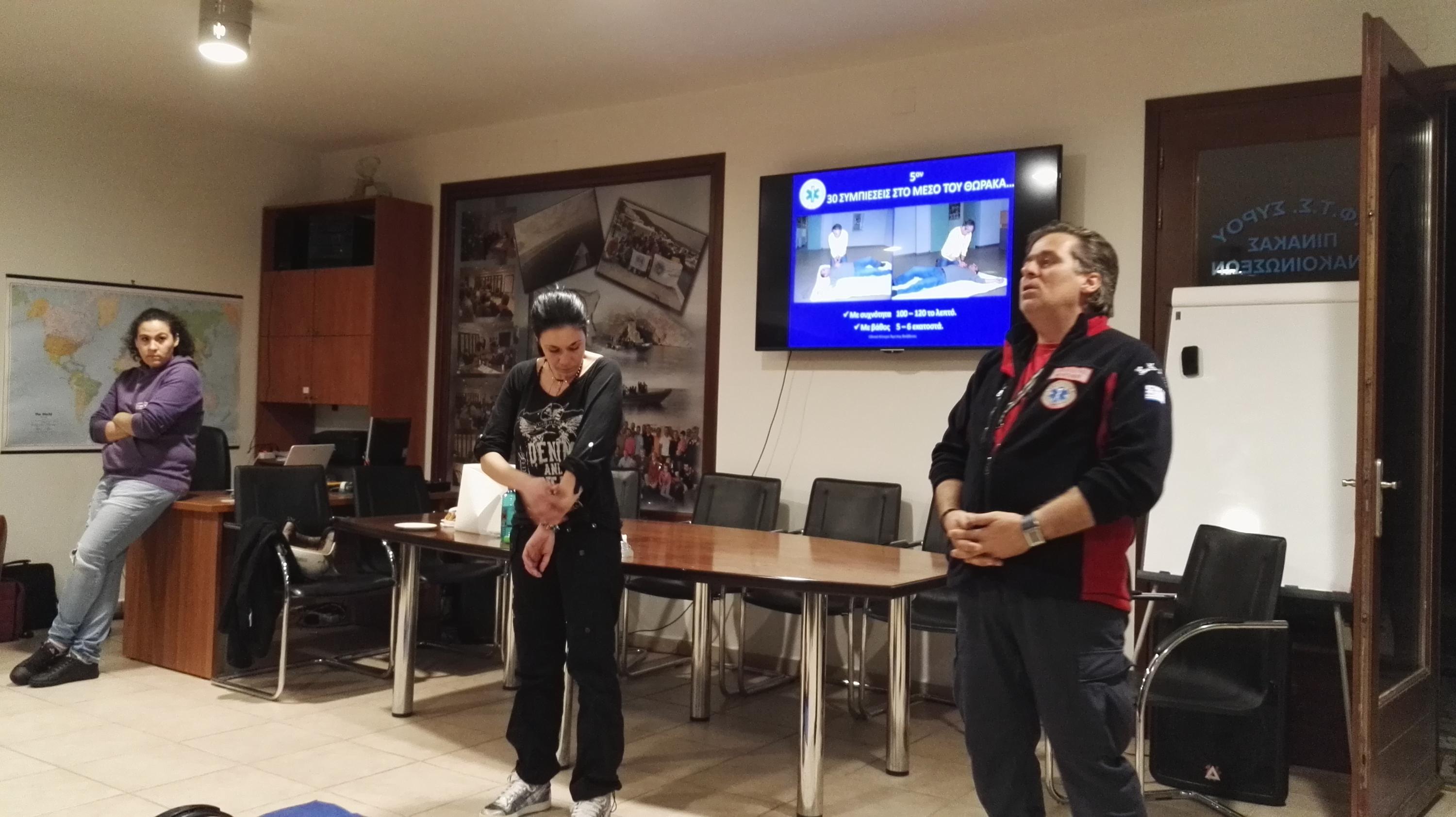 Τη Δευτέρα 15 Φεβρουαρίου πραγματοποιήθηκε στο εντευκτήριο του Ομίλου Φουσκωτών και Ταχυπλόων Σκαφών Σύρου σεμινάριο πρώτων βοηθειών. Πιο συγκεκριμένα, τρία άτομα από το ΕΚΑΒ Σύρου δέχτηκαν την πρόταση μας και ήρθαν να μας δείξουν τις βασικές τεχνικές που χρειάζεται όλοι να γνωρίζουμε για να μπορούμε να βοηθήσουμε αν αυτό χρειαστεί. Το σεμινάριο περιείχε τεχνικές καρδιοπνευμονικής αναζωογόνησης (ΚΑΡΠΑ), αντιμετώπισης της πνιγμονής και αντιμετώπιση τσιμπημάτων. Το πιο σημαντικό κομμάτι ήταν η πρακτική εξάσκηση όλων των συμμετεχόντων πάνω στην κούκλα που είχε φέρει το ΕΚΑΒ ώστε να υπάρχει άμεση εξοικείωση. Το σεμινάριο διήρκησε περίπου δύο ώρες και τα 45 μέλη που το παρακολούθησαν είχαν την ευκαιρία να λύσουν όλες τους τις απορίες.