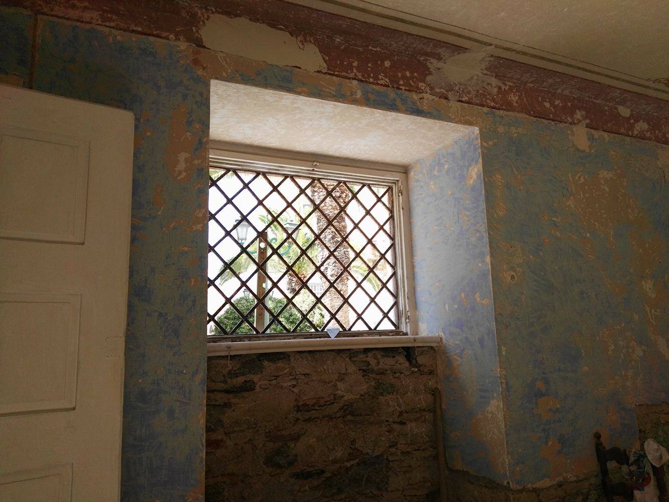 Πρόκειται για ένα γωνιακό τμήμα κάτω από τον κύριο χώρο του μεγάλου παλαιού ιστορικού κτιρίου της πόλης, το οποίο έως και σήμερα παραμένει αναξιοποίητο. Σύμφωνα με όσα αποτυπώνονται στον φωτογραφικό φακό, ο εσωτερικός χώρος καθώς ήταν παραμελημένος επί πολλά χρόνια φέρει σημαντικές φθορές, ενώ σοβαρά προβλήματα έχει και το σχεδόν κατεστραμμένο ξύλινο δάπεδο. Ήδη, οι πρώτες εργασίες αυτών των ημερών, έχουν φέρει στην επιφάνεια κι έχουν αναδείξει τα παλαιά χρώματα των τοιχογραφιών του ημιυπόγειου, ενώ ταυτόχρονα, υλοποιούνται εργασίες καθαρισμού των μαρμάρινων πλακών στο εξωτερικό “περίβλημα” του κτιρίου.