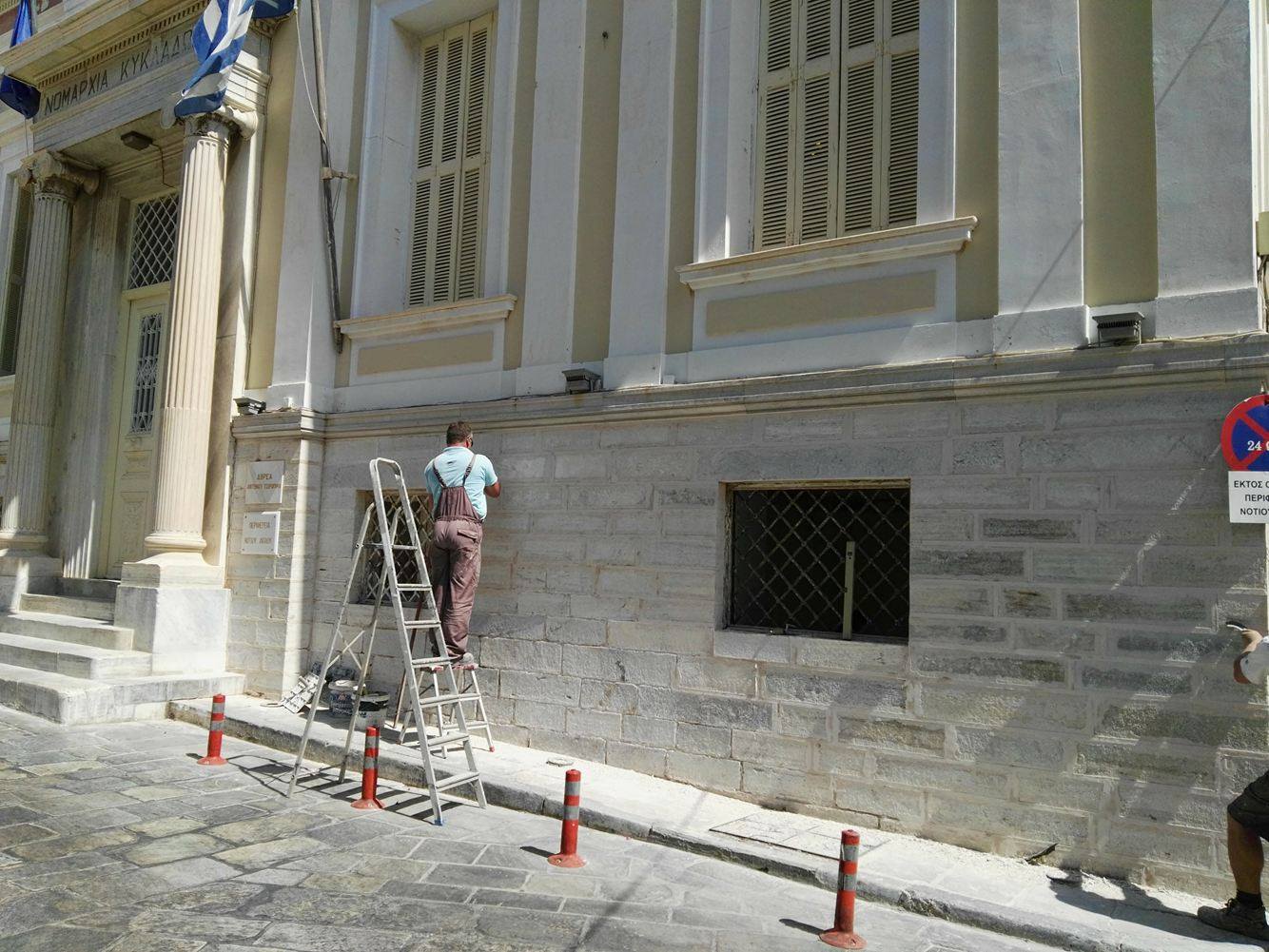 Με εντατικούς ρυθμούς συνεχίζονται οι εργασίες συντήρησης και βελτίωσης τμήματος του ημιυπόγειου και υπόγειου χώρου στο κτίριο που στεγάζεται η έδρα της Περιφέρειας Νοτίου Αιγαίου, στην πλατεία Τσιροπινά στην Ερμούπολη, καθ΄ όλη τη διάρκεια των τελευταίων ημερών.