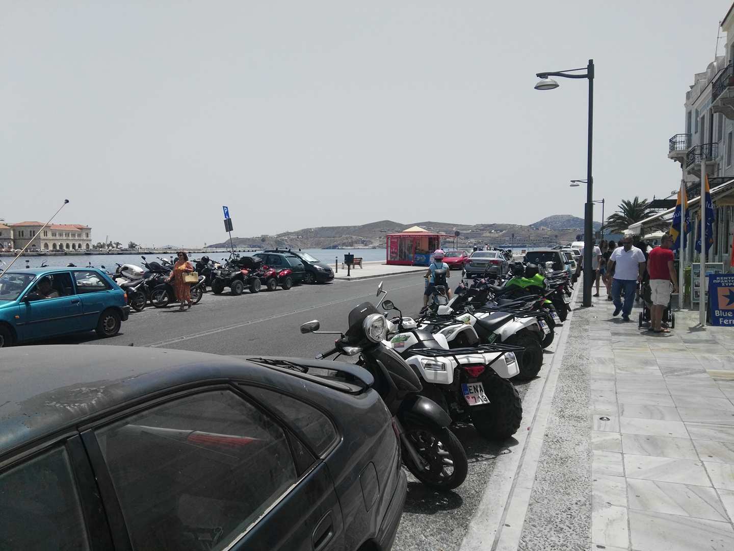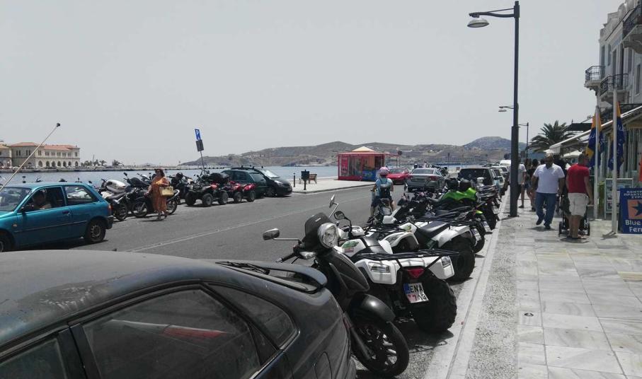 Χαρακτηριστικό παράδειγμα το τμήμα της παραλιακής ζώνης στο ύψος της έναρξης της οδού Κέας, το οποίο αν κι έχει προσδιορισθεί ως χώρος προσωρινής στάσης για την εξυπηρέτηση των πολιτών στην αγορά, ωστόσο, καθ΄ όλη τη διάρκεια των τελευταίων ημερών χρησιμοποιείται σταθερά ως χώρος διαθέσιμος(;) για τη σχεδόν μόνιμη στάθμευση δικύκλων.