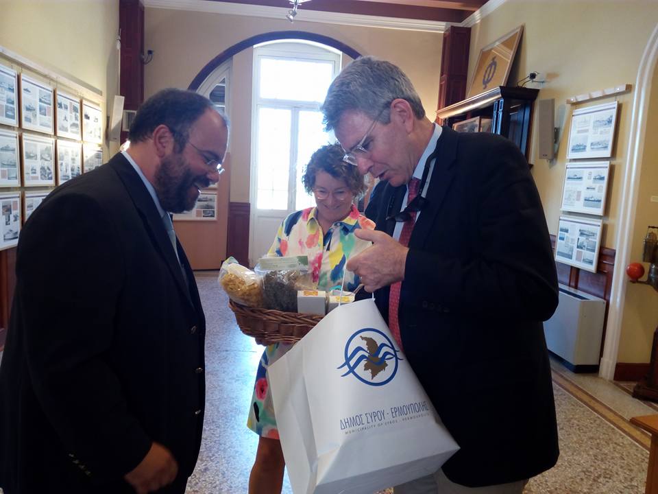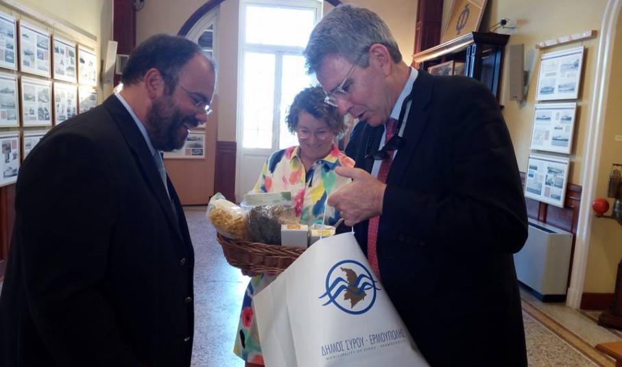 Επίσκεψη του Πρέσβη των ΗΠΑ στην Ελλάδα, Geoffrey Pyatt και της συζύγου του πραγματοποιήθηκε στην έπαυλη Τσιροπινά στην Ποσειδωνία το μεσημέρι της Πέμπτης από τον Αντιδήμαρχο, Αλέξη Αθανασίου.