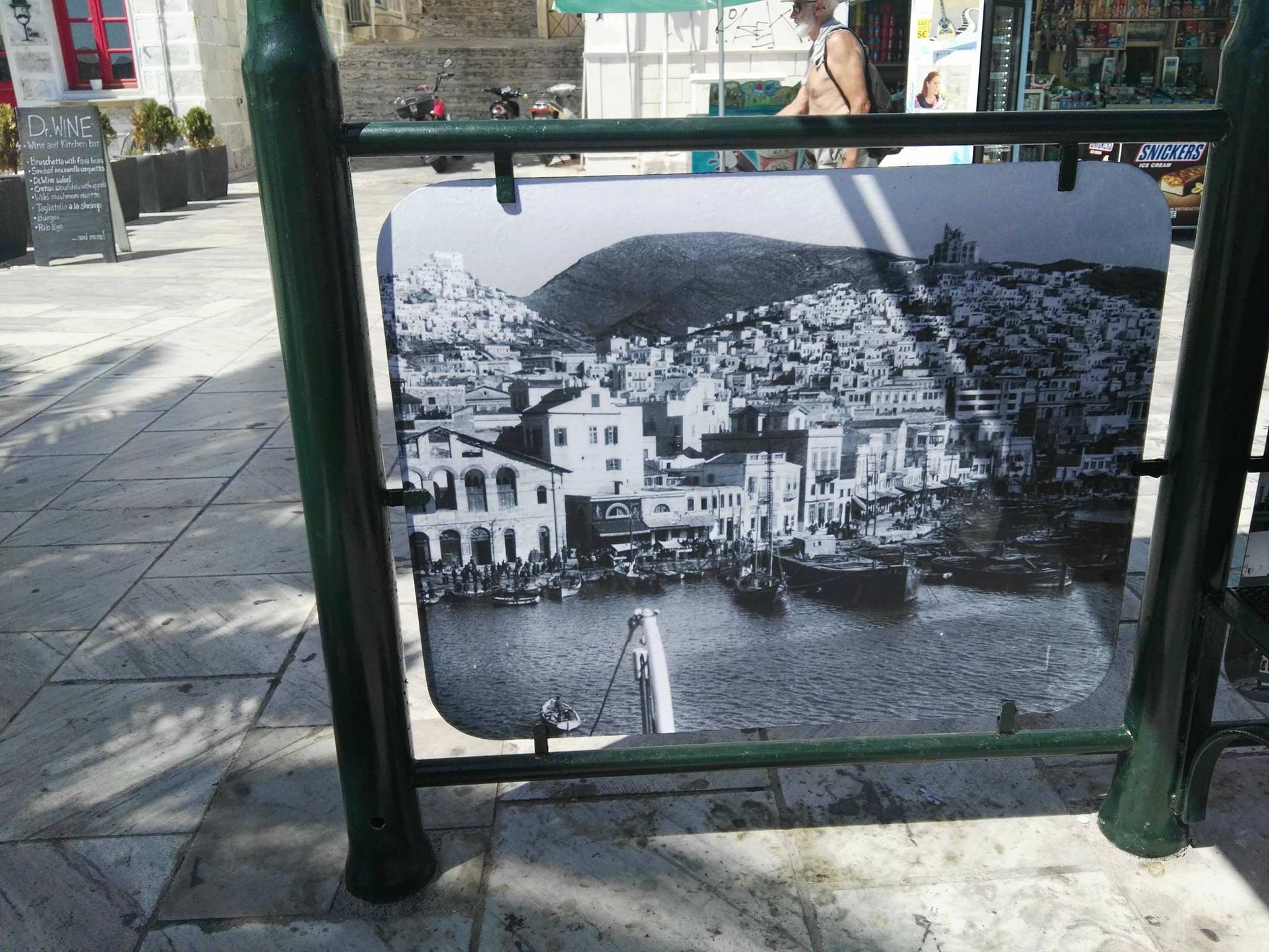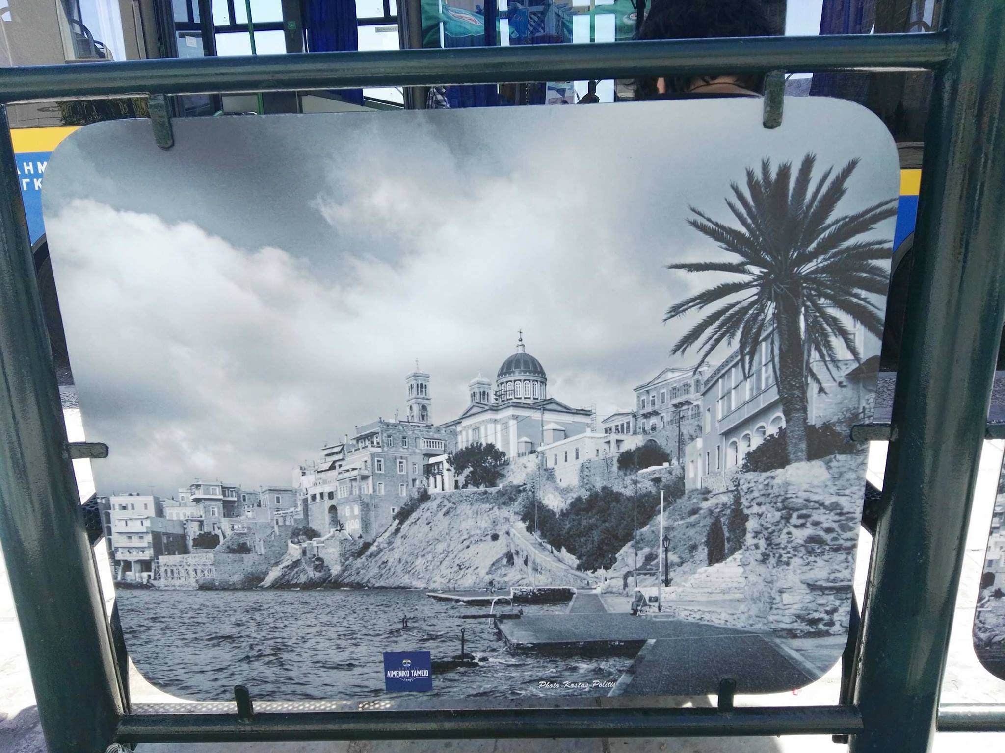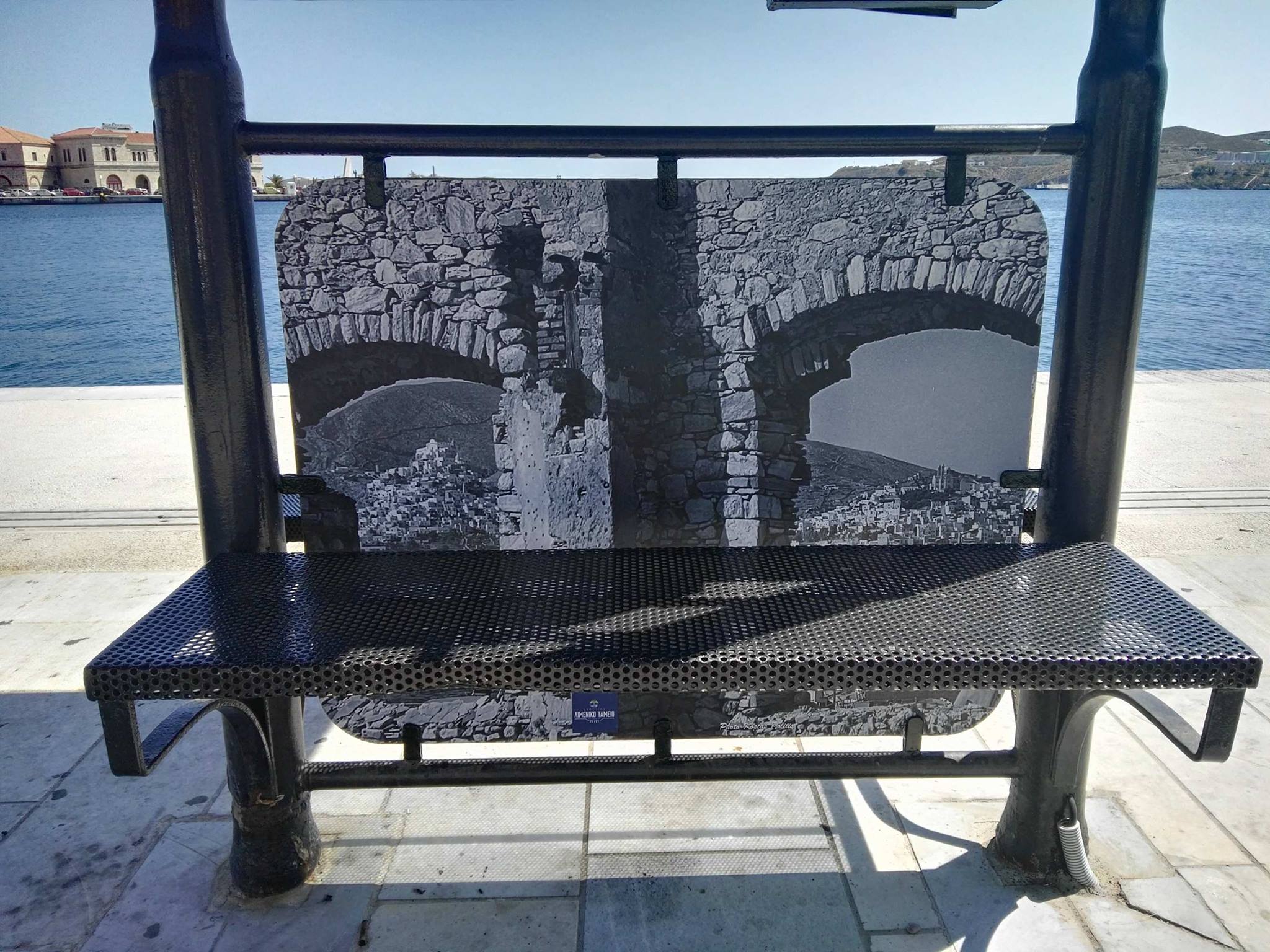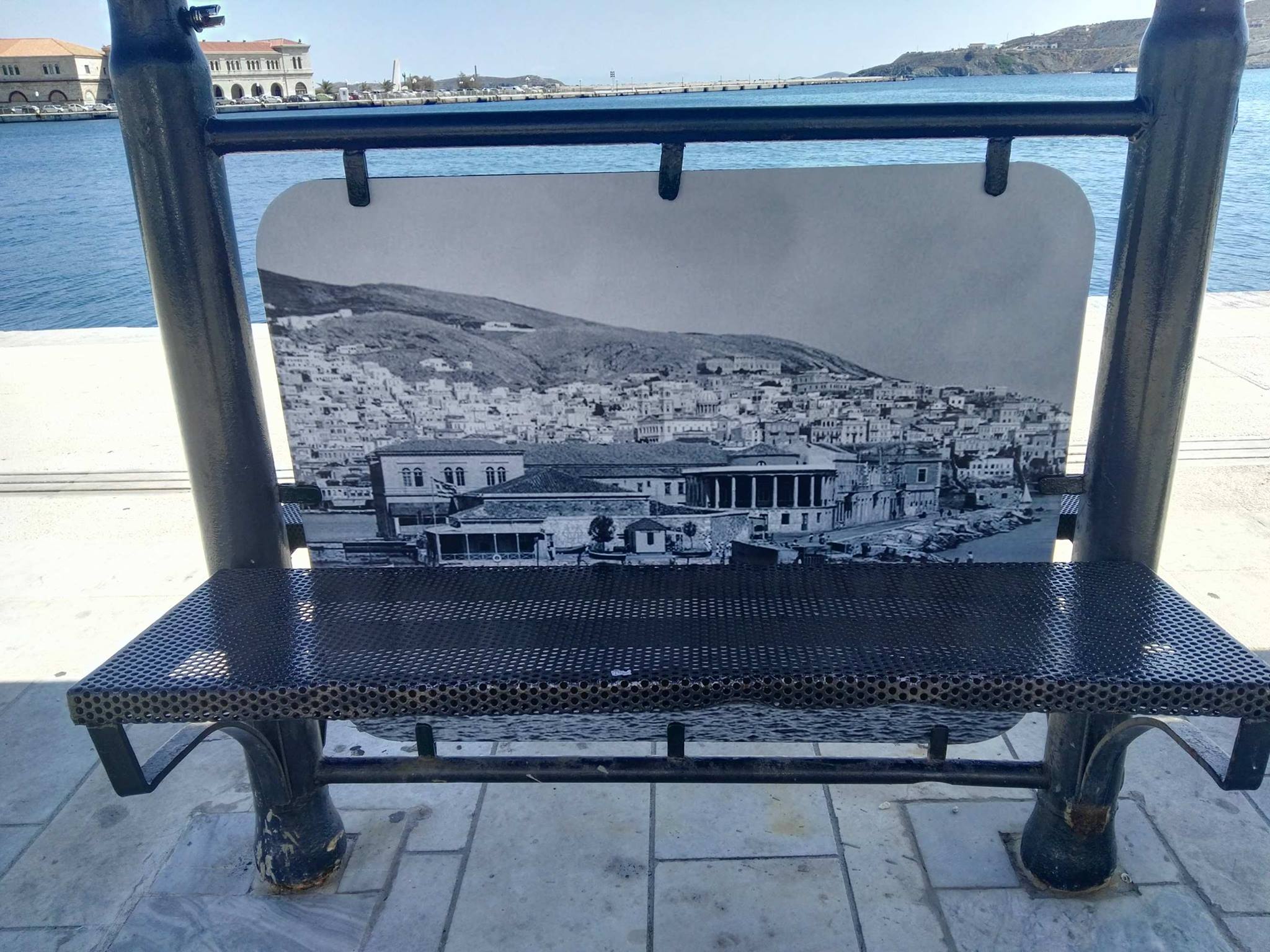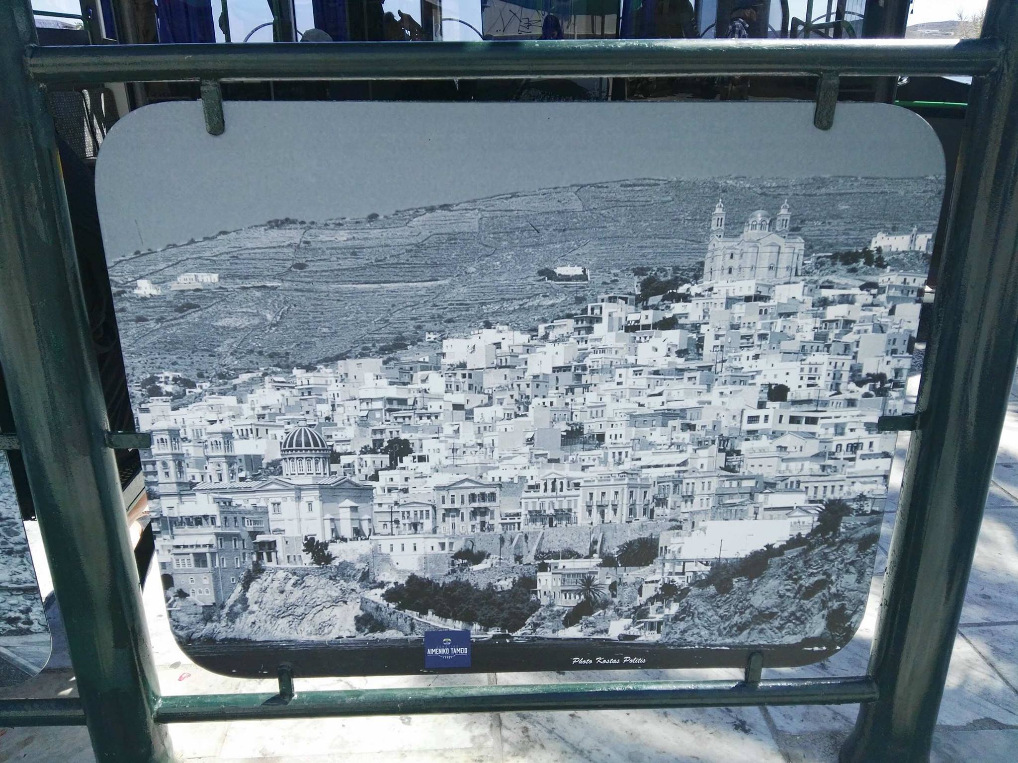 Συγκεκριμένα, στις επιφάνειες της πλάτης των καθισμάτων οι αρμόδιοι προχώρησαν στην τοποθέτηση μεγάλων παλαιών εικόνων που δείχνουν το νησί κατά τα παλαιότερα έτη. Ενδεικτικά μπορούν να αναφερθούν οι απόψεις του παλαιού λιμένα της ιστορικής Ερμούπολης, η άποψη του λόφου της Ανάστασης, η θέα προς τα Βαπόρια και τα Αστέρια, καθώς επίσης οι δύο λόφοι της Άνω Σύρου και της Ανάστασης από την πλευρά του πρώην εργοστασίου Λαδόπουλου.