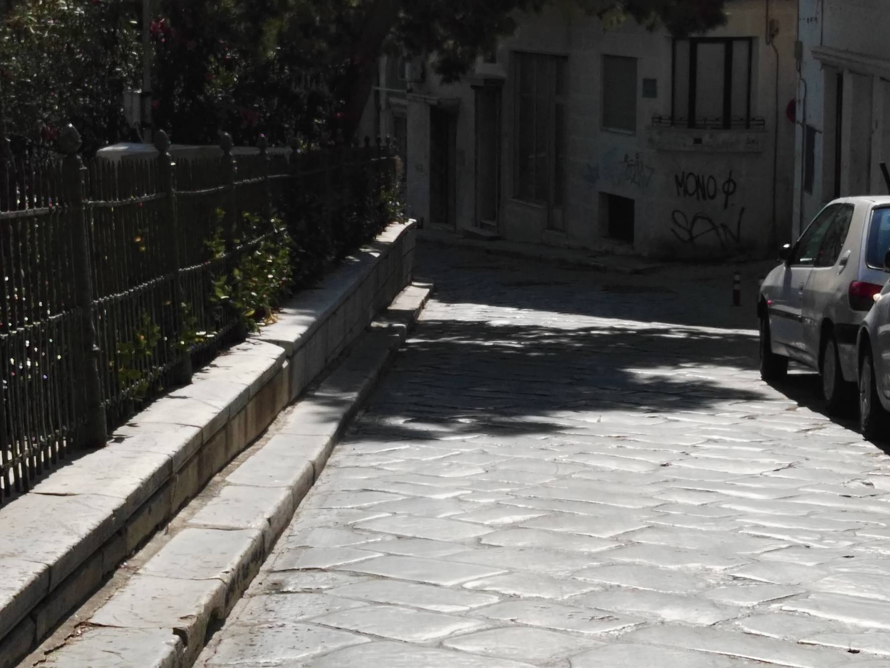 Ειδικότερα, ο συγκεκριμένος δρόμος μπροστά από το θέατρο “Απόλλων” καθώς και περιμετρικά του κηπαρίου της προβολής του Ι.Ν. Αγίου Νικολάου παρουσιάζει αυξημένο βαθμό ολισθηρότητας, με τα mini bus πέρυσι και σε ορισμένες συνθήκες έντονης βροχόπτωσης, να είχαν δηλώσει αδυναμία εκτέλεσης των δρομολογίων για λόγους ασφάλειας των επιβατών, των οδηγών και των πεζών.