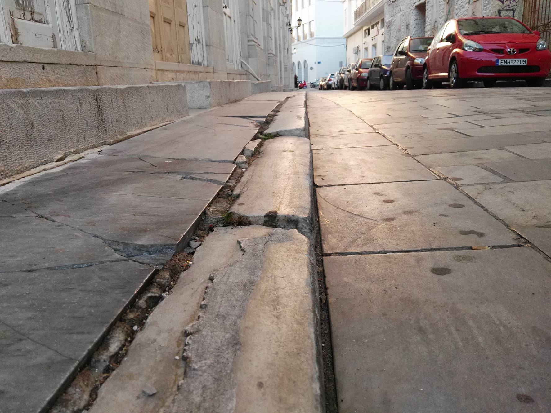 Αν και η Τεχνική Υπηρεσία του Δήμου Σύρου – Ερμούπολης προ μηνών είχε προβεί σε διορθωτικές εργασίες ώστε να μην προκύπτει δυσκολία διέλευσης, αλλά και με σκοπό να περιοριστεί ο κίνδυνος ατυχήματος για τους πεζούς, ωστόσο σήμερα, έρχεται στο προσκήνιο ο - οφθαλμοφανώς - πρόχειρος κι εμβαλωματικός χαρακτήρας αυτών.