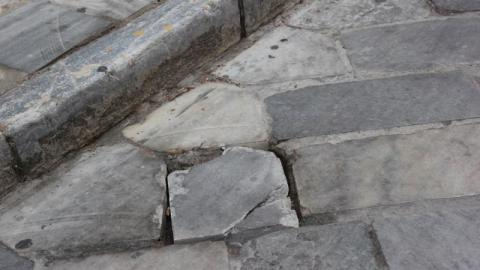 Όπως πολλάκις έχει αναδείξει και η “Κοινή Γνώμη” μέσω της παρούσας σελίδας, σοβαρά προβλήματα αποκόλλησης πλακών και μαρμάρων έχουν καταγραφεί - ενδεικτικά – στον χώρο της πλατείας Σταύρου Βαφία, στον δρόμο πλησίον του Ι.Ν. Μεταμορφώσεως, καθώς επίσης στην προβολή του θεάτρου “Απόλλων”, αλλά και περιμετρικά του κηπάριου του Ι.Ν. του Αγίου Νικολάου, μα και κοντά στην μικρή πλατεία Τσιροπινά.