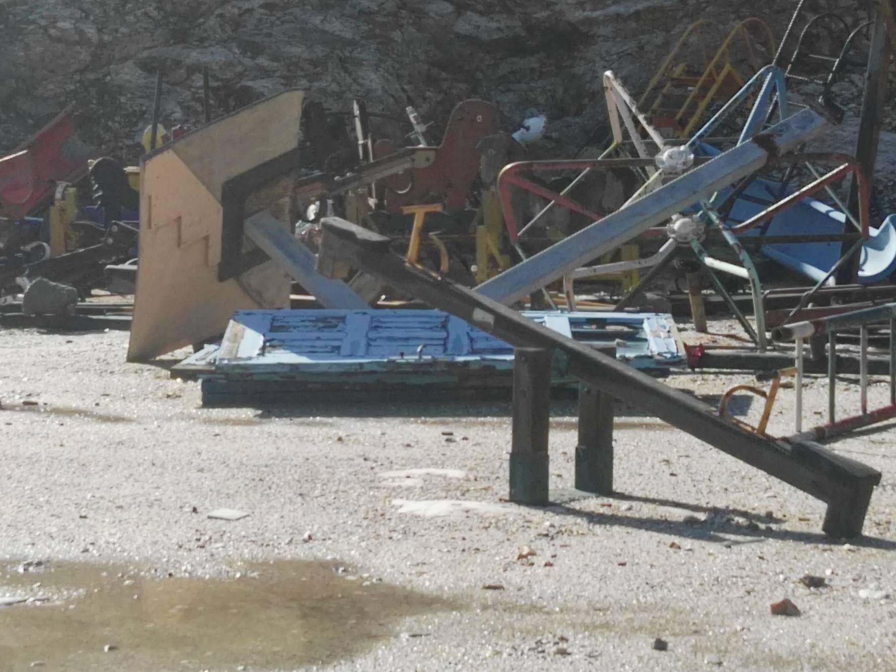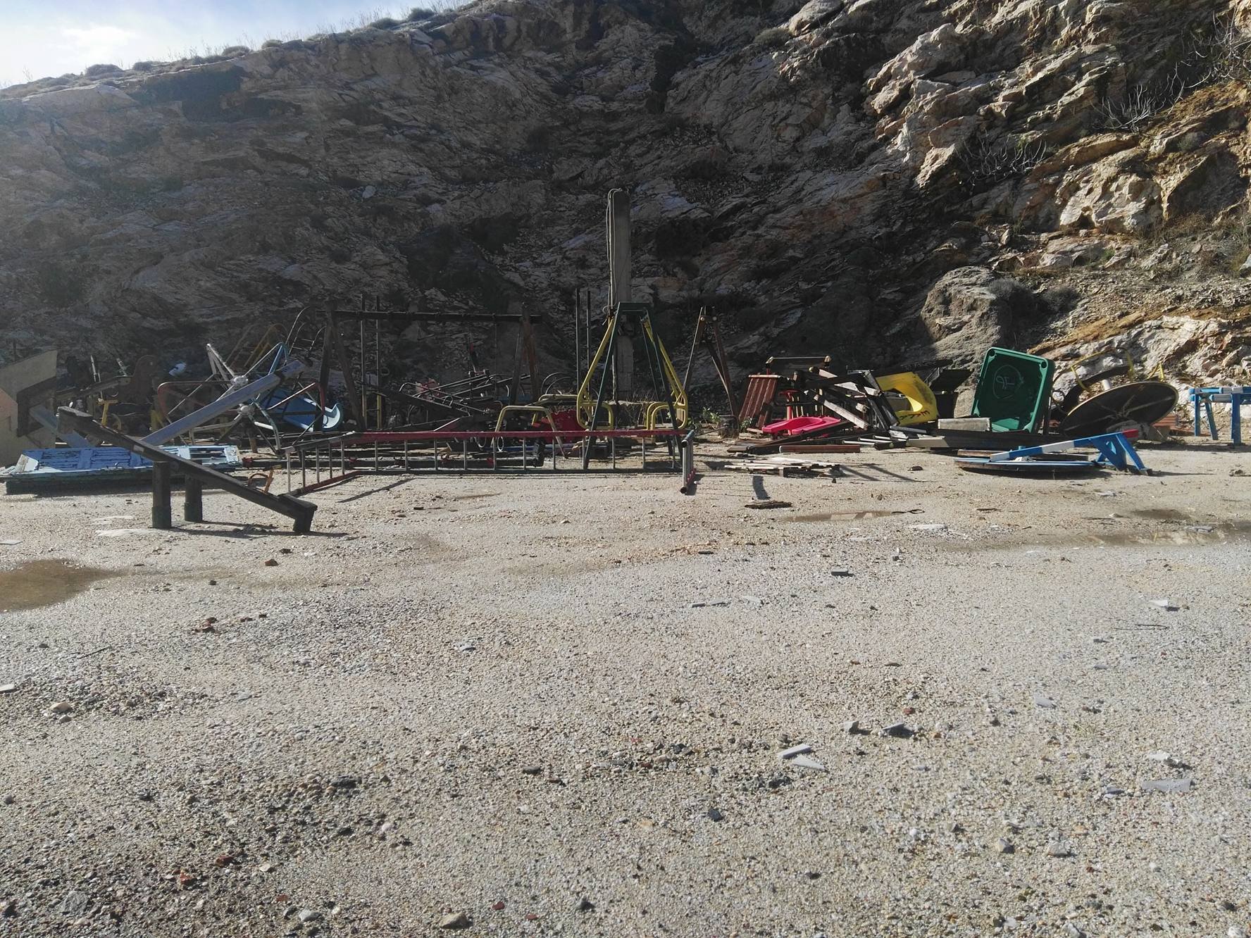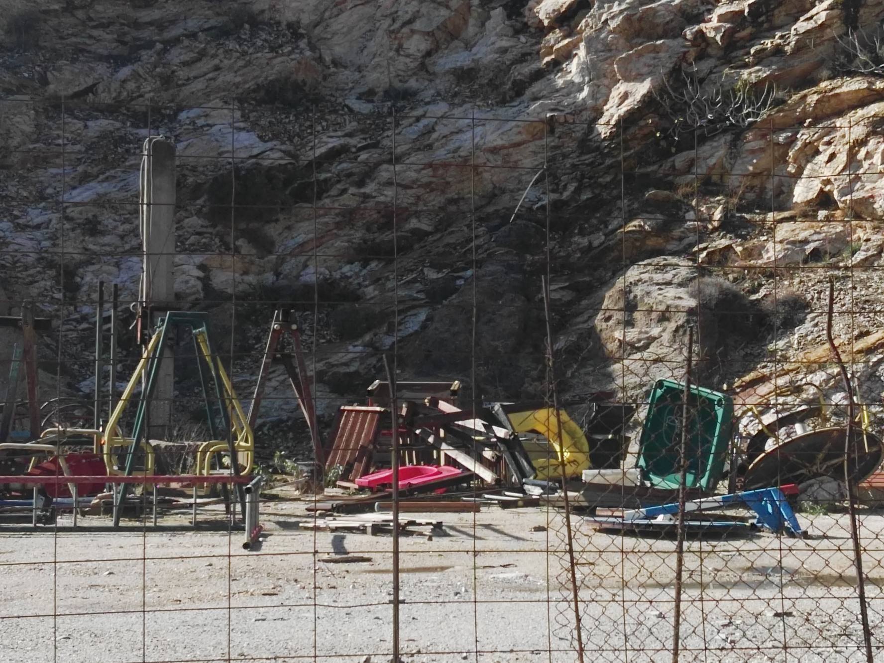Αναξιοποίητος παραμένει μέχρι σήμερα ο παλαιός εξοπλισμός των παιδικών χαρών της Σύρου, που είχε αφεθεί – σχεδόν προ τριετίας - σε ανοικτό τμήμα, πλησίον του πολιτιστικού χώρου “Μάνος Ελευθερίου”, με τη σημερινή κατάστασή του μάλιστα, να προδίδει πως σχεδόν στο σύνολό του, πλέον, καθίσταται αδύνατον να επαναχρησιμοποιηθεί.