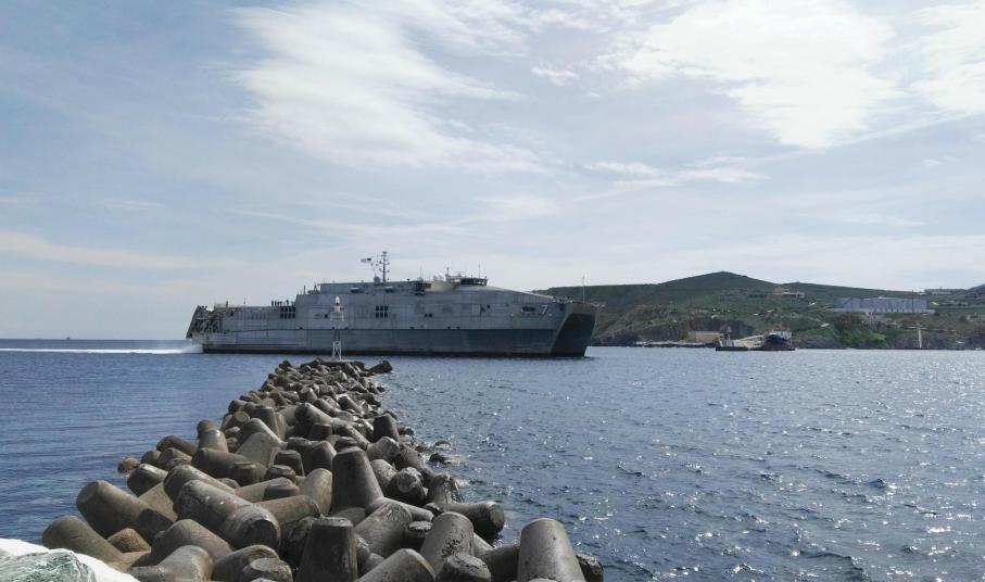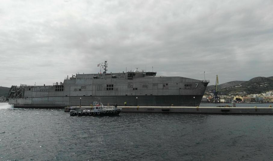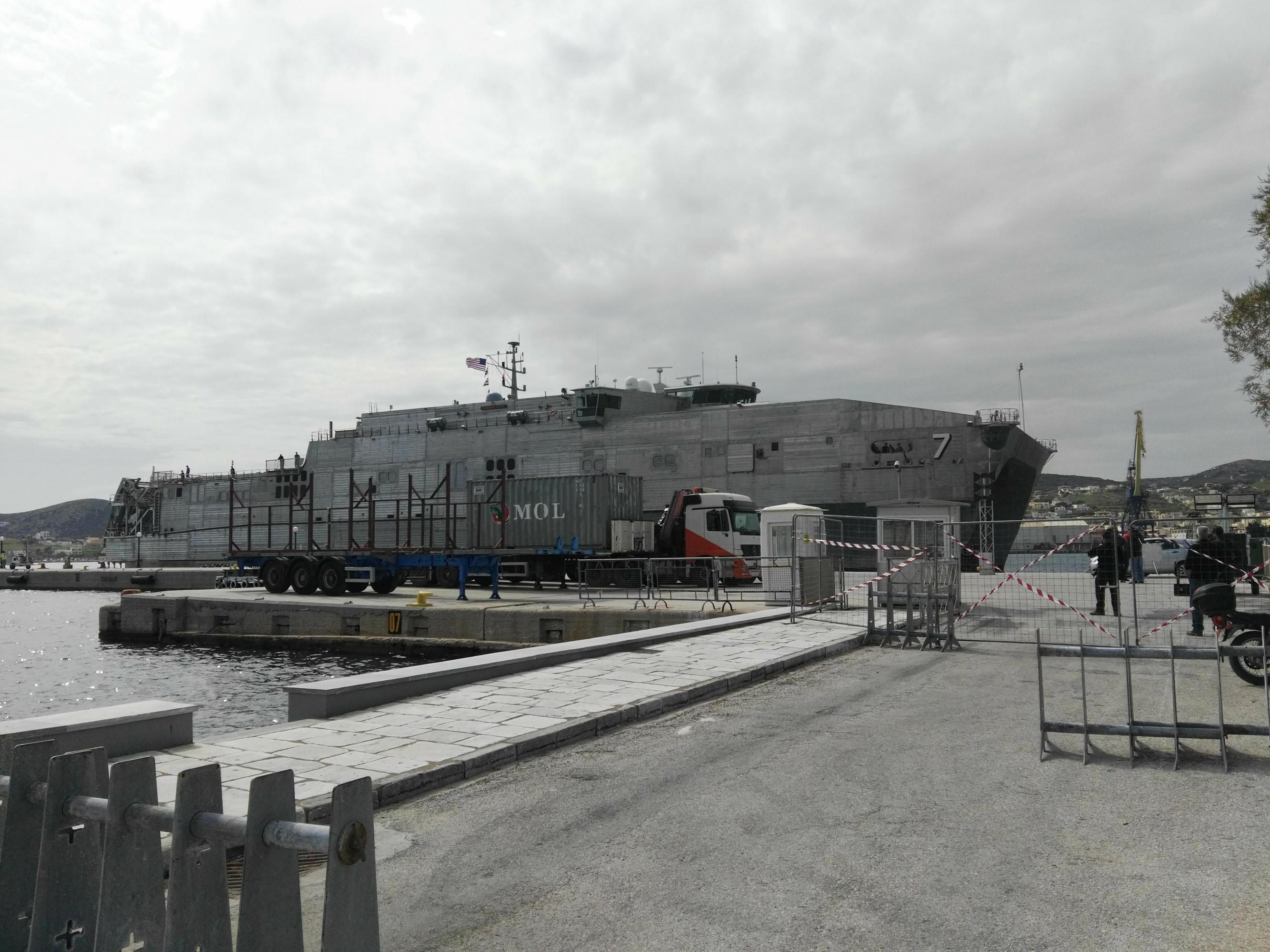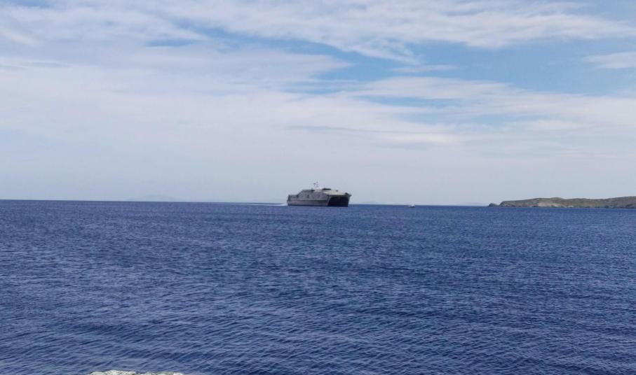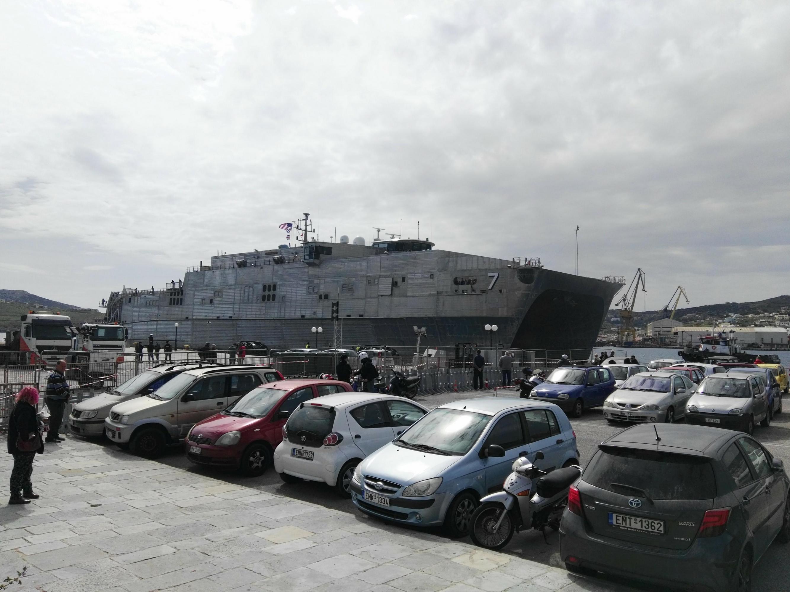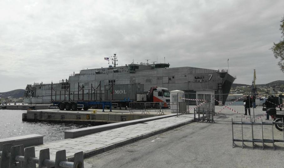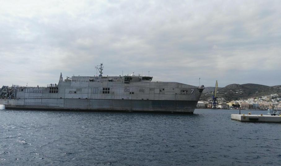 Στο λιμάνι της Ερμούπολης κατέπλευσε catamaran του Πολεμικού Ναυτικού των ΗΠΑ, σήμερα, λίγο μετά τη μία και μισή το μεσημέρι, το οποίο και πλαγιοδέτησε στην προβλήτα των κρουαζιερόπλοιων.