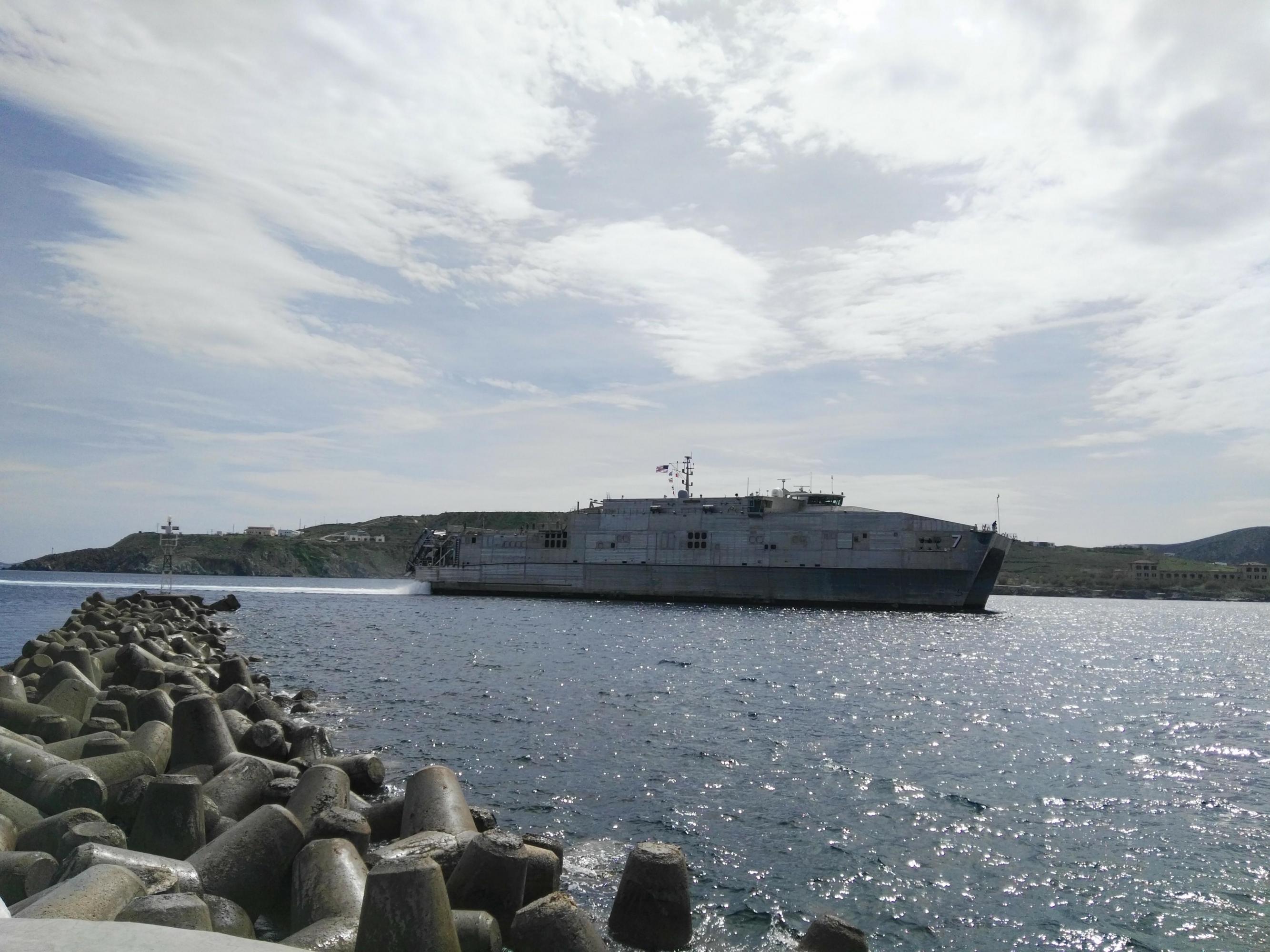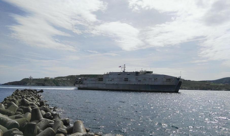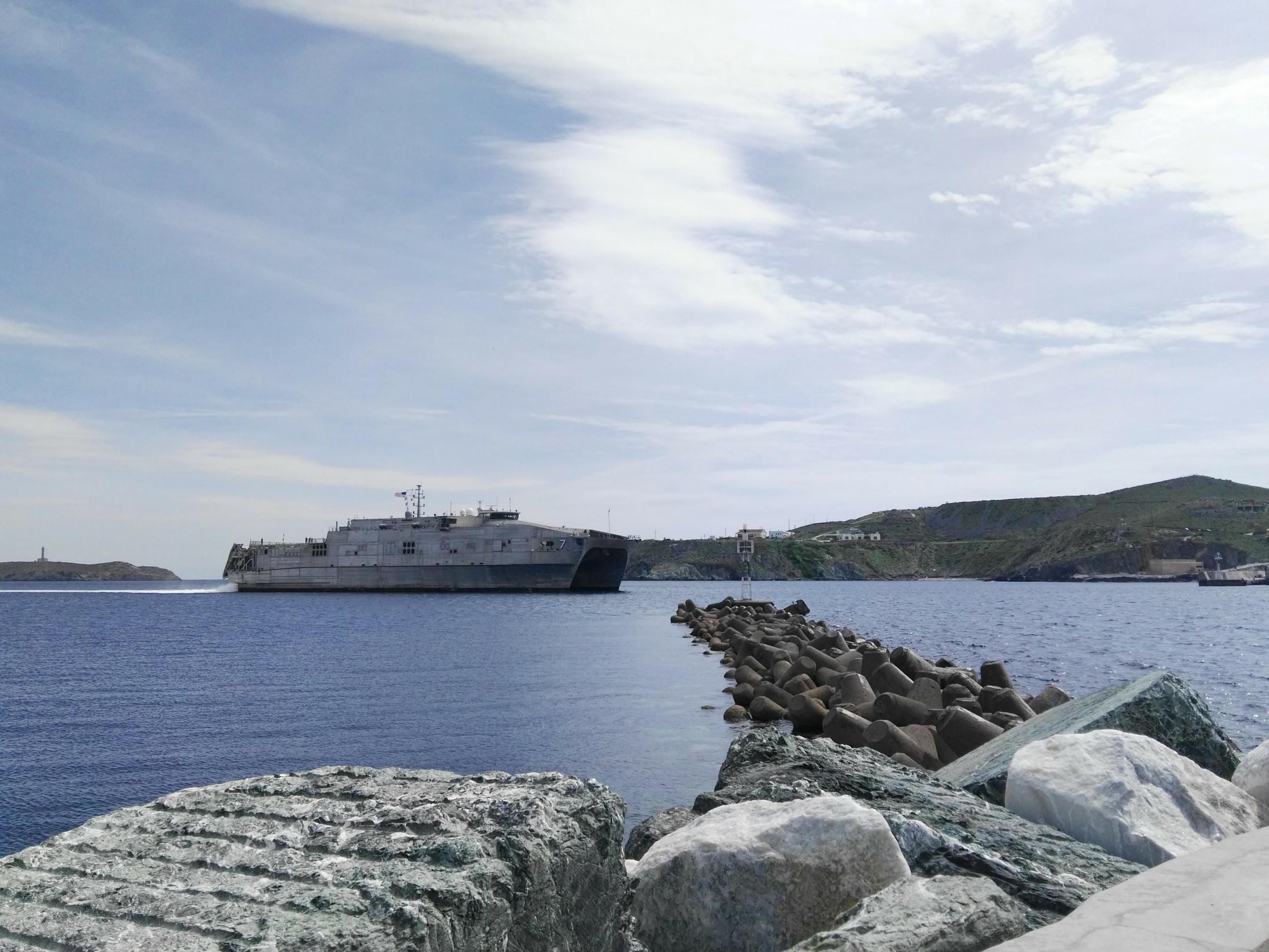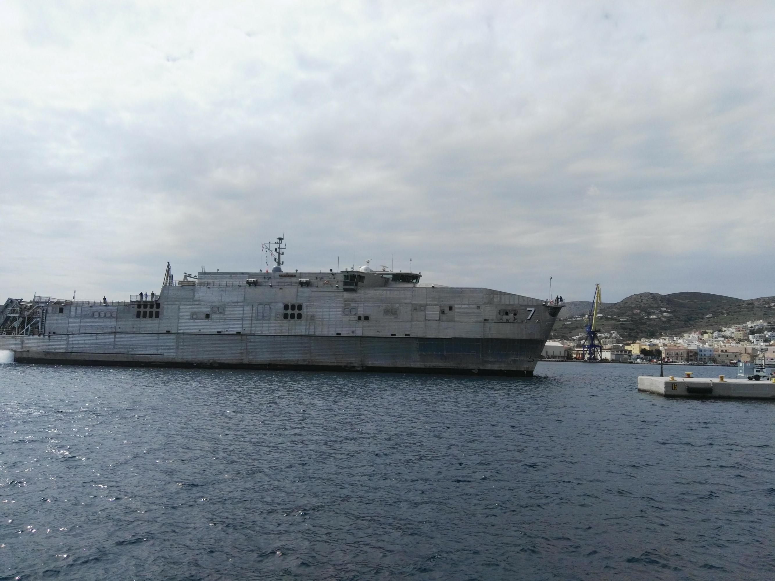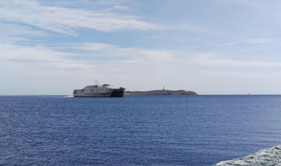 Στο λιμάνι της Ερμούπολης κατέπλευσε catamaran του Πολεμικού Ναυτικού των ΗΠΑ, σήμερα, λίγο μετά τη μία και μισή το μεσημέρι, το οποίο και πλαγιοδέτησε στην προβλήτα των κρουαζιερόπλοιων.