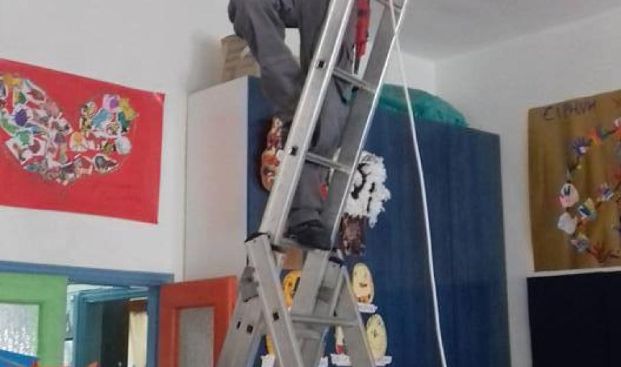 Συγκεκριμένα, προχθές το πρωί στις εγκαταστάσεις του σχολείου μετέβησαν εργάτες του Δήμου, οι οποίοι φρόντισαν για τις ηλεκτρολογικές συνδέσεις και την τοποθέτηση των ανεμιστήρων οροφής, προκειμένου τα μικρά παιδιά να παραμένουν στο Νηπιαγωγείο σε κατάλληλες συνθήκες.