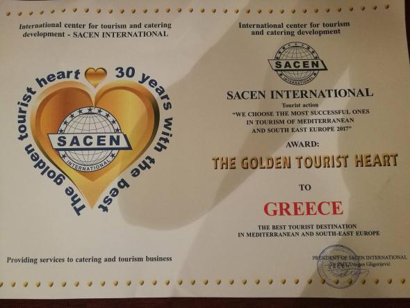 Η Ελλάδα κέρδισε το επονομαζόμενο «Όσκαρ Τουρισμού» από το Διεθνές Κέντρο για την Προβολή και Ανάπτυξη της βιομηχανίας του Τουρισμού και της Eστίασης SACEN International και αναδείχθηκε ως ο κορυφαίος τουριστικός προορισμός στην Μεσόγειο και την Νοτιοανατολική Ευρώπη, για το 2018.