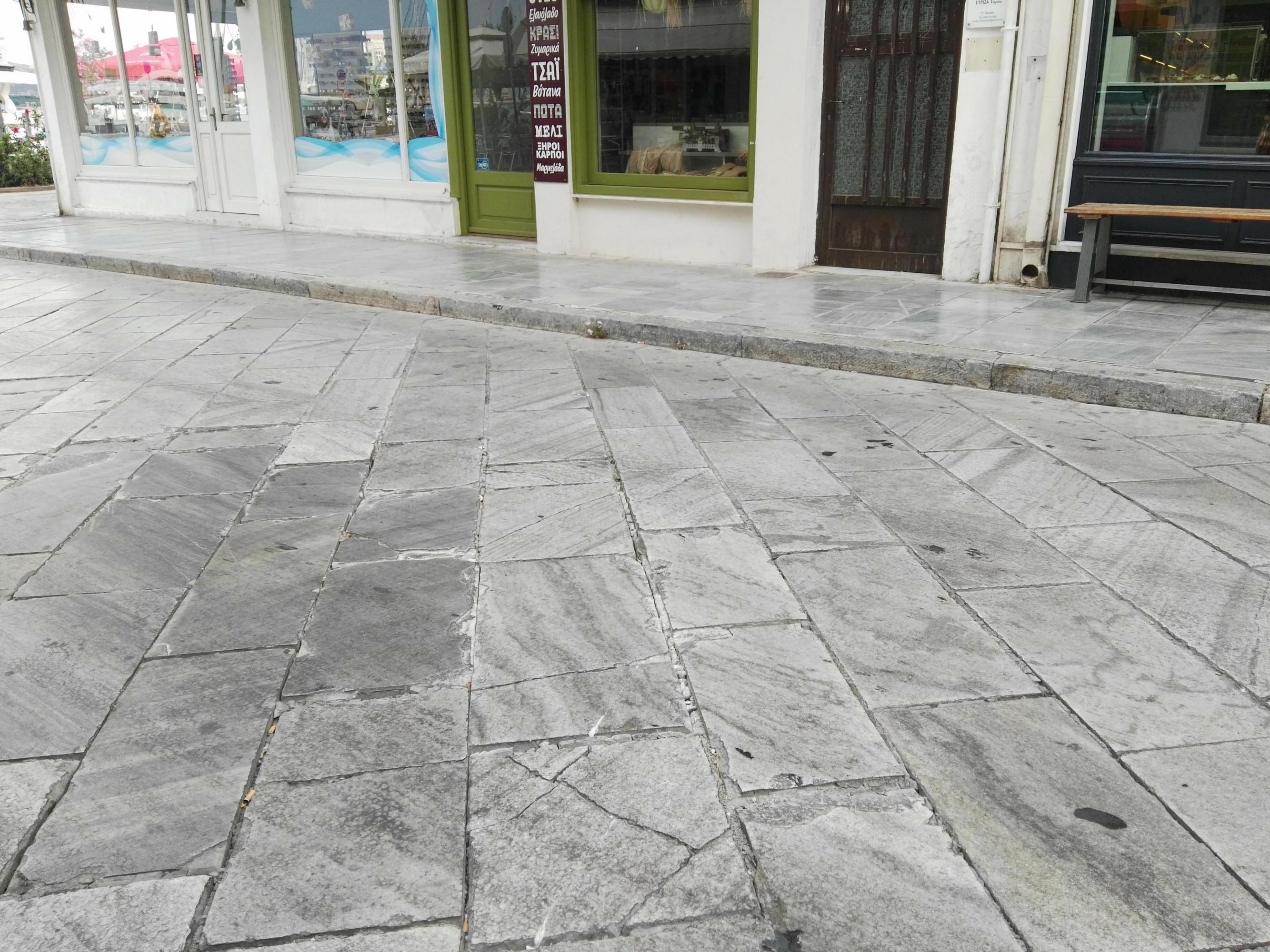 Η καθημερινή διέλευση οχημάτων, δικύκλων, ακόμη όμως και λεωφορείων μοιραία προκαλεί αρκετά προβλήματα στα πλακόστρωτα του ιστορικού κέντρου, τα οποία δείχνουν... πως σε μεγάλα τμήματά τους “διαλύονται”, εξαιτίας της αποκόλλησης πλακών ή μαρμάρων.