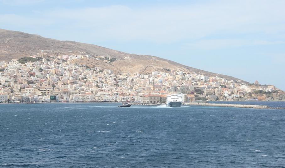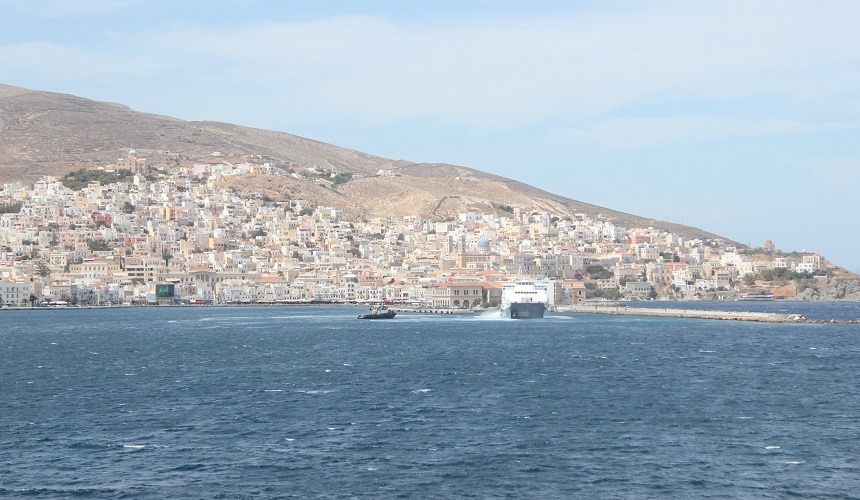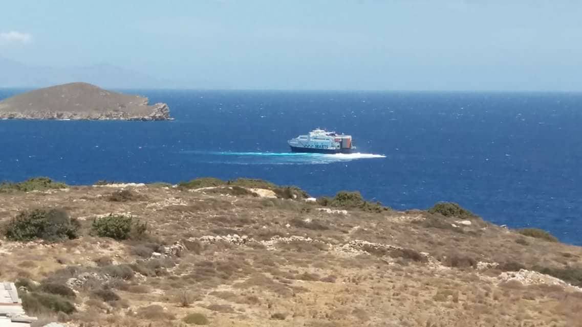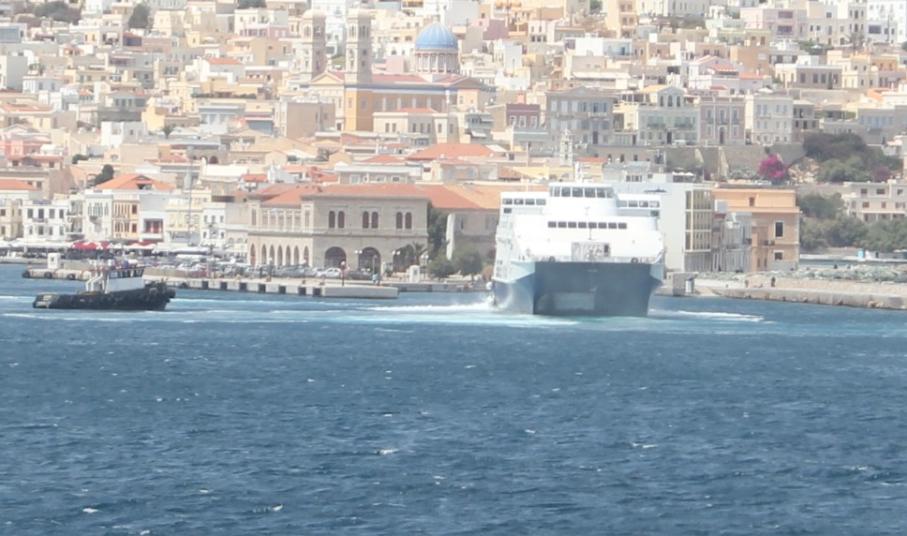 Συγκεκριμένα, το πλοίο αγκυροβόλησε αρχικά νότια της βραχονησίδας “Γαϊδουρονήσι” και αυτή τη στιγμή με την υποβοήθηση ρυμουλκού θα κατευθυνθεί στο λιμάνι της Σύρου.