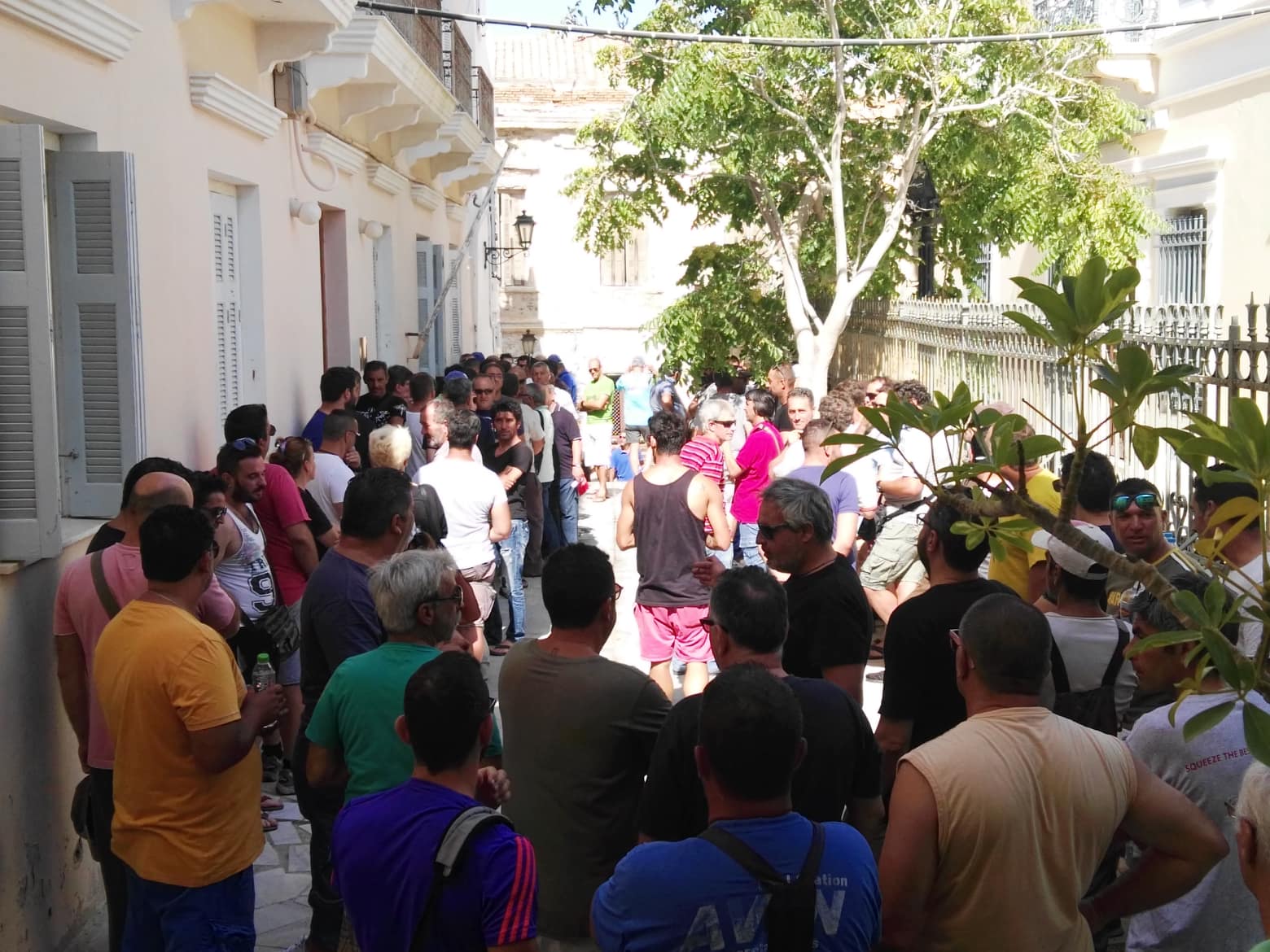 Πρέπει να σημειωθεί πως, οι εργαζόμενοι του Νεωρίου που παρέμειναν για αρκετές ώρες έξω από το κτίριο, αποδοκίμασαν λεκτικά τους 14 πρώην “συναδέλφους” τους όταν έφθασαν μετά τις 12.30, ενώ έριξαν και ντομάτες στα γραφεία της Επιθεώρησης Εργασίας Σύρου, εκδηλώνοντας την αγανάκτησή τους για την “προκλητική στάση” που όπως υποστήριξαν, συνάντησαν.