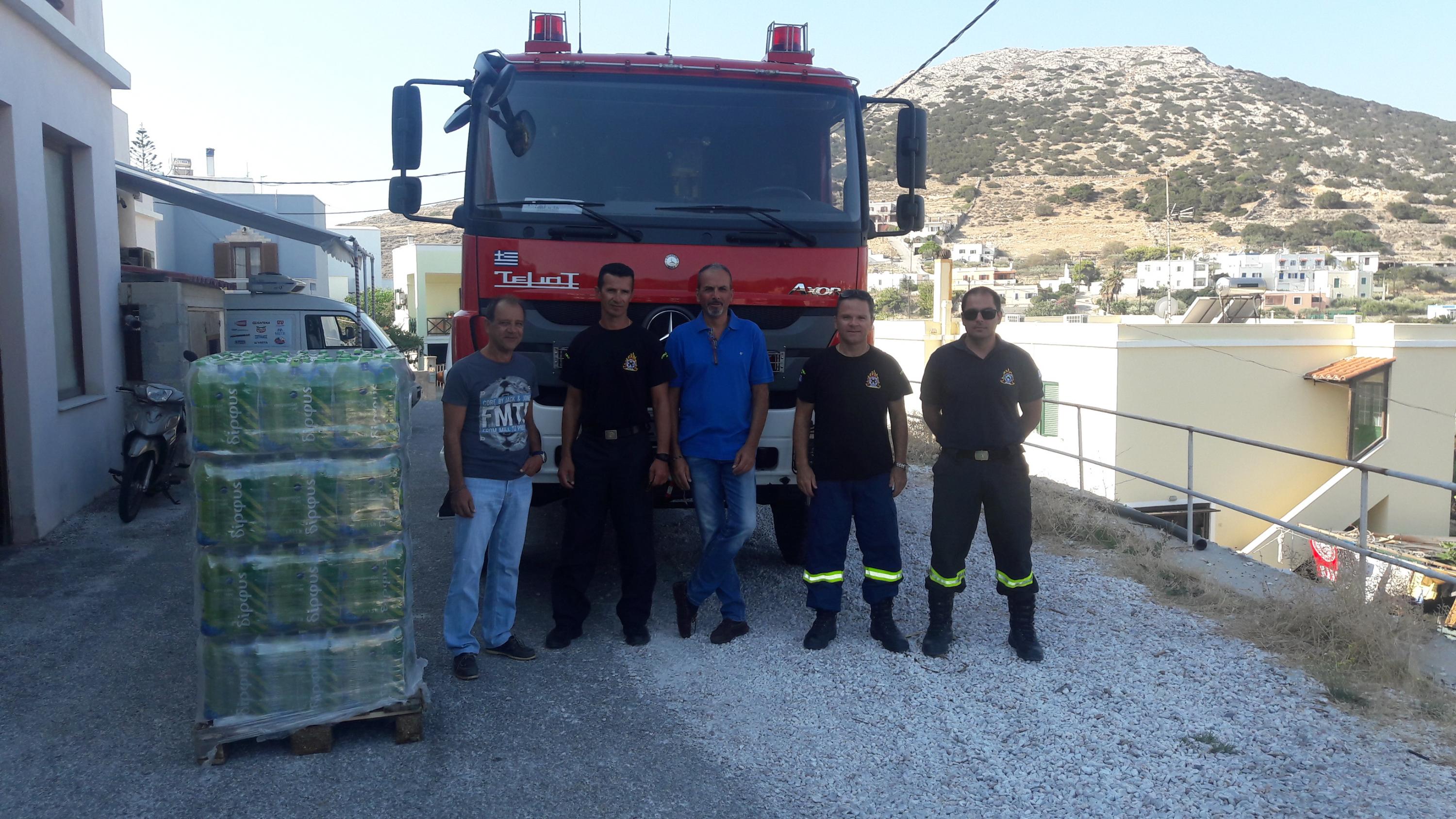Ως Ένωση Υπαλλήλων Πυροσβεστικού Σώματος Νοτίου Αιγαίου, θα θέλαμε να εκφράσουμε τις ευχαριστίες μας προς την αντιπροσωπεία "Ι.Σαγκινέτου & Χ.Μαραγκού Ο.Ε." που εδρεύει στο Μάννα Σύρου, για την ευγενική προσφορά ογδόντα τεσσάρων (84) εξάδων εμφιαλωμένου νερού, για τις ανάγκες του πυροσβεστικού προσωπικού της Π.Υ. Ερμούπολης σε περιπτώσεις αντιμετώπισης πυρκαγιών.