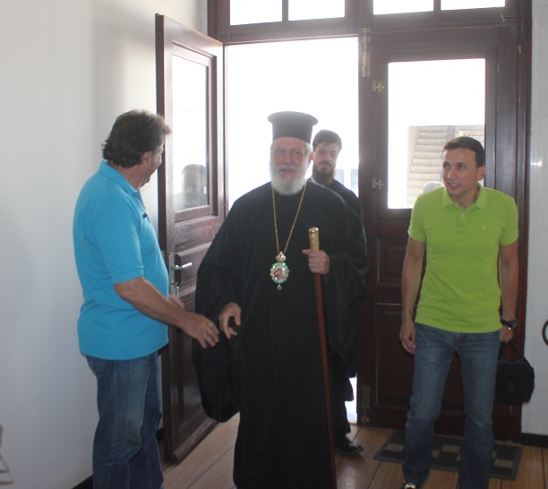 Ο κκ. Δωρόθεος Β΄ μετέβη χθες στις εγκαταστάσεις του Νεωρίου, όπου και τον υποδέχθηκε ο πρόεδρος του Εργοστασιακού Σωματείου, Αντώνης Χατζαντώνης, καθώς και ο γραμματέας του νέου ΔΣ, Μάρκος Ρηγούτσος, πλαισιωμένοι και από άλλα μέλη κι εργαζομένους, οι οποίοι και συνομίλησαν μαζί του.