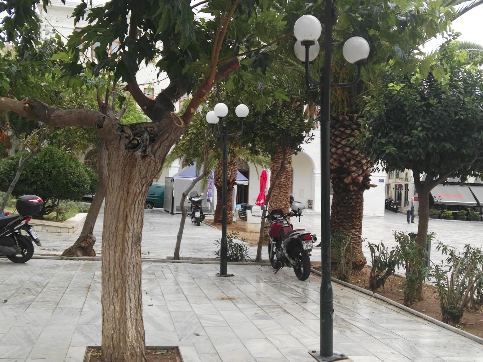 Ενδεικτικά, αξίζει να αναφερθεί η πλατεία Μιαούλη και μάλιστα τα τμήματα που “πλαισιώνουν” την κεντρική κλίμακα, που αποτελούν δύο μικρά κηπάρια.