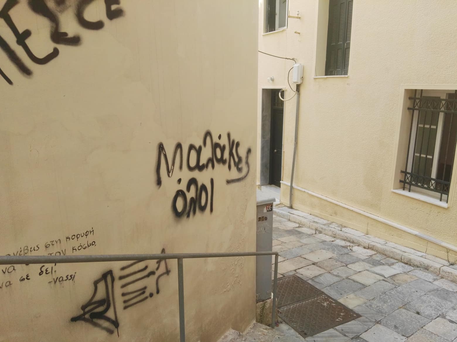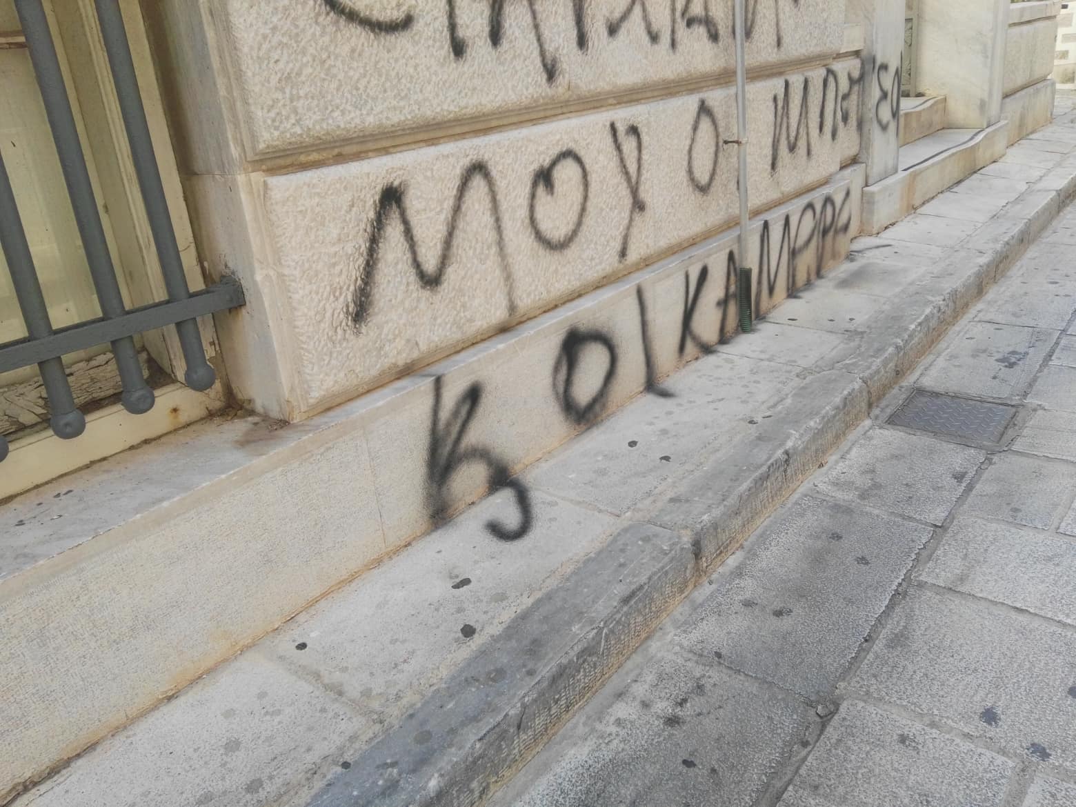 Ανεκδιήγητοι προχώρησαν σε αποτύπωση συνθημάτων αλλά και ανόητων αναφορών στις επιφάνειες κτιρίων του ιστορικού κέντρου