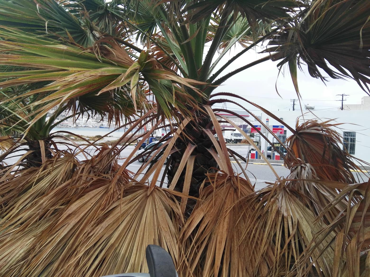 Ο πλήρης θάνατος... επήλθε για τους φοίνικες και τα φοινικοειδή κατά μήκος του κεντρικού δρόμου του Κάτω Μάννα και συγκεκριμένα στο ύψος γνωστού πρατηρίου καυσίμων, μετά και τη χθεσινή έντονη βροχόπτωση που αποτελείωσε όσους εξ αυτών δεν είχαν προσβληθεί από το “σκαθάρι” κατά τους προηγούμενους μήνες.