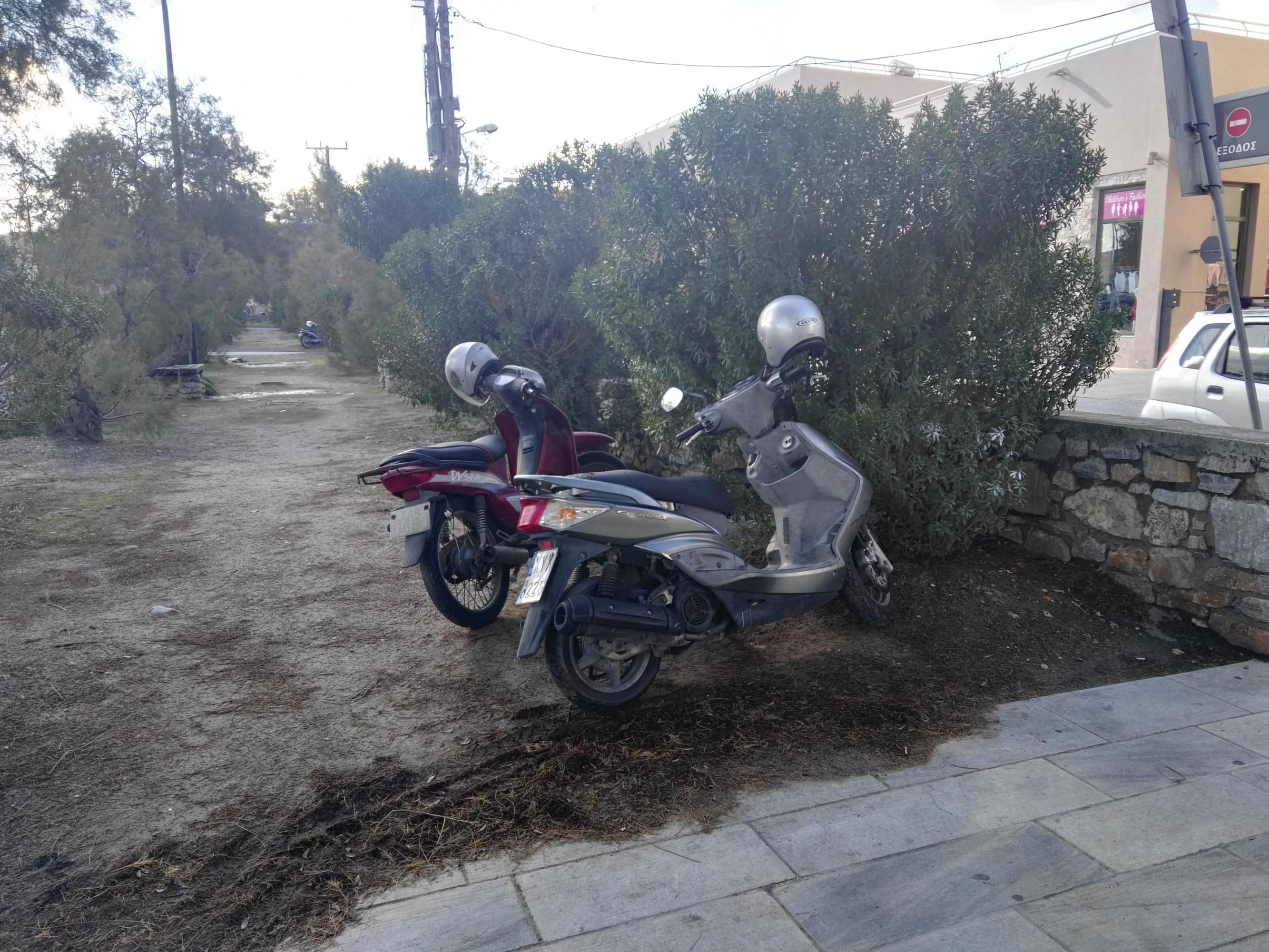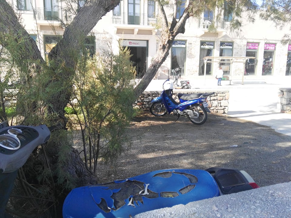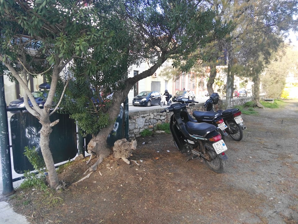 Εμφανώς παραμελημένο παραμένει το μικρό κηπάριο στη θέση Καρνάγιο, πλησίον του χώρου στάθμευσης του Λιμενικού Ταμείου Σύρου, το οποίο αφέθηκε να μετατραπεί σε parking μηχανών, κάτι που διαπιστώνεται σε καθημερινή βάση.