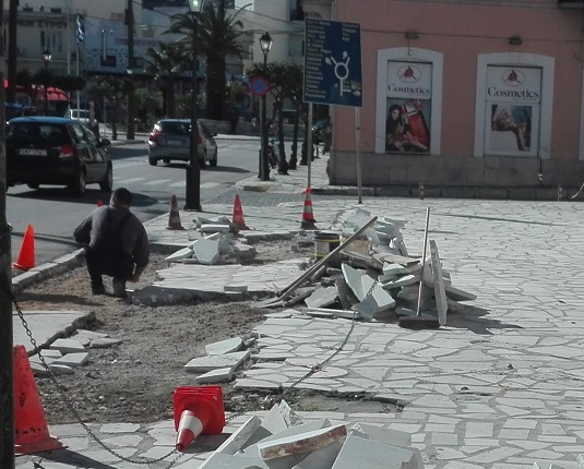 Εκ μέρους της ΔΕΥΑΣ αναπτύχθηκαν εργασίες επούλωσης του προβλήματος, ενώ χθες, υπήρξαν εκτεταμένες εργασίες αποκατάστασης των πλακόστρωτων επιφανειών του συγκεκριμένου σημείου.