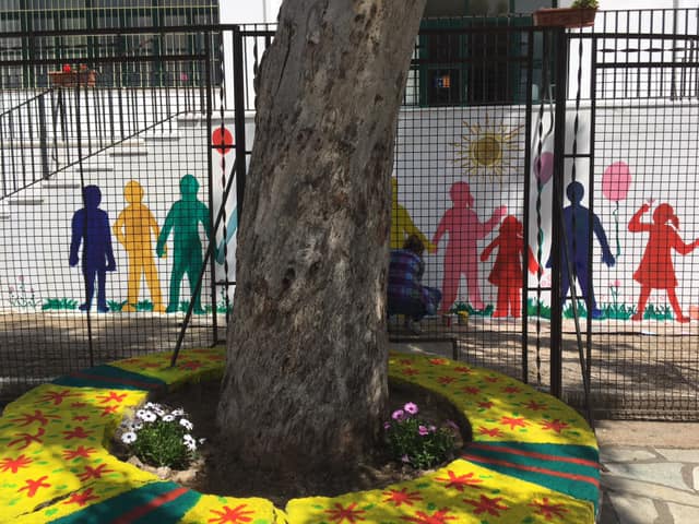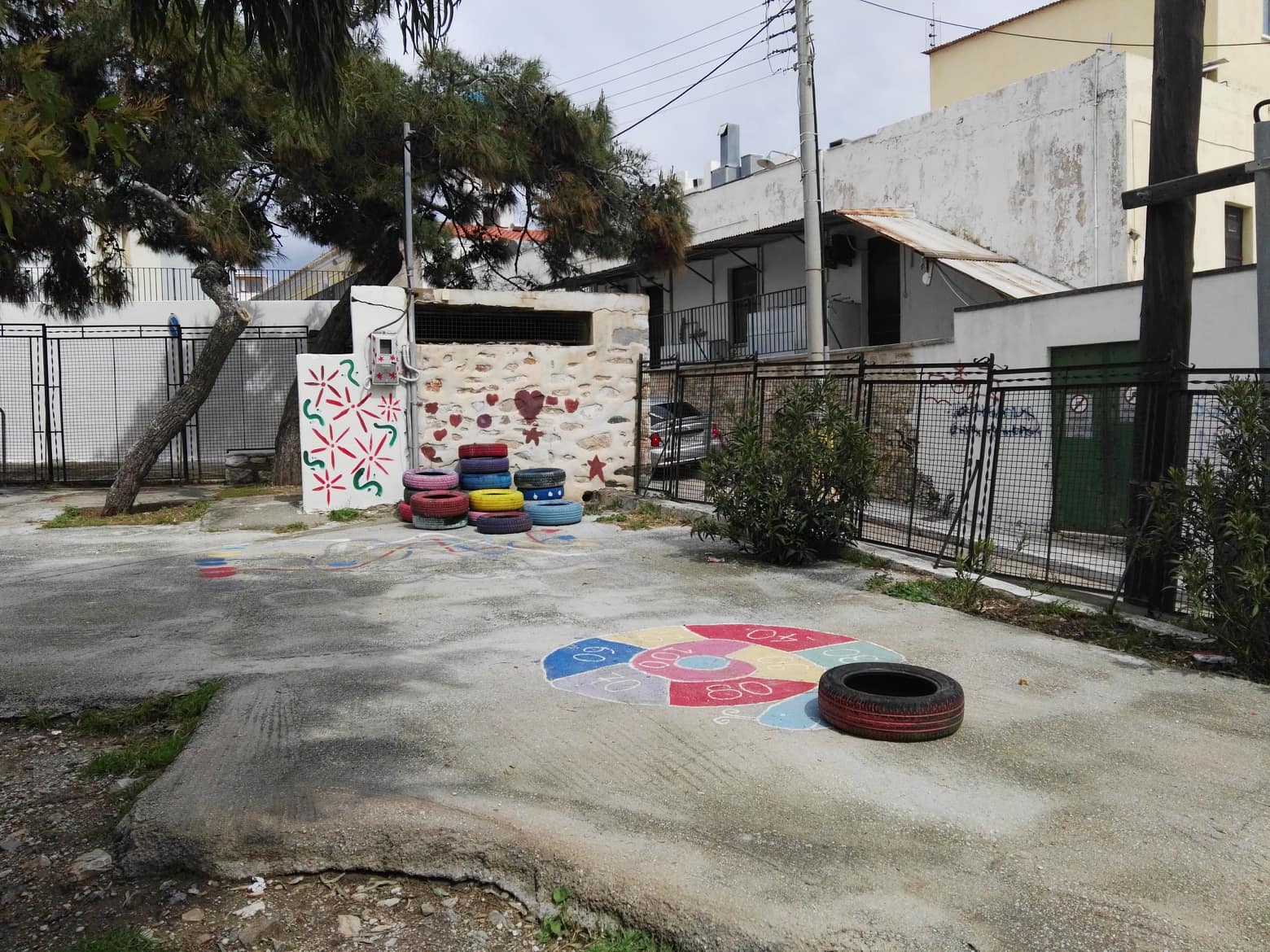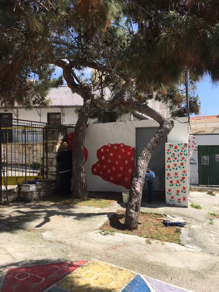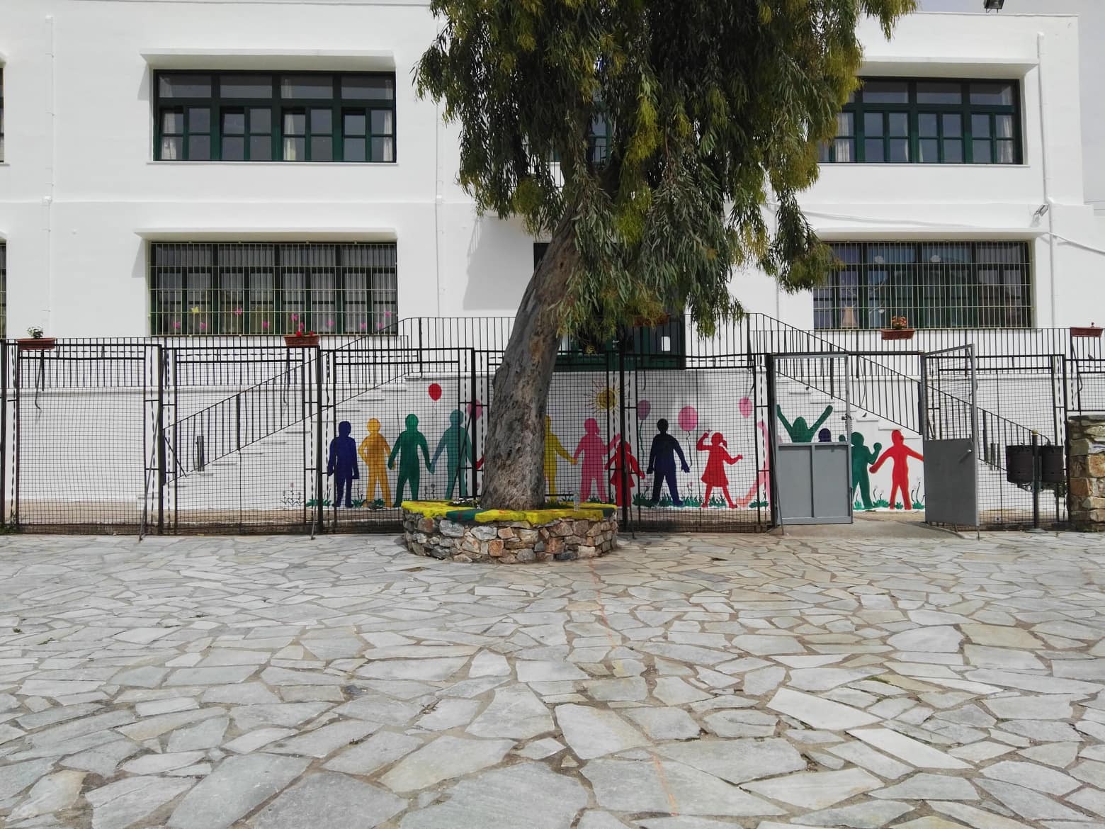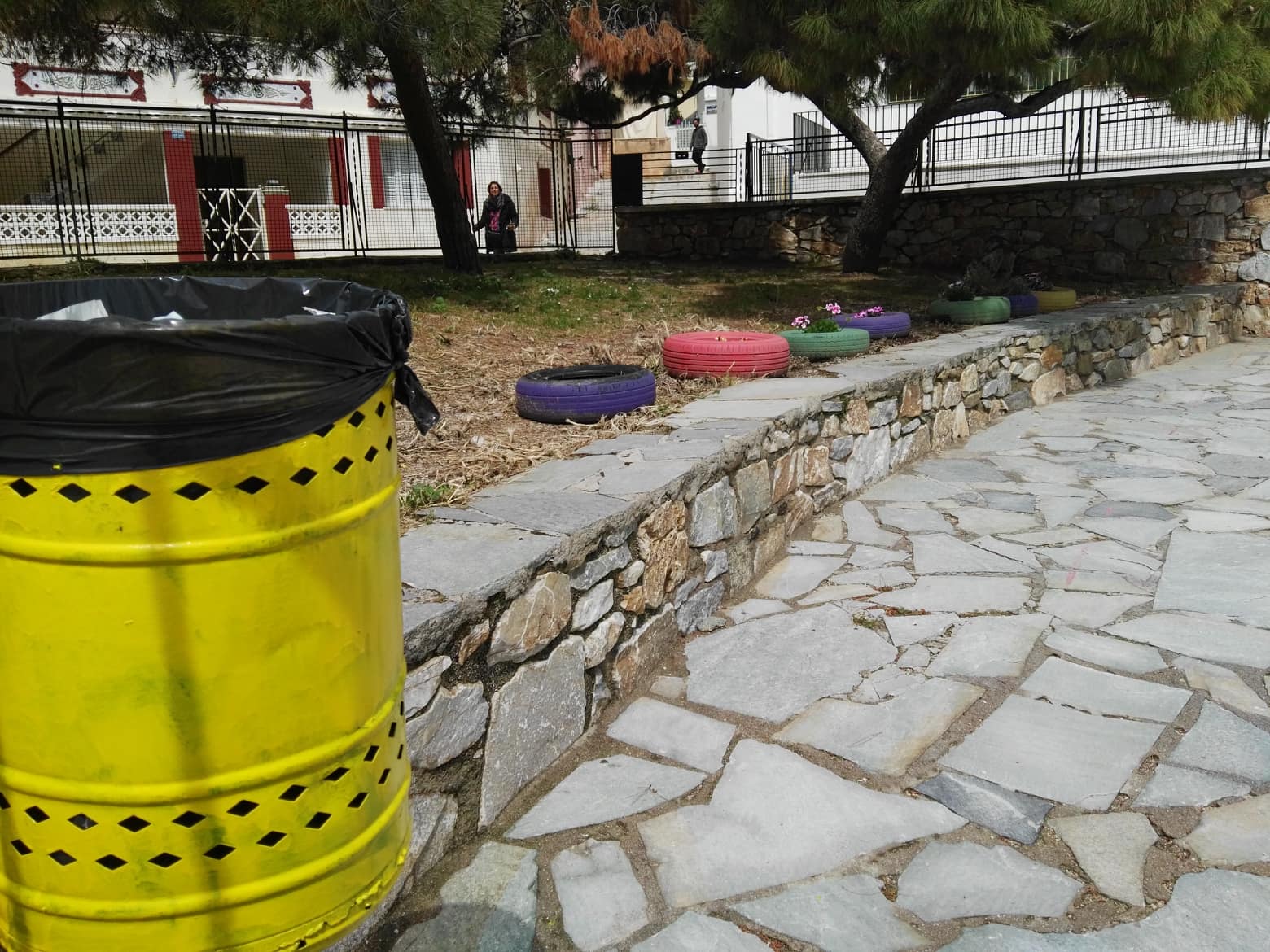 Εργασίες βαψίματος έγιναν και στους μικρούς κάδους της αυλής, όπως και στις εισόδους της περίφραξης, προκειμένου να διευκολύνονται όσοι εισέρχονται στο σχολείο.