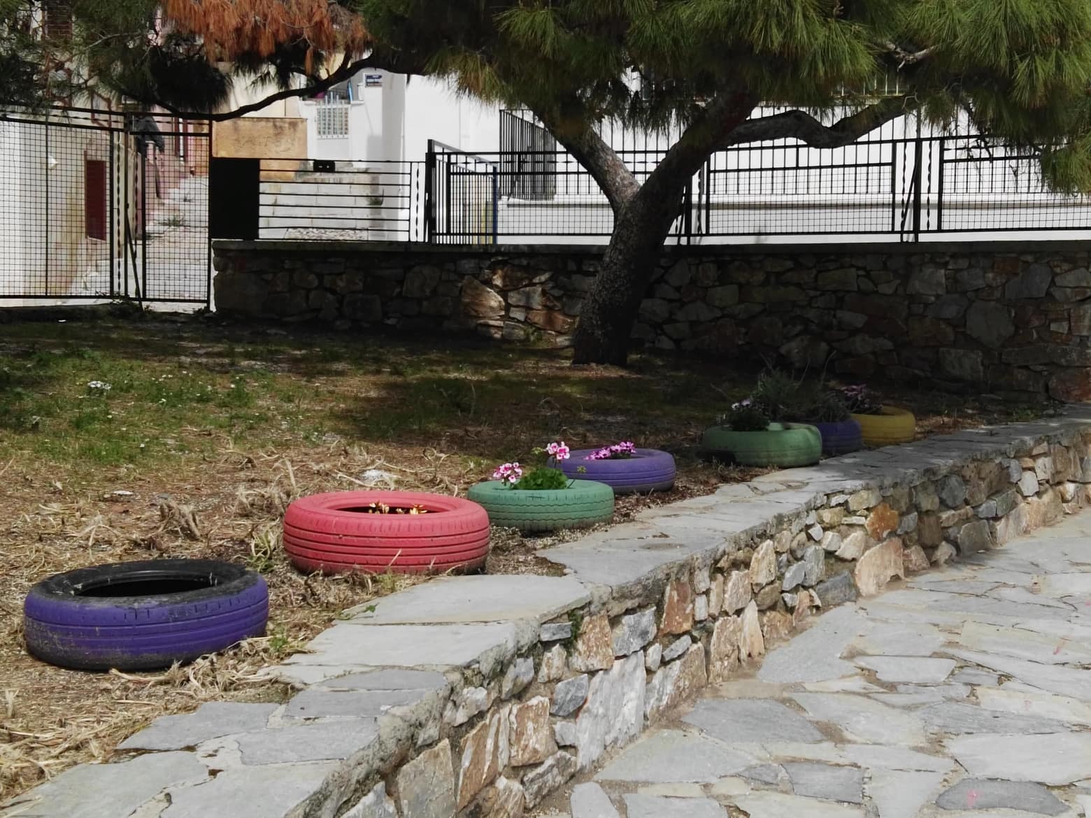 Ειδικότερα, την περασμένη Κυριακή τα μέλη του Συλλόγου μετέβησαν στο σχολείο και “σήκωσαν μανίκια” αναπτύσσοντας το σύνολο των παρεμβάσεων που είχαν προετοιμάσει για την αυλή του σχολείου. Συγκεκριμένα έδωσαν χρώμα σε επιφάνειες τοίχων, καθώς και σε πετρόκτιστα παρτέρια, προκειμένου να κοσμήσουν τις βάσεις των δέντρων, ενώ επίσης έβαψαν και τα μικρά ξύλινα παγκάκια, όπως όμως και τις ρόδες μέσα στις οποίες φυτεύτηκαν λουλούδια.