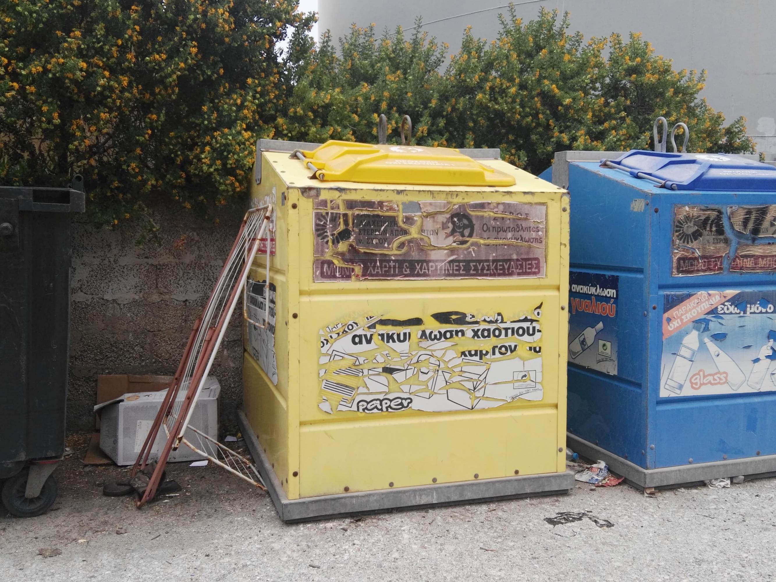 Τον “εφιάλτη” των γεμάτων με ανακυκλώσιμο υλικό κάδων οφείλει να αντιμετωπίσει εγκαίρως ο Δήμος Σύρου – Ερμούπολης και ειδικότερα ο ΦΟΔΣΑ, ενόψει του Πάσχα, οπότε και το νησί θα υποδεχθεί μεγάλο κύμα επισκεπτών.