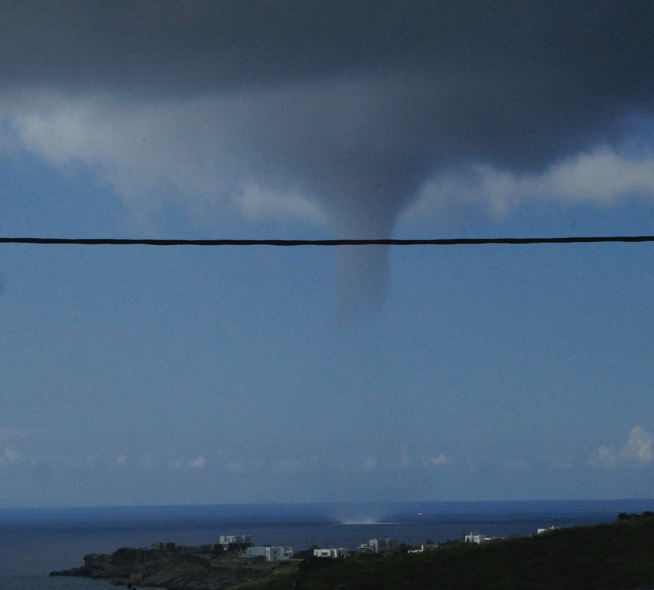 Την κίνηση του υδροστρόβιλου κατέγραψε επισκέπτρια της Σύρου από τον Μέγα Γιαλό, κατά τη χθεσινή ημέρα, οπότε και η κακοκαιρία υπήρξε έντονη στο νησί.