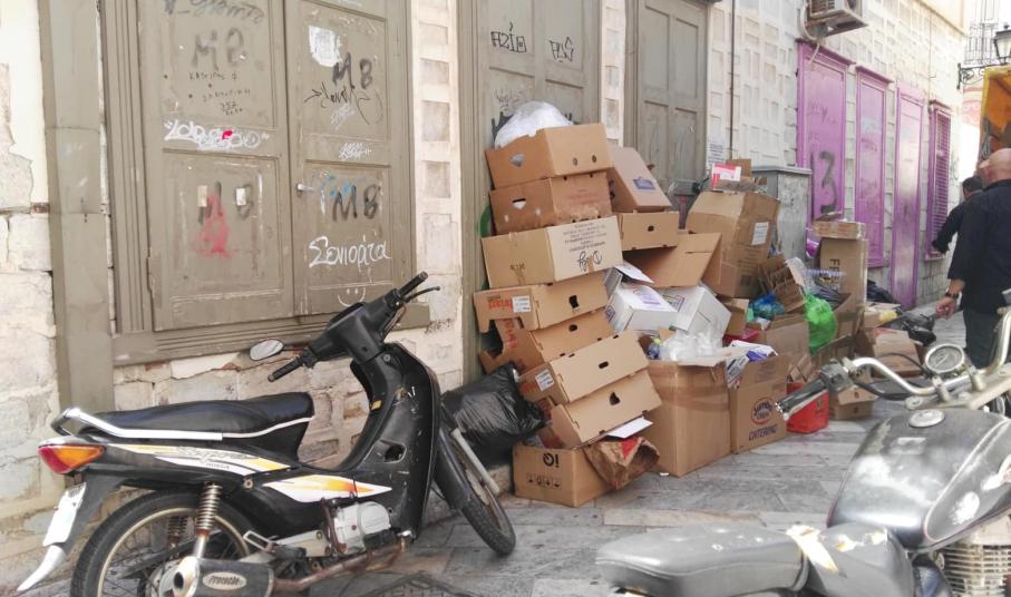Σε οδό απροσπέλαστη εξαιτίας του όγκου των απορριμμάτων και των άδειων κιβωτίων που είχαν αφεθεί από επιχειρηματίες της περιοχής, μετατράπηκε ο μικρός πεζόδρομος της “Ανάφης” το πρωί του Μ. Σαββάτου, με αποτέλεσμα στην “καρδιά” της πόλης που υποδέχθηκε μεγάλο αριθμό επισκεπτών την Πασχαλινή περίοδο, να έχει διαμορφωθεί ένας μικρός σκουπιδότοπος.