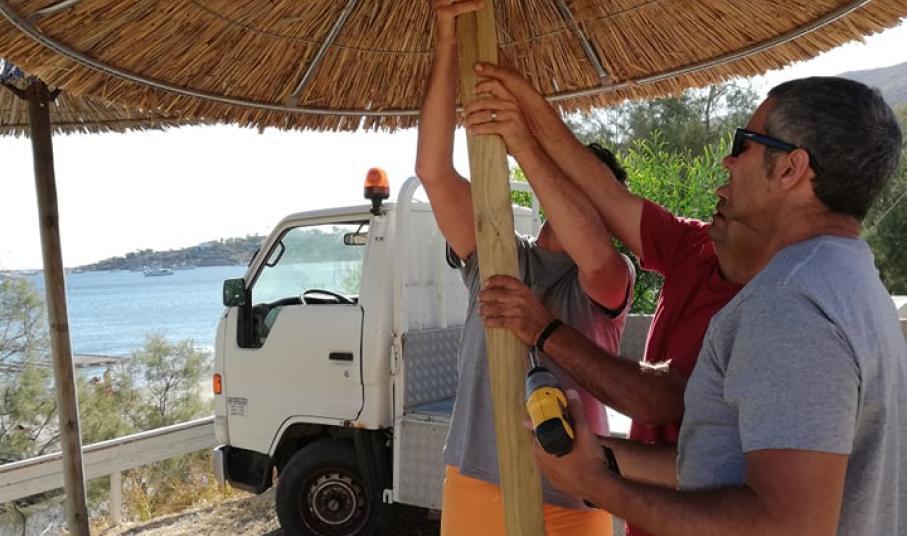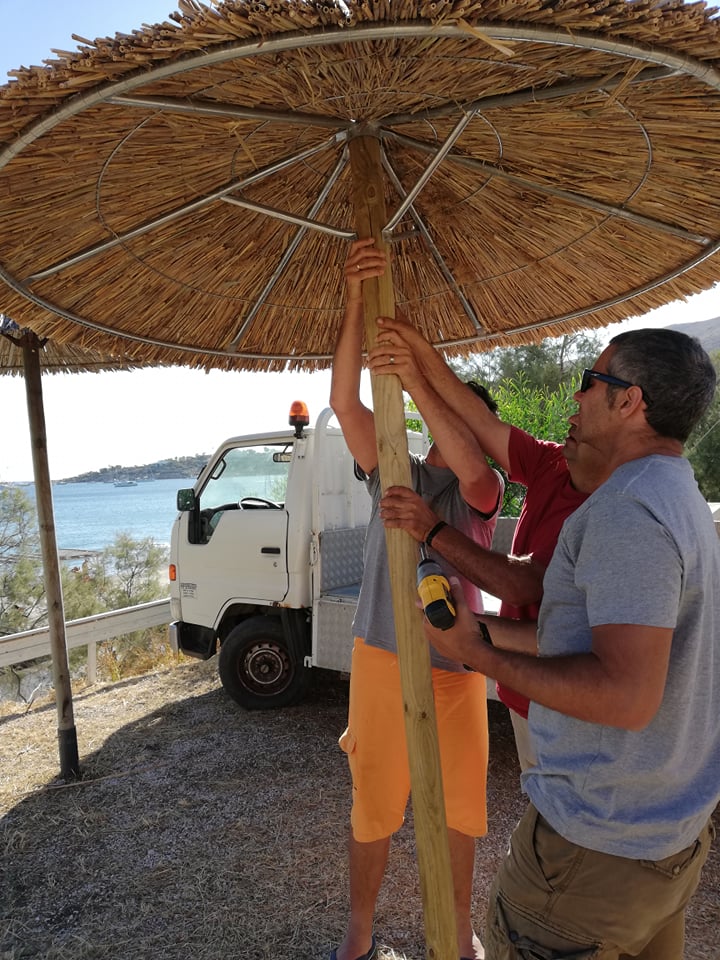 Τοποθέτηση ομπρελών στην πλατφόρμα της παραλίας του Φοίνικα