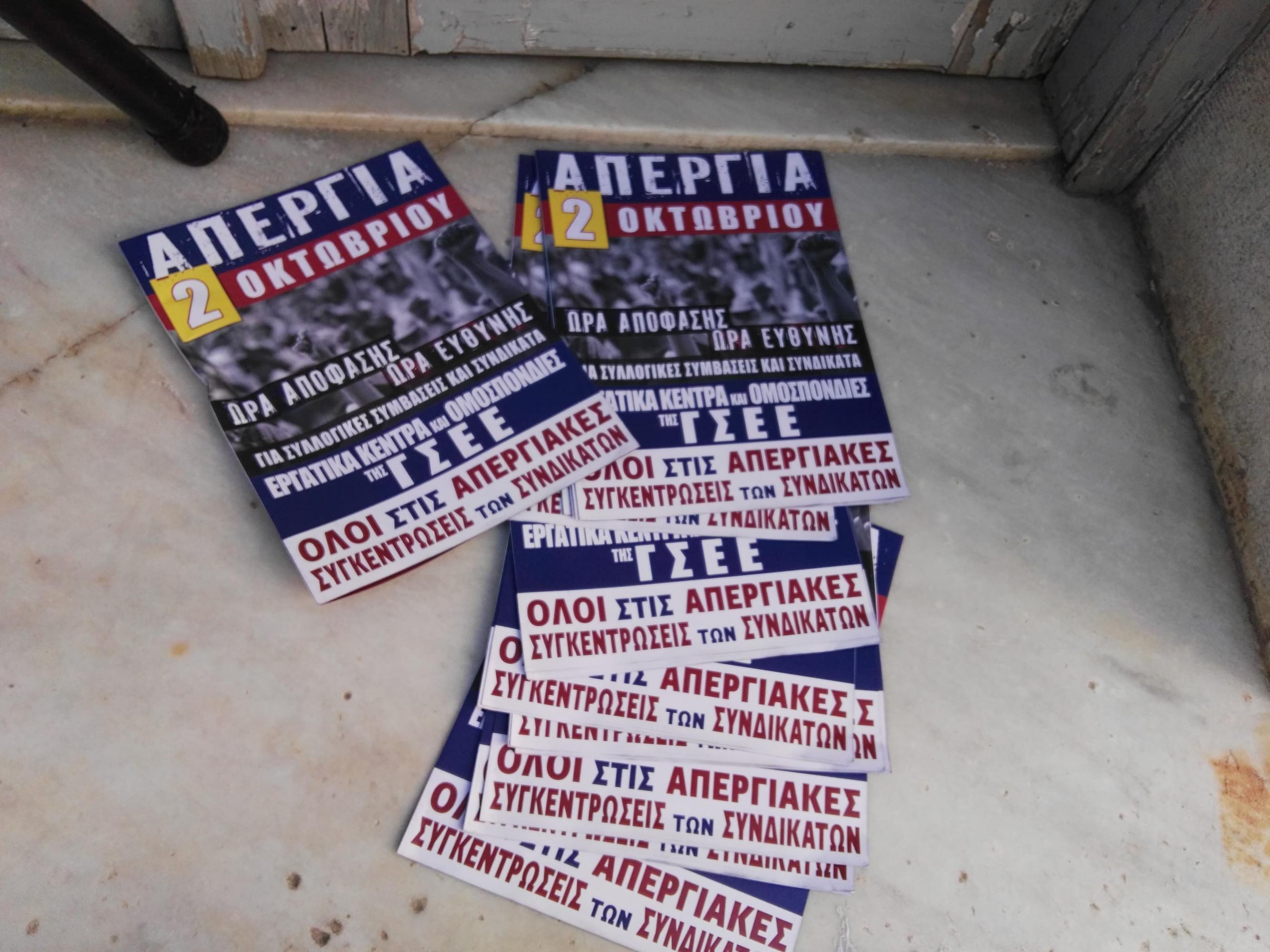Παρά το σοβαρό περιεχόμενο των ανακοινώσεών τους λίγα 24ωρα πριν την πανελλαδική απεργία της 2ας Οκτωβρίου, αναφορικά με το πολυνομοσχέδιο της κυβέρνησης, το οποίο μάλιστα χαρακτήρισαν “σκούπα” για τους μισθούς των εργαζομένων και τις συνδικαλιστικές ελευθερίες, οι ίδιοι δεν κατάφεραν να συγκεντρώσουν κόσμο στα σημεία συνάντησής τους.