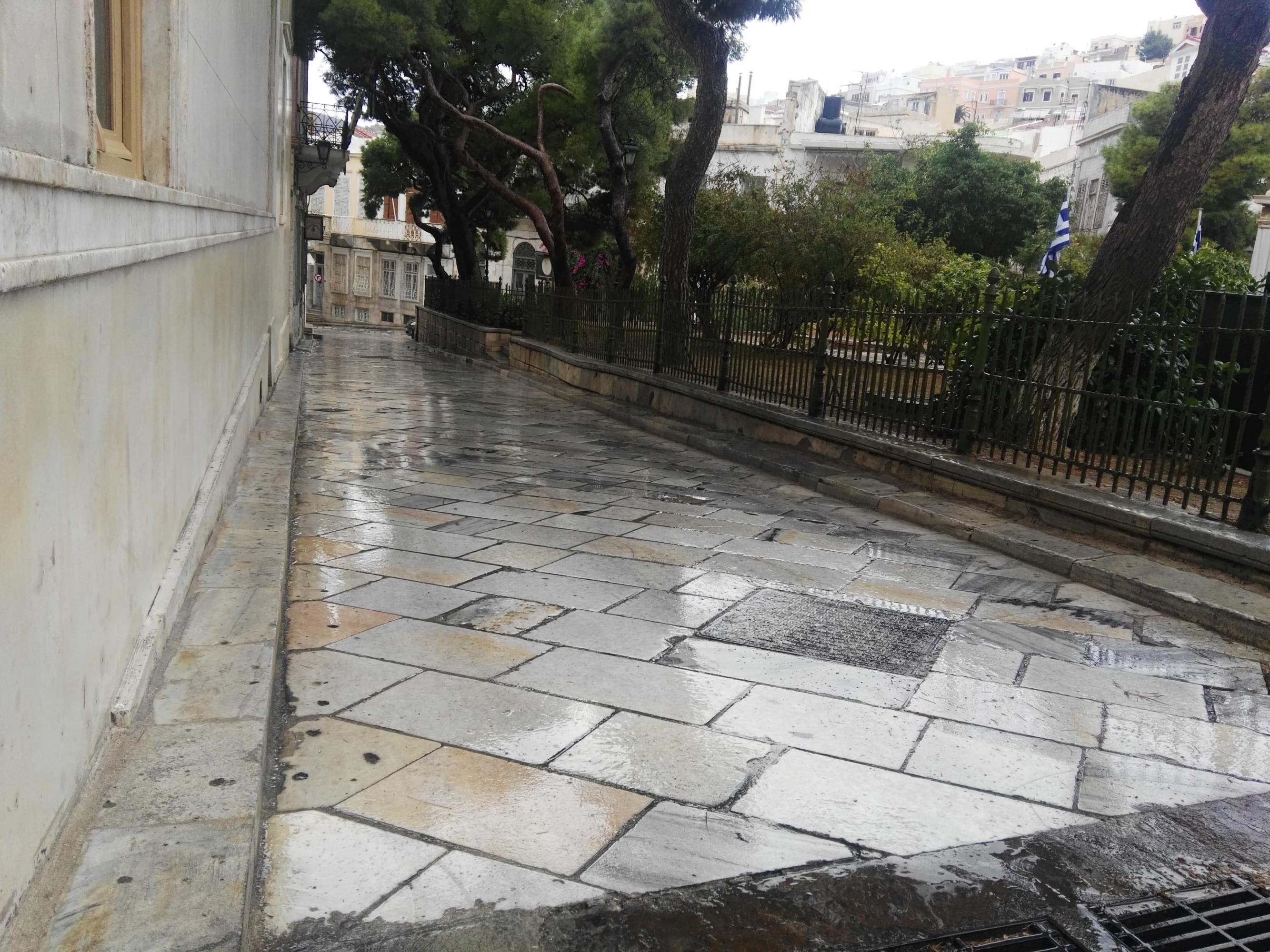 Με φόντο τα παραπάνω, το Συμβούλιο της Κοινότητας Ερμούπολης έχει προτείνει την ανάπτυξη εργασιών χτενίσματος των μαρμάρινων πλακών για την ασφάλεια πεζών και οδηγών, αίτημα που χρήσιμο είναι να ικανοποιηθεί άμεσα δεδομένων των καιρικών συνθηκών.