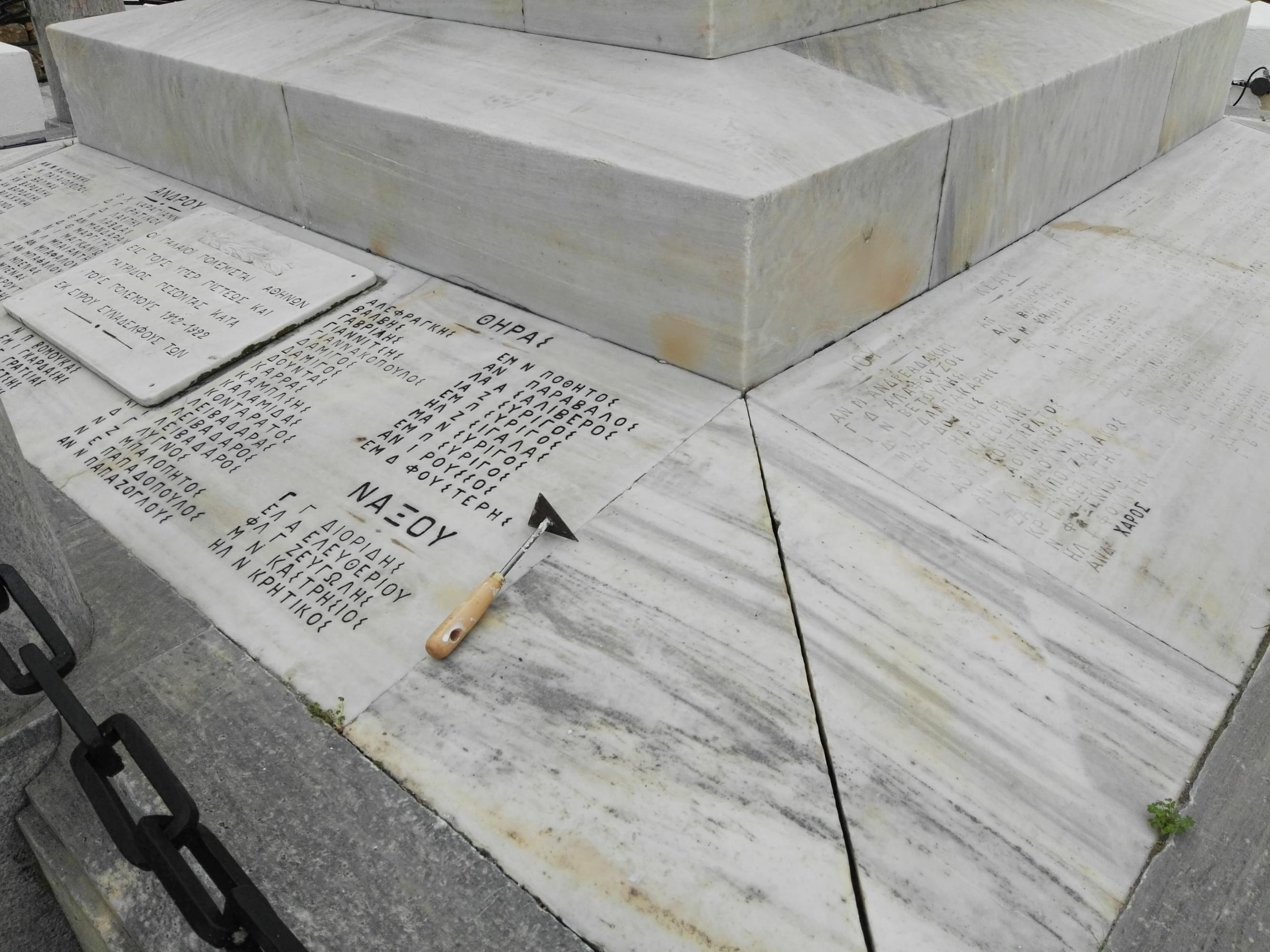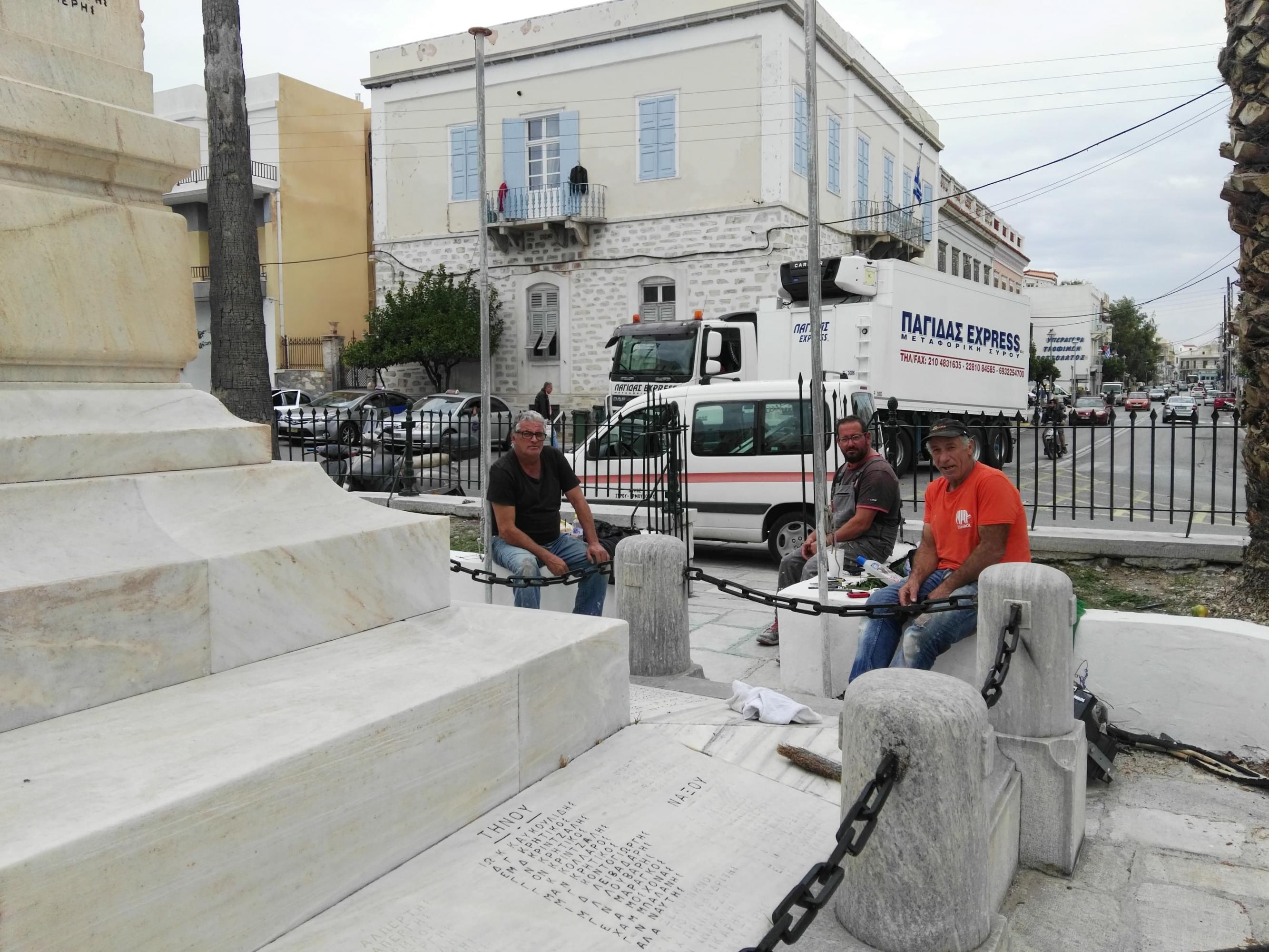 Στην αποκάλυψη... του συνόλου των ονομάτων και των επιγραφών επί των επιφανειών του μνημείου των πεσόντων στην πλατεία Ηρώων προχωρά ο Δήμος Σύρου – Ερμούπολης, αναδεικνύοντας πλήρως τον εν λόγω χώρο, ο οποίος κατά την τελευταία θητεία δεν είχε λάβει καμία φροντίδα.
