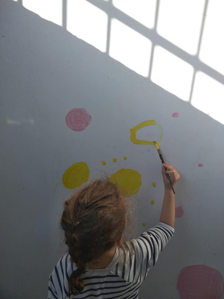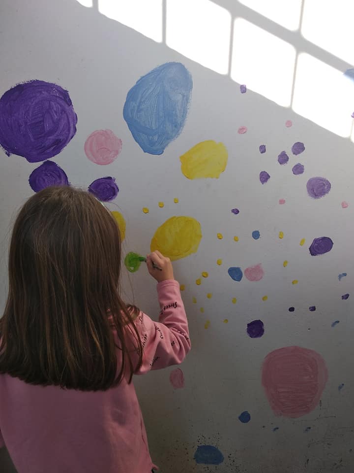 Υπό την καθοδήγηση της πάντοτε δραστήριας νηπιαγωγού, Άννας Μαρίας Χατζηνικολάου τα νηπιάκια ταξίδεψαν στον υπέροχο κόσμο της τέχνης, ζωγραφίζοντας τους τοίχους των εξωτερικών χώρων της αυλής τους, στο πλαίσιο του προγράμματος “Η ζωή με τέχνη και η τέχνη της ζωής”.