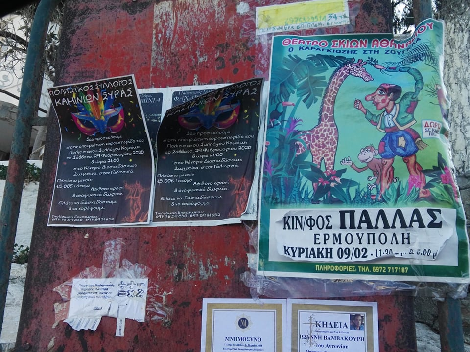 Ξεχασμένες... από τον κύκλο της γενικότερης φροντίδας των πινακίδων ανακοινώσεων στη Σύρο, παραμένουν ορισμένες εξ αυτών στις περιοχές του Ταξιάρχη, των Καμινίων και του Αγ. Γεωργίου, προκαλώντας σχολιασμό από κατοίκους, οι οποίοι και παρατήρησαν το συμμάζεμα των υπολοίπων, εντός Ερμούπολης.