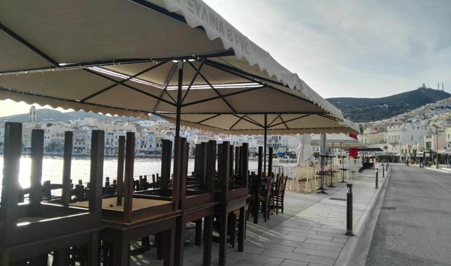 Με τα μέτρα της κυβέρνησης ενάντια στη διασπορά του κορωνοϊού έχει συμμορφωθεί πλήρως η κοινότητα των επιχειρηματιών εστίασης στη Σύρο, έχοντας βάλει λουκέτο στις επιχειρήσεις της από το πρωί της Κυριακής.