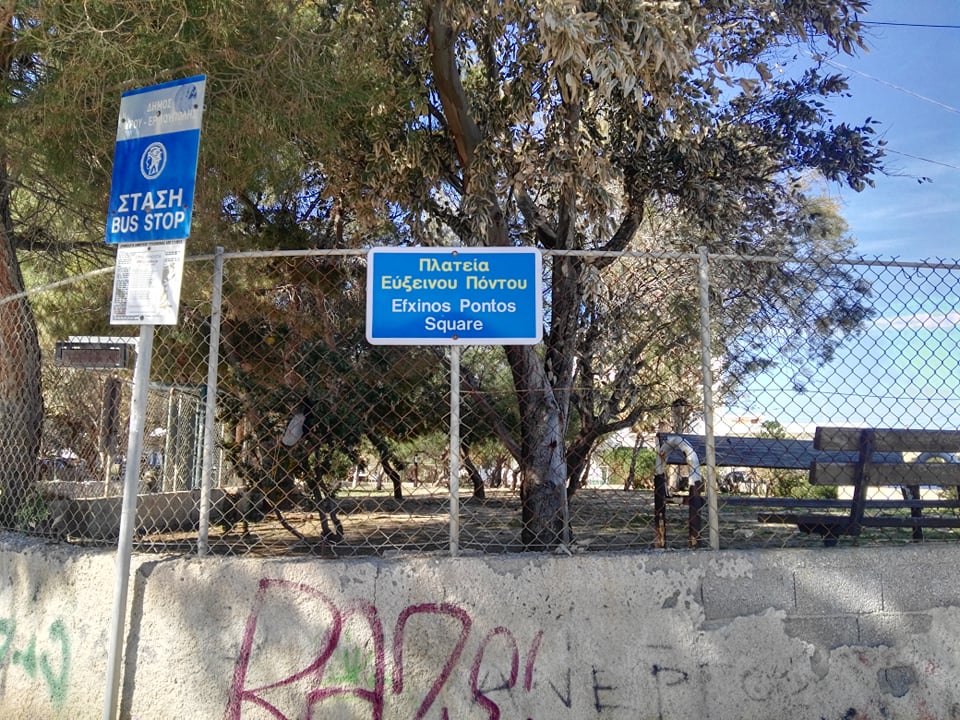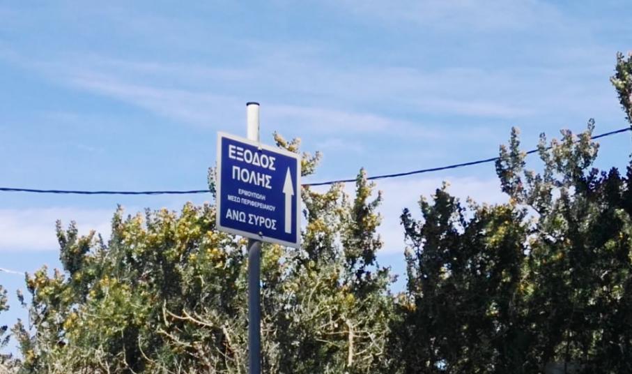 Η μία εξ αυτών πληροφορεί για τη δυνατότητα μετάβασης στην Άνω Σύρο και οι άλλες δύο για τη θέση της πλατείας “Εύξεινου Πόντου”.