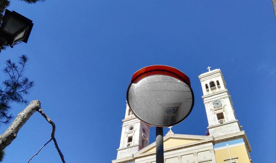 Ειδικότερα, απαιτείται αντικατάσταση των δύο καθρεπτών στο κηπάριο μπροστά από τον Ι.Ν. Αγίου Νικολάου προκειμένου οι οδηγοί που εξέρχονται από τις δύο μικρές οδούς, οι οποίες συναντώνται με τον δρόμο ανόδου, να μην κινδυνεύουν να συγκρουστούν με άλλα οχήματα και δίκυκλα. Όπως διαπιστώνεται στο φωτογραφικό υλικό οι συγκεκριμένοι καθρέπτες φέρουν μεγάλες φθορές, με αποτέλεσμα να είναι δυσδιάκριτη η “εμφάνιση” των διερχόμενων οδηγών.