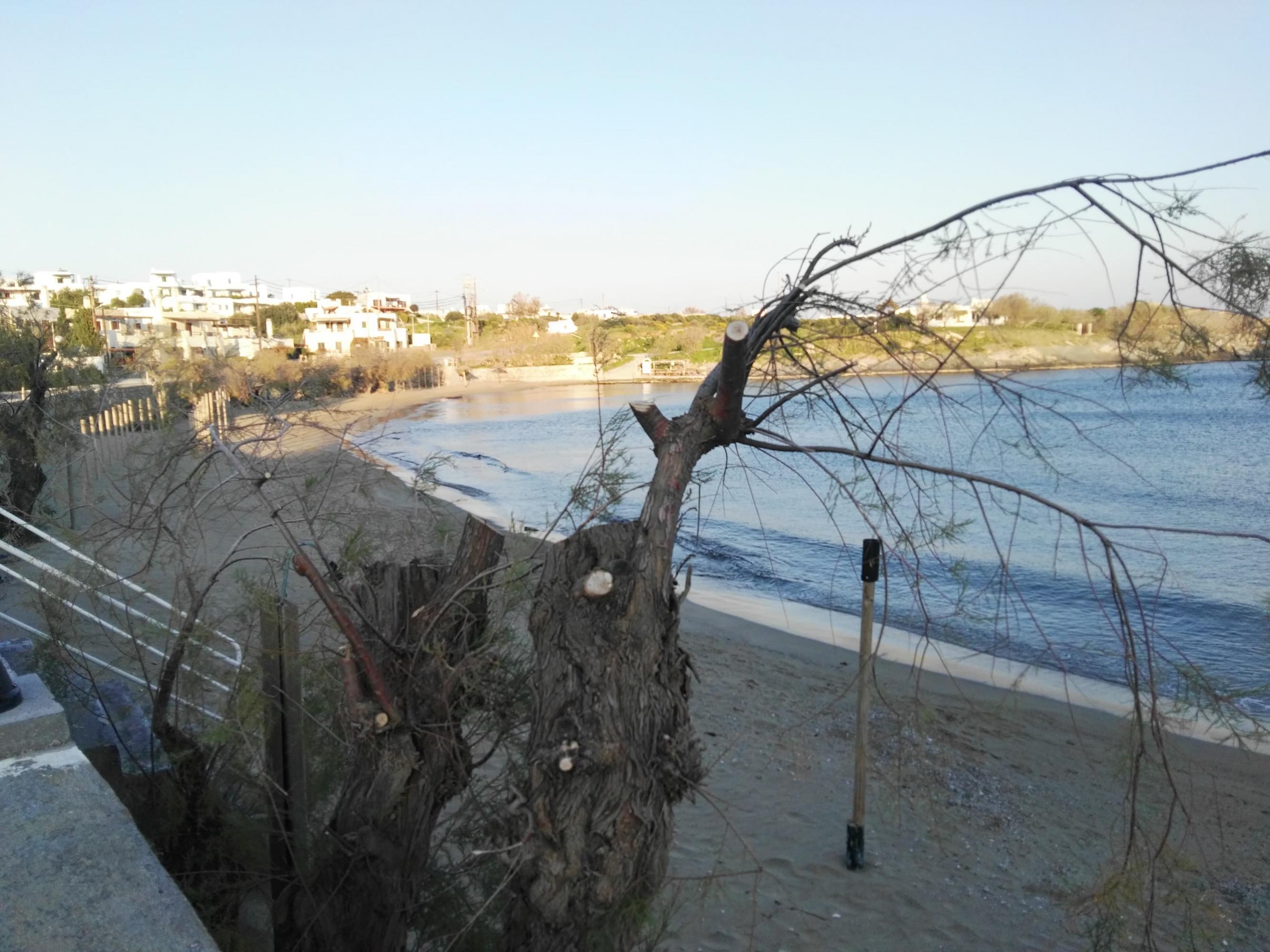 Γυμνό... τοπίο θυμίζει η παραλία του Μέγα Γιαλού στη Σύρο, μετά από το κλάδεμα των αρμυρικιών, εργασίες, που έγιναν προ ημερών στην περιοχή, ενόψει της άφιξης της καλοκαιρινής περιόδου σε λίγους μήνες από σήμερα.